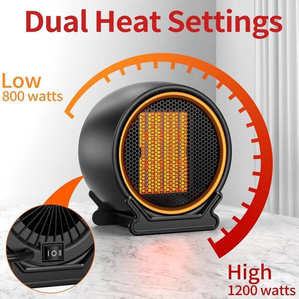 Electric Space Heater Low Energy 1200W Ceramic Fast Heating Fan Heater Portable