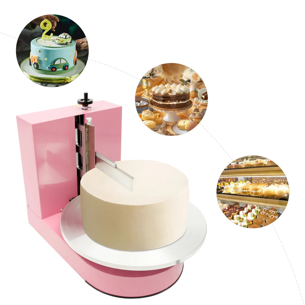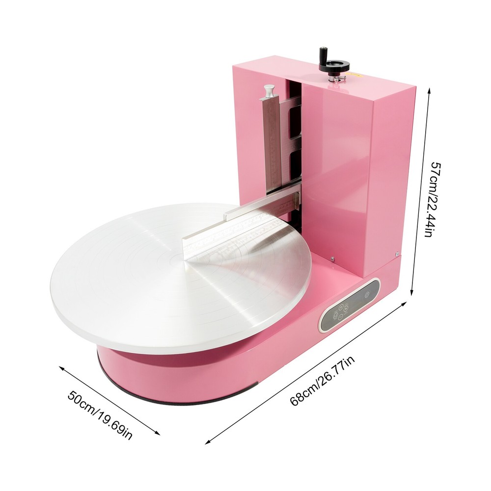 Package Included 1* Cake Decorating and Coating Machine Electric Speed Cake Decorating Machine 4-16 Inch Screen Bakery Coating Machine Electric Speed Cake Decorating Machine 4-16 Inch Screen Bakery Coating Machine Key Features Sturdy and Durable: The item is made of aluminum alloy and stainless steel with a plastic spraying treatment, making it resistant to deformation, oxidation, corrosion, rust, and high temperature. So it can remain practical and beautiful without frequent replacement. Powerful Function: It has a powerful 200W power and 0-320 adjustable speed, so it can help you coat the cream efficiently, saving you time and making it easy to use! Thoughtful Design: The touchable LCD operator panel features forward and reverse rotation control, one-touch stop, and speed control for your convenience. In addition, you can also adjust the height of the spatula (7.87 inches) to fit the spreading height of your cake. Economical and Practical: Compared with the traditional hand spatula, our product can apply standard cake buttercream shapes more efficiently and time-savingly, freeing your hands and making the cake embryo more three-dimensional and beautiful. High Safety: It has a leakage protection function and a plug with a leakage protection design, which can effectively improve the safety of use. Easy to Clean: Thanks to its smooth surface and simplicity, you can use a damp rag to wipe the cream from the spatula or the tray. Details Clear English Markings: Its operation panel is labeled in English for your convenience. Laser Scale : It is wear-resistant and durable while also facilitating your clear observation. Applications It is suitable for 4-16 inches cakes, it can be used for parties, weddings, cake stores, homes, cake training bases, etc. How to Use 1. First, put the cake template in the right position (the center of the turntable). 2 ) Adjust the distance between the horizontal and vertical knives (adjust the distance between the thickness of the buttercream). 3. Adjust the speed of the machine (60 rpm) and spread the buttercream evenly (from bottom to top on the sides, and from inside to outside on the top). 4 ) Adjust the cross cutter by shaking the top wheel to press down slightly (about half a turn of the wheel), subject to the emergence of a diamond angle. 5. Remove the horizontal and vertical knives to finish coating. Specifications Material: Aluminum Alloy + Stainless Steel Process: Plastic Spraying Color: Pink Power Source: Electric Corded Mounting Type: Freestanding Plug: US Standard Screen Type: LCD Voltage: 90-220V Applicable Cake Size: 10.16-40.64cm/4-16 inches Power: 200W Speed: 0-320rpm Noise: <60db Adjustable Height of Spatula: 20cm/7.87in Product Size: 50*68*57cm/19.69*26.77*22.44 in Package Included 1* Cake Decorating and Coating Machine Notes Please be careful not to touch the turntable during operation. Please start slowly and gradually increase the speed for best results. Please note that this product does not contain cake or buttercream. Please allow the slight color difference caused by the shooting light and 1-3 cm error due to manual measurement, and make sure you do not mind before ordering. Payment Delivery details Terms of sales About us Contact us Payment We accept ebay payment 。 Fees such as import duties, taxes are not included in the item price or shipping costs. These charges are the buyer's responsibility. Delivery details Shipping: 2-9 working days to: USA Terms of sales We maintain high standards of excellence and strive for hundred percent customer satisfaction. Feedback is very important to us. We hope that you contact us immediately before you give neutral or negative feedback, so that we can address your concerns. It is impossible to address issues if we do not know about them! About us Your satis faction is our ultimate goal. We work hard to earn your trust and future business. Our certified technicians have tested each item before shipping. The unit comes with 1 year limited warranty on all manufacturing defects. a) If you receive a defective item, you may return it or ask for a discount. Please contact us within 14 days after you receive the package. b) What you returned must be intact and in its original packaging as re? u. Customer is responsible for shipping costs of the returned item. c) We will cover the cost of shipping back t with the shipping rate indicated in the registration page. We will send you a new unit or refund the full payment you paid. Thank you. Contact us Business Hour Business Hour: Monday To Friday: 8:30 AM to 5:00 PM (Beijing China time) Due to time zones, our reply to your questions may not be immediately. But within above working time, we will reply your email within 24 hours. If it's non-workdays, please kindly be patient and wait till Monday. Please contact us with ebay message. Please feel free to contact us if you have any questions. Monday To Friday: 8:30 AM to 5:00 PM (Beijing China time) Due to time zones, our reply to your questions may not be immediately. But within above working time, we will reply your email within 24 hours. If it's non-workdays, please kindly be patient and wait till Monday. Please contact us with ebay message. Please feel free to contact us if you have any questions. Brand cncest Power Source Electric Corded Screen Type LCD Material Aluminum Alloy + Stainless Steel Process Plastic Spraying Color Pink Mounting Type Freestanding Plug US Standard