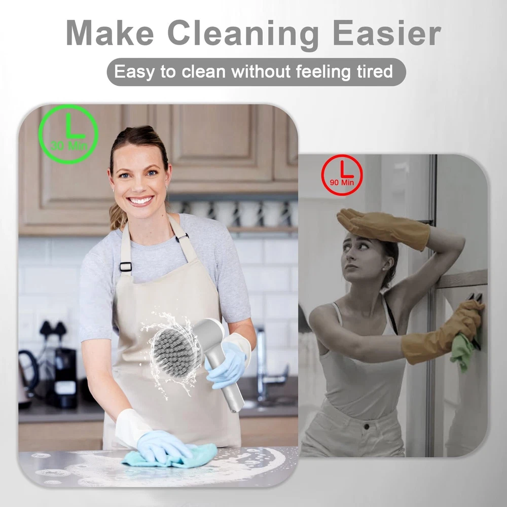 Electric Spin Scrubber, 2024 New Cordless Shower Cleaning Brush with 5 Brush Heads, 2 Speeds and Led Display, Power Scrubber for Cleaning Bathroom, Bathtub, Kitchen, Tile, Window, Tub, Floor, Sink Product Details Color: White-gray Brand: GRUTTI MPN: GR-5 UPC: Does not apply EAN: Does not apply Brand: GRUTTI Color: White-gray Handle Material: Plastic Specific Uses For Product: Bathroom, Bathtub, Shower, Kitchen Product Dimensions: 4.72"L x 2.36"W x 3.15"H Brand: GRUTTI Color: White-gray Handle Material: Plastic Specific Uses For Product: Bathroom, Bathtub, Shower, Kitchen Product Dimensions: 4.72"L x 2.36"W x 3.15"H Material: [Partial] Plastic Special Feature: Waterproof Shape: Round, L Shape Included Components: Attachment Surface Recommendation: Floor, Tile, Windows Number of Items: 1 Theme: Home Appliances Item Firmness Description: Hard Manufacturer: GRUTTI Unit Count: 1.0 Count Item Weight: 1.89 pounds Country of Origin: China Item model number: GR-5 Batteries: 1 Lithium Ion batteries required. (included) Date First Available: December 15, 2023 5-in-1 Electric Spin Scrubber-Cordless cleaning brush comes with 5 brush heads. (1)Flat brush, suitable for hard floors, tiles, walls, doors, bathtubs; (2)Long angle brush, suitable for seams, edges, corners, sinks, faucets. (3)The scouring pad is suitable for stoves, induction cookers, kitchenware, glass, etc.(4) Sponge brush is suitable for kitchen, grease, oven, windows, glass;(5) Cloth brush is suitable for drying water stains. After using the brush head, wipe the water stains with a rag. 2 Modes & Efficient Thorough Cleaning-The electric cleaning brush is equipped with a powerful motor with 2 adjustable speeds. (1): Suitable for mild cleaning, low speed: 330-350 rpm/min; (2): Suitable for heavy cleaning, high speed: 350-370 rpm/min. It is powerful enough to easily remove all kinds of stubborn stains and dirt to meet your cleaning needs, much faster than the average speed of other similar products. 2000mAh Battery & Long Lifespan- Our electric cleaning brush comes with a built-in 2000mAh battery. It only takes 2.5 hours of charging time for up to 90-120 minutes of whole house cleaning, and it can clean thoroughly with just one charge. The wireless design allows it to be used anywhere at home. Compared with traditional cleaning, it is time-saving and efficient. LED screen power display- The LED power display makes the battery power clear at a glance. You can directly see the remaining power, which can help you easily check the battery status and charge in time. The electric rotary floor scrubber adopts a Type-C charging port design, which can be charged quickly. The LED screen can easily check the remaining power and current working mode, allowing you to use it with confidence. NOTE: Only Type-C power cord included, no adapter. IPX7 Waterproof- Our cordless electric cleaning brush is IPX7 waterproof, which means you can use it in water without worrying about damage caused by water splashing into the machine while cleaning, it can withstand strong water jets and withstand high water pressure . Perfect for solving a variety of household cleaning tasks. The non-slip handle is ergonomically designed for safe use in all types of wet and flowing water. (Please cover the charging port when washing).