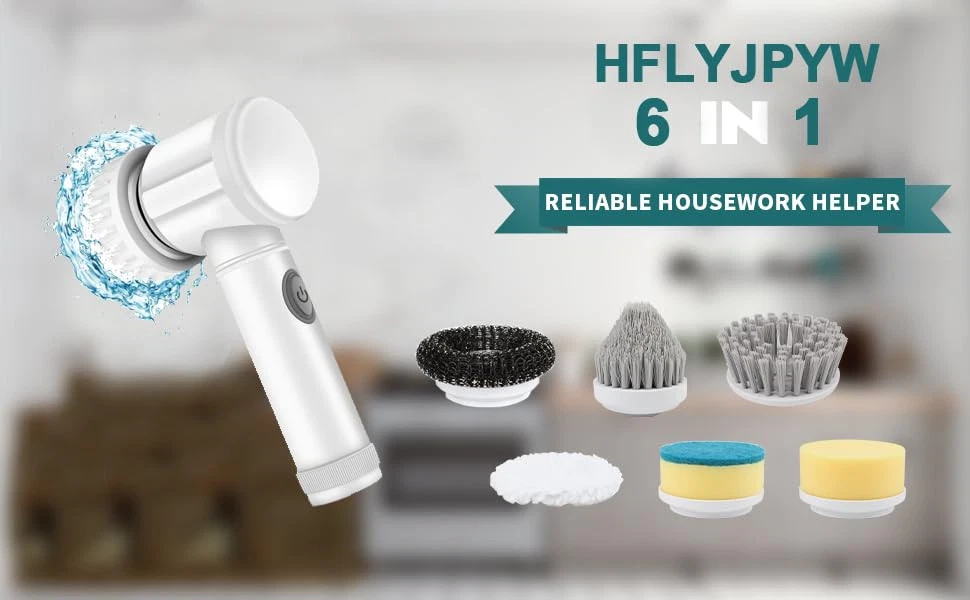 【6in1 Portable Electric Cleaning Brush】This electric spin scrubber is made of high-quality ABS material,,The Portable new cordless handheld electric brush is ergonomically designed, portable, lightweight, comfortable to hold and easy to clean. Get rid of the troubles caused by the entanglement of the traditional power cord, you can clean it anytime and anywhere without dragging the power cord. Save your time and clean easily and effectively. Textured silicone grip provides a firm grip even with wet hands. 【 6 Kinds of Replaceable Brush Heads】 The electric spin scrubber includes 6 high-quality interchangeable brush heads to meet different cleaning needs in various areas. From bathroom bathtubs, kitchens, and grills to stove tops, heavily oiled walls, slots, sinks, floors, grout, toilets, car wheels, tumblers, windows, and dishes, these brush heads are versatile. The storage bracket helps save space and allows easy access to the cleaning brush.Note: Do not immerse the entire electric spin scrubber head in water. Remove the brush head and clean the electric spin scrubber separately. 【Rechargeable & Powerful】 This electric cleaning spin scrubber is equipped with a 2200mAh rechargeable battery and built-in leakage protection technology. It ensures safe charging and provides continuous and powerful operation for up to 40-60 minutes after fully charged for 3-5 hours. With a speed of 350r/min, this electric cleaning brush saves your tired body and effectively tackles stubborn stains. 【Waterproof and Safe cleaning】 With your safety in mind, shower spin scrubber is highly sealed, splash proof and can be used in wet conditions. IPX7 waterproof function ensures safe daily use and longer service life. The handheld power shower scrubber is highly sealed to prevent water damage. 【Quality Assurance & Tips】 If you have any questions about this electric spin scrubber, please contact us and we will respond to you within 24 hours. Tips: 1. Please charge this electric cleaning brush fully before the first use; 2. When cleaning the cordless power scrubber itself, please wipe it with a damp cloth.Additionally, this cleaning tool serves as an excellent gift for your family and friends.