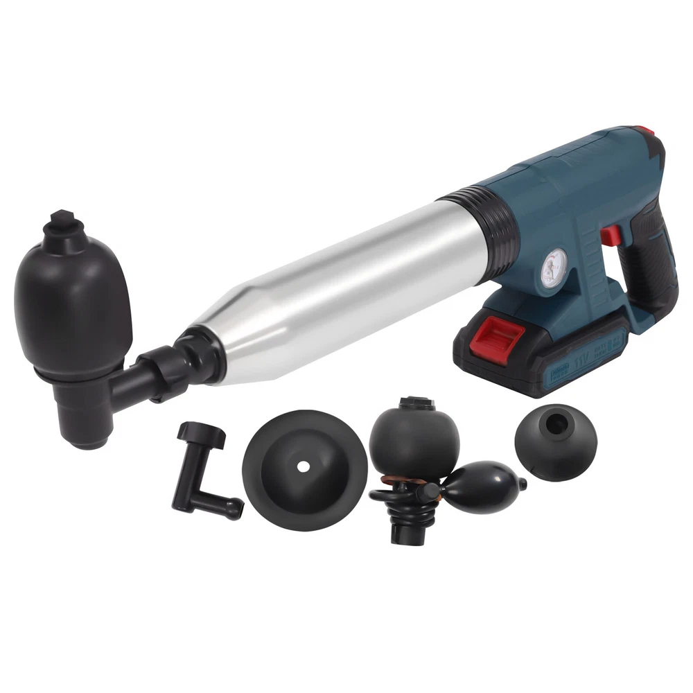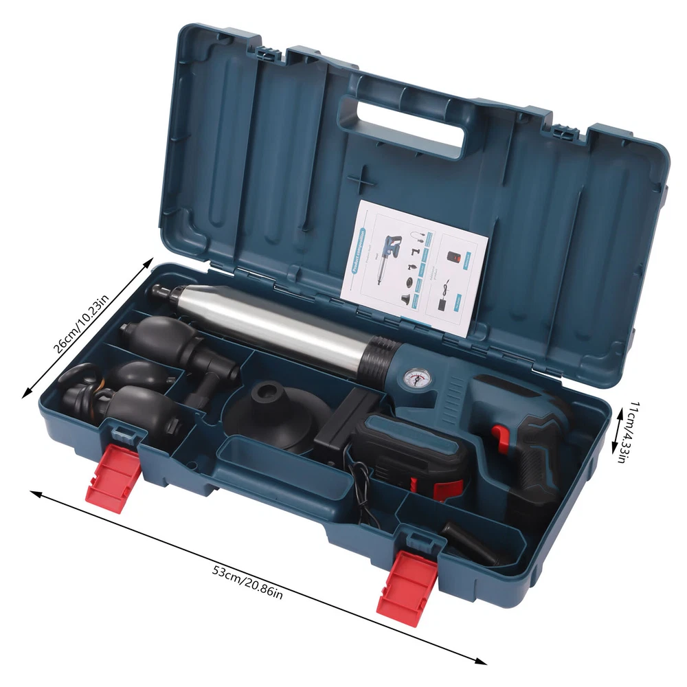 Specification Main Material: ABS, Stainless Steel Color: Blue Model: LD-001 Start Mode: Electric Plug Type: US Voltage: 110v, 60Hz Power Source: 2000mAh Lithium Batteries (Included) Package Size: 53*26.5*11cm/20.87*10.43*4.33in Product Size: 15*68 cm/5.91*26.77 in Toolbox Size: 53*26*11cm/20.86*10.23*4.33in Gross Weight: 3.2kg/7.05lbs Net Weight: 3.1kg/6.83lbs Electric Toilet Plunger Air Drain Blaster High Pressure Sink Dredge Clog Remover Descriptuion Electric Toilet Plunger Air Drain Blaster High Pressure Sink Dredge Clog Remover Description You must also have a meltdown because of clogged pipes at home! This toilet plunger allows you to easily get rid of this embarrassing situation and no longer have to pay a huge amount of money to the repairman. You only need a short time to raise the pressure to 0.4MPA, then pull the trigger and release the high-pressure air. It's that easy! Key Features Efficient Cleaning Power : The toilet plunger uses the power of high-pressure compressed air to blast clogs quickly and easily, with a plunger tip that ensures a seal for tremendous pressure. It is faster and more effective than traditional plungers. Easy to Operate : It's also great for beginners and master plumbers, allowing them to use it with less effort. It takes less time to raise the pressure to 0.4 MPA, then you pull the trigger to release the high-pressure air. It's that simple! User-friendly Design : The reinforced handle, the threaded and the non-slip design make the toilet plunger easy to pump. The non-slip h andle incorporates an ergonomic design for a comfortable grip. Quality Material : It is made of an ABS plastic handle and natural rubber sealing head, reusable without asking for help from a plumber and easy to clean. The stainless steel wall of the barrel is anti-cracking, furth er extending its service life. Ultra-long Life Span : It uses the 2000mah lithium battery, which can be used more than 30 times when fully charged. Therefore, it is especially suitable for repairers to use without worrying about the trouble of frequent charging. Fully Equipped : It has 4 replaceable plunger heads for unclogging all kinds of pipes, toilets, floor drains, bathrooms, sinks, washbasins, vegetable sinks, drains, etc. Therefore, it can meet almost most of your unclogging needs. Easy to Store : The ring trigger on the plunger can also be used as a hanging buckle, which can be hung on the wall after use to prevent the plunger from lying on wet surfaces. Anti-splash : It has a built-in expansion plug and is sealed, which allows it to expand before unclogging, seal the pipe opening and prevent wastewater backflow and splash. Energy-saving and Environmental Protection : It makes you no longer need to use harmful chemicals, so it frees you from the danger of corroding pipes or endangering your family from now on. Details Air Pressure Gauge : The air pressure gauge is designed upward to make it easier for you to see while using it. It allows accurate control of pneumatic activity and operating forces to avoid spillage and damage. Removable Battery Pack : The battery pack at the bottom can be removed for charging, which is very convenient. Toolbox : It is equipped with a specially customized toolbox that can store all the tools inside very well, so it is very convenient for you to carry. Application It is suitable for all occasions, such as toilets, squats, kitchens, swimming pools, and wash basins. It can deal with various blockages caused by various garbage such as hair, cloth, tea leaves, leaves, grease, and oil. Specification Main Material: ABS, Stainless Steel Color: Blue Model: LD-001 Start Mode: Electric Plug Type: US Voltage: 110v, 60Hz Power Source: 2000mAh Lithium Batteries (Included) Package Size: 53*26.5*11cm/20.87*10.43*4.33in Product Size: 15*68 cm/5.91*26.77 in Toolbox Size: 53*26*11cm/20.86*10.23*4.33in Gross Weight: 3.2kg/7.05lbs Net Weight: 3.1kg/6.83lbs Package Included 1* Toilet Plunger 1*Battery Pack 1* Toilet Unclogger Head 1* Washbasin Unclogger Head 1* Squatting Toilet Unclogging Head 1* Floor Drain Unclogger Head 1*Charger 1*Linker 1*Toolbox 1*English User Manual Notes 1. Unclogging toilets, kitchen sinks, floor drains, and bathtubs require the pointer of the barometer to reach 4-5. Please use the appropriate plunger head to clean up, and try to insert the rubber plunger head tightly into the pipe. Do not leave a gap, otherwise the water may splash out with the air. 2. When unclogging the toilet, please pay attention to the fit with the toilet surface. Just tilt 45 degrees when using. 3. If the pipe is in a semi-clogged state, it is recommended to put some toilet paper and debris to make the pipe nearly fully clogged so that the product can be used more effectively. 4. Using more water will not be easy to splash. When using this product for the first time, it is recommended to use other items to cover up so as not to splash themselves. 5. Try not to use more than 10 times in a row so as not to damage the machine by high temperatures. Let it dry for more than 30 minutes before use. 6. Do not point the air release button at the mouth, nose, ears and eyes. Use it with parents when underage. 7. Please note that it cannot be used to unblock blockages caused by hard plastic, glass, metal objects or construction debris. 8. Please choose a wide range of air pressure according to the actual situation and try several times until the unclogging is successful. 9. If you want to unclog a sink that is in a clogged state (in case there are two sinks connected together), please block the other sink first and then unclog it. 10. Please allow the slight color difference caused by the shooting light and 1-3cm error due to manual measurement, and make sure you do not mind before ordering. Payment Delivery details Terms of sales About us Contact us Payment We accept ebay payment 。 Fees such as import duties, taxes are not included in the item price or shipping costs. These charges are the buyer's 