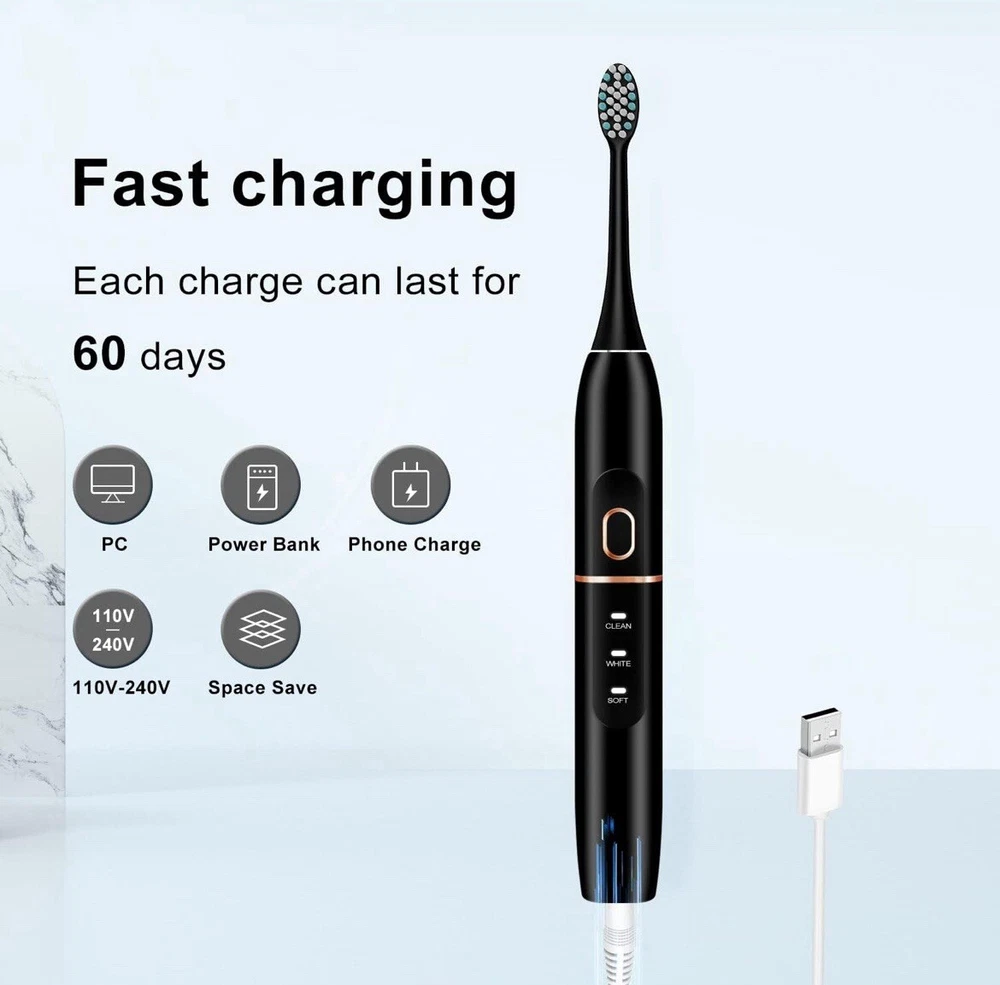 Materials & Care Bristle Material Nylon Handle Material Plastic Style Color Black Measurements Number of Pieces 1 Item Weight 3.2 ounces Item Dimensions 8.86 x 4.35 x 1.77 inches Unit Count 1.0 Count Number of Items 1 Item details Manufacturer SBXDZ Customer Reviews 4.3 out of 5 stars 9,995Reviews Best Sellers Rank #29 in Health & Household (See Top 100 in Health & Household) #1 in Sonic Toothbrushes Target Audience Unisex-Adults Package Type Name Pouch Brand Name kingheroes Age Range Description Adult, Kid Included Components Travel Case Features & Specs Movement Type Vibrate Operation Mode Automatic Number of settings 4 Item Firmness Description Soft Toothbrush Head Shape Oval Special Features Brushing Timer Power Source Battery Powered