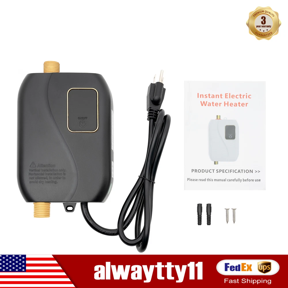 Mini Instant Electric Tankless Kitchen Hot Water Heater Shower 110v 3000w Us Description Our Water Heater Uses a Stainless Steel Heating Core with 3000w Large Power, Providing You with Instant and Constant Hot Water and Allowing for a Comfortable Washing Experience. in Addition, It Adopts Multiple Protection Designs Such As Leakage Protection, Dry-heating Protection, and Grounding Protection, Ensuring High Safety of Water Use. the Mini Body and Modern Appearance Make It a Great Companion for a Sink and Faucet. Key Features Premium Material: the Instant Water Heater Uses Stainless Steel and High-quality Abs Materials with Injection Molding, Making It Sturdy, Wear-resistant, Corrosion-resistant, and Long-lasting. A Safe Heater: the Various Protections Such As Leakage Protection Electric Water Heater Small Instant Hot Water Heater Under Sink Plug in Tankless Description Our water heater uses a stainless steel heating core with 3000w large power, providing you with instant and constant hot water and allowing for a comfortable washing experience. In addition, it adopts multiple protection designs such as leakage protection, dry-heating protection, and grounding protection, ensuring high safety of water use. The mini body and modern appearance make it a great companion for a sink and faucet. Key Features Premium Material: The instant water heater uses stainless steel and high-quality ABS materials with injection molding, making it sturdy, wear-resistant, corrosion-resistant, and long-lasting. A Safe Heater: The various protections such as leakage protection, dry-heating protection, anti-electric wall technology, water-electricity isolation, sensor fault protection, and grounding protection and IPX4 waterproof rate make it safe to use without any worries. Instant Heating: Using a stainless steel heating core with 3000w large power, this water heater can deliver constant hot water, allowing you to experience the warmth without storing water for preheating, which saves time/energy and prevents sediment/scale accumulation. Temperature Controllable: You can control the water temperature(20-50℃) by adjusting the water flow(large water flow, low temperature; small water flow, high temperature), providing you with hot water that fits four seasons in a year. LED Display: The digital screen displays the water temperature(℃/℉ conversion: Press the on/off key, and then press and hold it for more than 6s to switch ℉. Vice versa.), allowing you to keep track of the water temperature. Anti-scaling Design: It can filter the sediment, rust, and other large particles in the tap water, restore the tap water to the factory state, reduce energy consumption, and avoid damage to the human body and skin. Advanced Technology: Advanced water flow sensing technology is adopted to overcome the difficulty of using water heaters due to low water pressure, making it applicable to high-rise residential buildings with low water pressure. Cost-effective: Only when it is used the water can be heated to the required place, eliminating the waste of unused water in the long water pipeline between the central water heater and each faucet, delivering hot water faster and reducing energy costs. Mini Appearance: This mini wall-mounted black instant water heater of 4.57*2.8*7.68 inches size plays a decorative role and does not occupy much space. Easy to Install: With the equipped accessories, premade fixing screw holes, English manual, and 1/2 inch standard interface, you can install this heater easily. Easy to Clean: The smooth surface allows you to wipe the dirt away with a wet cloth. Protective Package: To prevent the product from being damaged and bumped during transportation, we packed it with pearl cotton to protect your products to the maximum extent possible. Details Power Cable: The 3.28ft power cable allows for easy installation in a wider range. Brass Interfaces: The water inlet and outlet adopts brass material, making them corrosion-resistant, stable, anti-rust, and high-temperature-resistant. Touch Button: The new-generation touch button with electronic control has a longer lifespan and good sealing. It resists wet and watery environments and avoids mechanical failure of buttons. Application It is suitable for kitchen water, daily washing, bars, schools, hospitals, communities, hair salons, and so on to wash hands, dishes, and face. Specifications Model: XY-FC Color: Black Material: Stainless Steel, ABS, Brass Process: ABS Particle Injection Molding Shape: Rectangular Style: Mini, Instant Mounting Type: Wall-mounted, Vertical Usage: Indoor Use Features: With Leakage Protection Water Inlet Mode: Lower Water Inlet Heating Method: Instant, Stainless Steel Heating Core Power Source: Corded Electric Plug: US Standard Voltage:110V Frequency: 50-60Hz Power: 3000W Water Pressure: 0.04-1.2MPa Anti-Electric Shock Type: I Waterproof Grade: IPX4 Wire Requirements: >2.5m² Circuit Breaker Switch: >32A Heating Time: About 5s Interface: 1/2"NPT Interface Outer Diameter: 20mm/0.78inch Heating Temperature: 20-50℃/68-122℉ Power Cord Length: 1m/3.28ft Total Height(Interfaces Included): 19.5cm/7.7inch Product Size: 11.6*7*19.5cm/4.57*2.8*7.68in Package Size: 23.5*19*10cm/9.25*7.48*3.9inch Net Weight: 1kg/2.2lbs Gross Weight: 1.1kg/2.4lbs Package Included 1* Instant Water Heater 1* English Manual Other Accessories for Assembly. Notes The unit is mainly for sinks, not for shower purposes. Please verify this unit is the right size for you before buying. The wire is required to be more than 2.5m² and the circuit breaker switch is greater than 32 A. You need to prepare a water pipe, valve, and other excluded accessories yourself. It must be installed vertically upward instead of horizontally, sideways, or flatly. Please properly ground the ground wire during installation, and it is forbidden to use a mobile socket. Beware of potential safety hazards in electricity use. Improper installation may lead to major safety hazards. It is reco