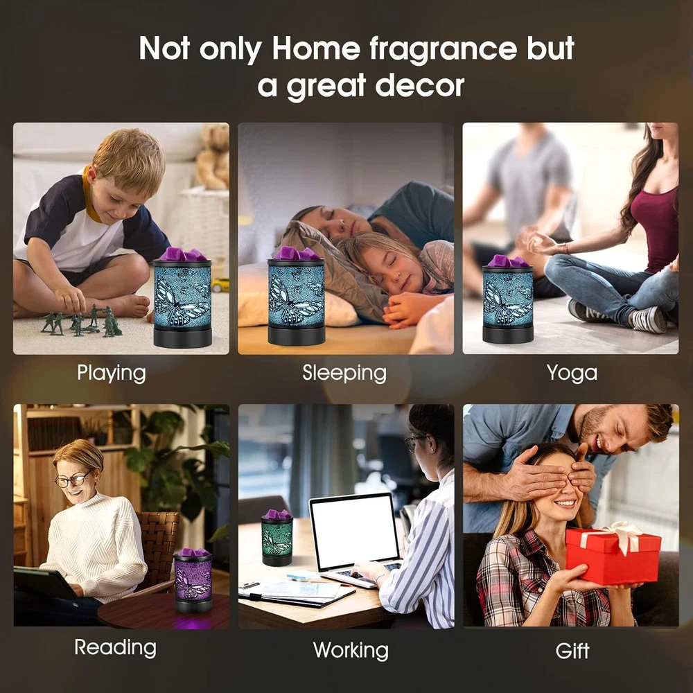 Electric Wax Melter Black Metal Oil Burner Led 7colors Candle Wax Warmer Removable Silicone Tray Aroma Fragrance Lamp for Home Product Details Package Dimensions: 6.77 x 5.04 x 4.84 inches Item Weight: 1.19 pounds Manufacturer: INRORANS Country of Origin: China Item model number: HDR8243 Batteries required: No Cute Pattern: This elegant Electric Wax Melts Burners lights up to showcase a sweet pattern and is compatible with both scented fragrance oils and wax melts, This electric wax warmer is built-in heating PTC element, reusable silicone liner, modern 7 colors led Night light, a perfect wax warmer for scented wax melts or oils, perfect gift option for your families,and friends Air Freshener & Night Light:Our Glass Oil Burner can be used with scented candles. Relax and enjoy your surroundings with beautifully wax melt scents or fragrance oils in our electric dragonfly warmer. Wax burns slower and more gently in an a wax warmer than it does in a tea-light burner but the scent lasts longer.This wax burner fragrance wax warmer also built in 7 colors Cycle changing which further adds atmosphere.The wax warmer for scented wax melts also can be as night light lighting Quick Heating:Inrorans wax warmer electric warm and heat the wax melts faster and more stable with PTC technology,This fragrance Warmer Candle Wax Warmer can heat your favorite scented candle safely and flameless to avoid fire breaking out and air pollutionor other pollutants.Compare with traditional bulbs,this tart warmer,no need replace bulb,which avoid some troubles. Removable Silicone liner:The flexible silicone tray liner allows you qukickly remove wax or melts from electric wax burner ,easy to clean,Convenient and useable,BTW,this liner of wax c,andle warmer is dural and be resued .