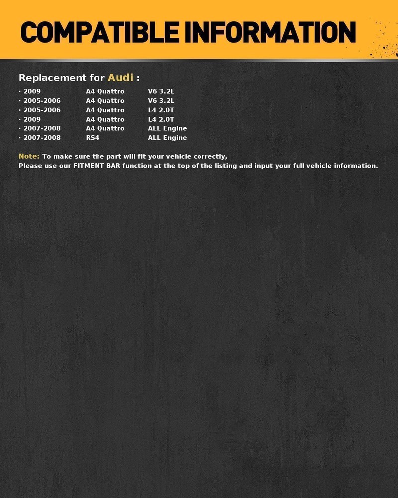 Advantages of KAC Fuel Pump Fuel supply: The Fuel pump assembly can provide stable fuel flow and pressure, ensuring the normal operation of the engine. Boosting: The Fuel pump assembly can increase the pressure of fuel, sending it into the high-pressure fuel rail to meet the needs of high-pressure fuel systems such as direct injection engines. Filtering: The fuel filter in the Fuel pump assembly can filter out impurities and pollutants in the fuel, preventing them from entering the engine. Pressure regulation: The pressure regulator in the electronic Fuel pump assembly is used to control the pressure of the fuel and ensure the stability of the fuel supply. Item Type: Electric Fuel Pump Assembly Condition: Brand New Warranty: One Year Warranty OE Number: E8681M, FG0977, P77072M, SP5103M, 69829 Quantity Sold: One Piece Vehicle Information: Make Model Year Engine Fuel Engine Type Notes Audi A4 Quattro 2005-2009 l4 2.0L Petrol DOHC 2009 Engine: BWT Audi A4 Quattro 2005-2008 V6 3.2L Petrol DOHC Audi RS4 2007-2008 V8 4.2L Petrol DOHC Product Specifications: Product Type Fuel Pump Assembly Inlet Type Strainer Pressure Sensor Inclued No Sending Unit Inclued Yes Float Included Yes Voltage 12V Package Quantity 1 Packaging Type Box Fitment Direct Replacement Payment Shipping Return Policy Contact Us About Warranty 1) we accepts all major credit cards via PayPal: MasterCard, Visa, American Express and Discover. 2) We will only ship to the confirmed PayPal shipping address given with the payment. Please make sure your PayPal and eBay address is correct. If not, please correct it before payment. Thank you. 3) If you want to ship to another address, please change your PayPal shipping address before you make payment. 4) To avoid initiating an unpaid item claim, please pay within 7 days. 5) Custom duties, taxes, or charges are not included in the cost you pay to us. We only ship this item to United States ! 1. We ship to your eBay address. Each package will be shipped by UPS or Fedex with tracking number. 2. Ship within 1 business day once payment completed. Orders placed on weekend will be shipped within 3 days. 4. Seriously promise: Refund or resend will be offered if item still not arrive in 7-10 business days. Just send us an email ,we will give you a satisfied solution as soon as possible. If you send us an e-mail, it will be answered within 48 hours during our working hours. Please feel free to contact us if you have any questions: Dear my friend,we appreciate your support.And our goal is service you well and give you a pleasant shopping time in our store. ✅Dear customer, when you want to return or exchange goods (Please contact us first, instead of directly initiating a dispute) 1: Contact the seller first 2: Send pictures: outer packaging&scanned labels&item itself&with complete accessories, etc necessary condition Rule A: The original packaging of the item is in an unused state. Rule B: The outer packaging must not have any damage. 3: Obtain return label 4: Delivered Projects - Payment Repayment ✅A 15% restocking and shelving fee will be charged for returns or exchanges that are not caused by the seller and are in good condition. Exchange will not charge restocking fees or shipping fees due to transportation errors ✅Priority In case of the following reasons, the freight will be borne by the buyer 1: Unexpected order 2: Find a better price 3: Change your mind 4: Buy more items/make mistakes/misread model information ✅Please note Missing accessories/quality issues/transportation damage, etc Please contact us first to obtain a good solution, rather than directly opening a return dispute. Thank you very much for your understanding. I hope we have a pleasant cooperation! Contact us if you have any question, Give us a chance to serve you, negative feedback could not solve anything, communication Please! ❎ (NO) Three stars is LOW star, NO 1,2,3 stars PLEASE! ✅(YES) Please give us Five-star! Have Question or Problem?? Step 1: Contact seller Step 2: Select the 1st topic: I have a question about using my item or I want to send the seller a message. NO others please! Step 3: Describe your question clearly; we will give you the best solution Please leave five stars positive feedback positive comment and Five-Stars. * We maintain a high standard of excellence (5 star rating) and strive for 100% customer satisfaction! * Feedback is very important to us. * We would like you to contact us immediately before giving us neutral or negative feedback so that we can address your concerns to our satisfaction. * If we don't understand these problems, we won't be able to solve them! * After understanding the problem, we will be able to give you a satisfactory answer! It's highly appreciated you leave us positive feedback and 5 star rating comments if you are satisfied with our service! Your comment is very important in our business success. About Warranty ✅ Free repair: During the warranty period, if the product fails due to manufacturing defects, component failure or workmanship problems, please contact us to provide corresponding handling methods. ✅ Warranty period: The warranty period is usually calculated from the date of purchase, and the specific period may vary depend on the product type and brand. ✅ Extended warranty: Some manufacturers may provide additional extended warranty services, which usually require additional fees and may extend the original warranty period or provide a wider warranty coverage ✅ Warranty terms: The repairer needs to use components and spare parts that meet the technical requirements of the product, carefully record the failure and the quality of the product after repair, and ensure that the repaired product can be used normally for more than 30 days. ✅ Note: If there are any problems with the product received, please provide all relevant videos, pictures and other clues to facilitate our cunstomer service department and processing the issuse for you . Thank you fo