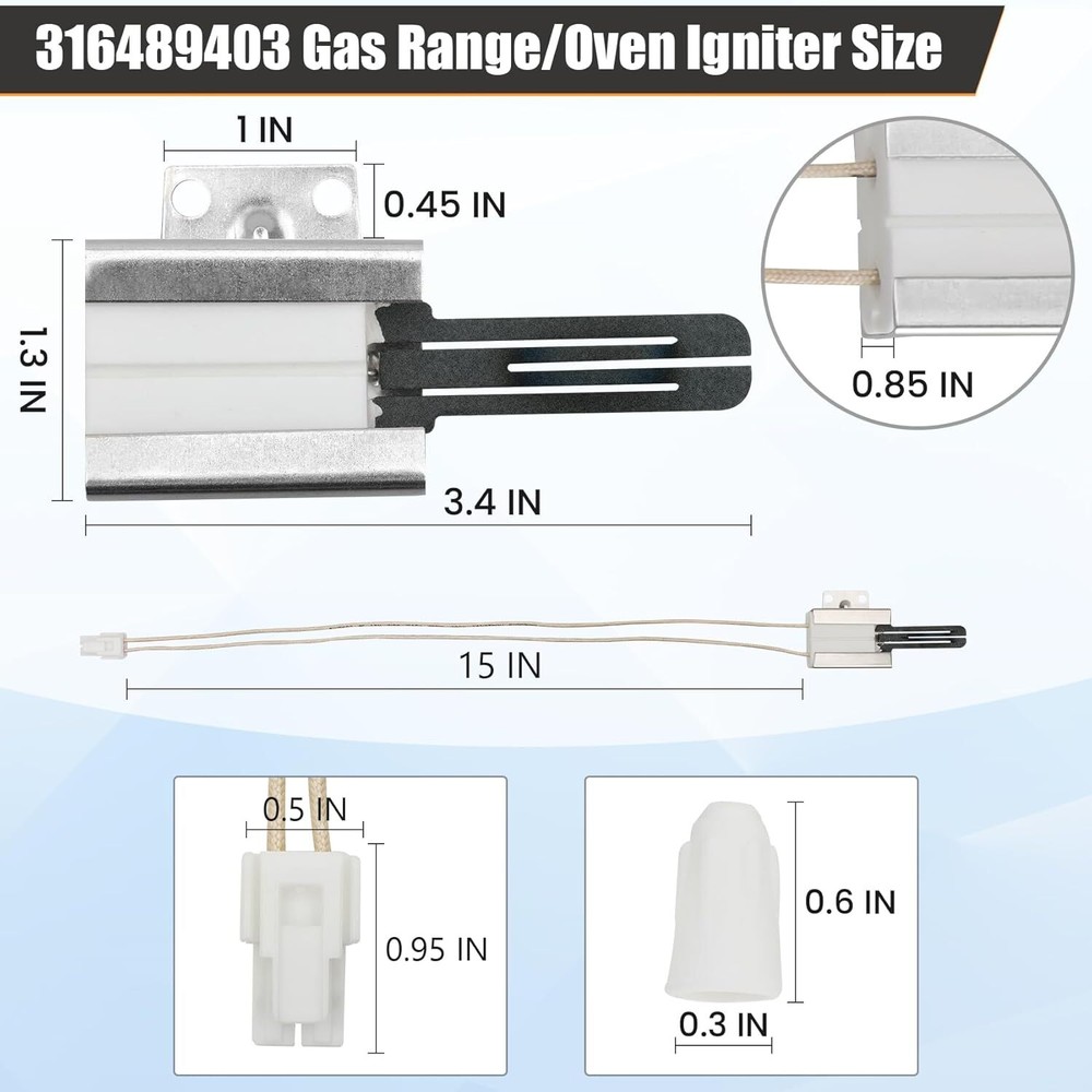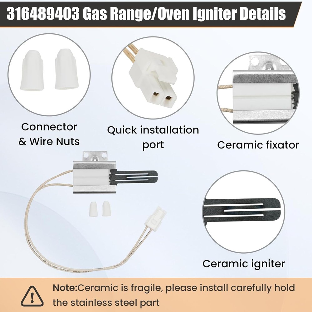 Exact Replacement Range Oven Gas Igniter for Electrolux Frigidaire 316489403 Description: Aftermarket Part and Brand New Part Number: 316489403 gas oven igniter replaces 501RB A04454501 Product Application: (Tips: press ""Ctrl + F"" to help you quick locate the model you are looking for) Compatible Model: For Frigidaire: BGGF BGGF3031KBA, BGGF3031KBB, BGGF3031KBC, BGGF3031KBD, BGGF3031KBE, BGGF3031KBF, BGGF3031KBG, BGGF3031KBH, BGGF3031KWA, BGGF3031KWB, BGGF3031KWC, BGGF3031KWD, BGGF3031KWE, BGGF3031KWF, BGGF3031KWG, BGGF3031KWH, BGGF3041KFA, BGGF3041KFB, BGGF3041KFC, BGGF3041KFD, BGGF3041KFE, BGGF3042KFA, BGGF3042KFB, BGGF3042KFC, BGGF3042KFD, BGGF3042KFE, BGGF3042KFF, BGGF3042KFG, BGGF3042KFH, BGGF3042KFJ, BGGF3042KFK, BGGF3042KFM, BGGF3042KFN, BGGF3042KFP, BGGF3042KFR, BGGF3042KFS, BGGF3042KFT, BGGF3042KFV, BGGF3045RFA, BGGF3045RFB, BGGF3045RFC, BGGF3045RFD,CFGF3023LWA, CFGF3023LWB, CFGF3023LWC, CFGF3023LWD, CFGF3053LSA, CFGF3053LSB, CFGF3053LSC, CFGF3053LSD, CFGF3053LSE, CFGF3053LSF, CFGF3053LSG, CFGF368GBE, CFGF368GBF, CFGF368GBG, CFGF368GCF, CFGF368GCG, CFGF368GCH, CFGF368GCJ, CFGF368GME, CFGF368GMG, CFGF368GMH, CFGF368GSE, CFGF368GSF, CFGF368GSG, CFGFL87GCE,CGGF3032KBB, CGGF3032KBD, CGGF3032KBG, CGGF3032KBJ, CGGF3032KWB, CGGF3032KWD, CGGF3032KWG, CGGF3032KWJ, CGGF3032MBA, CGGF3032MBB, CGGF3032MFA, CGGF3032MFB, CGGF3032MFC, CGGF3032MFD, CGGF3032MWA, CGGF3032MWB, CGGF3032MWC, CGGF3042KFB, CGGF3042KFD, CGGF3042KFE, CGGF3042KFF, CGGF3042KFG, CGGF3042KFH, CGGF3042KFJ, CGGF3042KFK, CGGF3054KBB, CGGF3054KBC, CGGF3054KBF, CGGF3054KBK, CGGF3054KFB, CGGF3054KFC, CGGF3054KFE, CGGF3054KFG, CGGF3054KFH, CGGF3054KFJ, CGGF3054KFK, CGGF3054KWB,CGGF3054KWC, CGGF3054KWF, CGGF3054KWH, CGGF3054KWK, CGGF3054MBA, CGGF3054MBB, CGGF3054MFA, CGGF3054MFB, CGGF3054MFC, CGGF3054MWA, CGGF3054MWB, CGGF3056KFA, CGGF3056KFB, CGGF3056KFC, CGGF3056KFD, CGGF3056KFE, CGGF3056KFG, CGGF3056KFH, CGGF3056KFJ, CGGF3056KFK, CGGF3056KFM, CGGF3056KFN, CGGF3056KFP, CGGF3056KFR, CGGF3056KFS, CGGF3076KBB, CGGF3076KBD, CGGF3076KBG, CGGF3076KBH, CGGF3076KBJ, CGGF3076KBK, CGGF3076KWB, CGGF3076KWD, CGGF3076KWG, CGGF3076KWH, CGGF3076KWJ, CGGF3076KWK,CGLGF386GSD, CGLGF389GBD, CGLGF389GSD, CGLGFZ86GCE, CPGF3081KFA, CPGF3081KFB, CPGF3081KFD, CPGF3081KFG, CPGF3081KFH, CPGF3081KFK, CPGF3081KFM, CPGF3081KFN, CPLGFZ97GCF, DGGF3032KBA, DGGF3032KBB, DGGF3032KBC, DGGF3032KBD, DGGF3032KBE, DGGF3032KBF, DGGF3032KBG, DGGF3032KBH, DGGF3032KBJ, DGGF3032KBK, DGGF3032KBM, DGGF3032KWA, DGGF3032KWB, DGGF3032KWC, DGGF3032KWD, DGGF3032KWE, DGGF3032KWF, DGGF3032KWG, DGGF3032KWH, DGGF3032KWJ, DGGF3032KWK, DGGF3032KWM, DGGF3042KFA, DGGF3042KFB, DGGF3042KFC, DGGF3042KFD, DGGF3042KFE, DGGF3042KFF,DGGF3042KFG, DGGF3042KFH, DGGF3042KFJ, DGGF3042KFK, DGGF3042KFM, DGGF3042KFN, DGGF3042KFP, DGGF3042KFR, DGGF3045RFA, DGGF3045RFB, DGGF3046RFA, DGGF3046RFB, DGGF3046RFC, DGGF3054KFA, DGGF3054KFB, DGGF3054KFC, DGGF3054KFE, DGGF3054KFF, DGGF3054KFG, DGGF3054KFH, DGGF3054KFJ, DGGF3054KFK, DGGF3054KFM, DGGF3054KFN, DGGF3054KFP, DGGF3054KFR, DGGF3054KFS, DGGF3054KFT,FCRG3005AWA, FCRG3015ABA, FCRG3015ABB, FCRG3015AWA, FCRG3051ASA, FCRG3051ASB, FCRG3052ABA, FCRG3052ABB, FCRG3052ABC, FCRG3052ASA, FCRG3052ASB, FCRG3052ASC, FCRG3052AWA, FCRG3052AWB, FCRG305LAFA, FCRG305LAFB, FCRL3052ASA,FFGF3021LBA, FFGF3021LBB, FFGF3021LBC, FFGF3021LWA, FFGF3021LWB, FFGF3021LWC, FFGF3021LWD, FFGF3021ZWB, FFGF3021ZWC, FFGF3021ZWD, FFGF3021ZWE, FFGF3021ZWG, FFGF3023LBA, FFGF3023LBB, FFGF3023LBC, FFGF3023LBD, FFGF3023LBE, FFGF3023LBF, FFGF3023LBG, FFGF3023LMA, FFGF3023LMB, FFGF3023LMC, FFGF3023LMD, FFGF3023LME, FFGF3023LMF, FFGF3023LMG, FFGF3023LQA, FFGF3023LQB, FFGF3023LQC, FFGF3023LQD, FFGF3023LQE, FFGF3023LQF, FFGF3023LQG, FFGF3023LSA, FFGF3023LSC,FFGF3023LSD, FFGF3023LSE, FFGF3023LSF, FFGF3023LSG, FFGF3023LSH, FFGF3023LWA, FFGF3023LWB, FFGF3023LWC, FFGF3023LWD, FFGF3023LWE, FFGF3023LWF, FFGF3023LWG, FFGF3024RWA, FFGF3024SSB, FFGF3027LBA, FFGF3027LBB, FFGF3027LSA, FFGF3027LSB, FFGF3027LSC, FFGF3027LSD, FFGF3027LSE, FFGF3027LSF, FFGF3027LSG, FFGF3027LWA, FFGF3027LWB, FFGF3027LWC, FFGF3051LSA, FFGF3051LSB, FFGF3051LSC, FFGF3051LSD, FFGF3051LSE, FFGF3051LSF, FFGF3051LSG, FFGF3051LSH, FFGF3053LSA,FFGF3053LSB, FFGF3053LSC, FFGF3053LSD, FFGF3053LSE, FFGF3053LSF, FFGF3053LSG, FFGF3053LSH, FFGF3053LSJ, FFGF3053LSK, FFGF3053LSL, FFGF3053LSM, FFGF3054TBA, FFGF3054TBB, FFGF3054TBC, FFGF3054TBD, FFGF3054TBE, FFGF3054TDA, FFGF3054TDC, FFGF3054TDD, FFGF3054TDE, FFGF3054TSB, FFGF3054TSC, FFGF3054TSD, FFGF3054TSE, FFGF3054TWA, FFGF3054TWC, FFGF3054TWD, FFGF3054TWE, FFGF3054TWF, FFGF3056TBA, FFGF3056TDA, FFGF3056TSB, FFGF3056TSC, FFGF3056TSD, FFGF3056TWA,FFGH3051VSA, FFGH3051VSB, FFGH3054UBA, FFGH3054UBB, FFGH3054USA, FFGH3054USB, FFGH3054USD, FFGH3054UWA, FGF364KCA, FGF364KCB, FGF364KCC, FGF364KCD, FGF364KCF, FGF364KCG, FGF364KSA, FGF364KSC, FGF368GBG, FGF368GBH, FGF368GBJ, FGF368GBK, FGF368GCG, FGF368GCH, FGF368GCJ, FGF368GCK, FGF368GCM, FGF368GCN, FGF368GCP, FGF368GMF, FGF368GMG, FGF368GMH, FGF368GMJ, FGF368GMK, FGF368GMM, FGF368GMN, FGF368GMP,FGF368GMR, FGF368GQG, FGF368GQH, FGF368GQJ, FGF368GSG, FGF368GSH, FGF368GSJ, FGF382HBD, FGF382HCG, FGF382HCH, FGF382HCJ, FGF382HSE, FGFB66ECP, FGFB66ECR, FGFB66ECS, FGFB79GBF, FGFB79GCH, FGFB79GSF, FGFBZ90GCH, FGFL67HBE, FGFL67HBF, FGFL67HBG, FGFL67HBH, FGFL67HBJ, FGFL67HCE, FGFL67HCF, FGFL67HSE, FGFL67HSF, FGFL67HSG, FGFL67HSH, FGFL67HSJ, FGFL79GBF, FGFL79GCH, FGFL79GQF, FGFL79GSF, FGFL87GSH, FGFLMC55GCH, FGFLMC55GCJ, FGFLMC55GCK, FGFLZ87GCH,FGGF3030 FGGF3030PBA, FGGF3030PBC, FGGF3030PFA, FGGF3030PFB, FGGF3030PFC, FGGF3030PFD, FGGF3030PFE, FGGF3030PFF, FGGF3030PWA, FGGF3030PWB, FGGF3030PWC, FGGF3030PWD, FGGF3030PWE,FGGF3031 FGGF3031KBA, FGGF3031KBB, FGGF3031KBC, FGGF3031KBD, FGGF3031KBE, FGGF3031KBF, FGGF3031KBG, FGGF3031KBH, FGGF3031KBJ, FGGF3031KBK, FGGF3031KBM, FGGF3031KQA, FGGF3031KQB, FGGF3031KQC, FGGF3031KQD, FGGF3031KQE, FGGF3031KQF, FGGF3031KQG, FGGF3031KQH, FGGF3031KQJ, FGGF3031KQK, FGGF3031KQM, FGGF3031KWA, FGGF3031KWB, FGGF3031KWC,FGGF3031KWD, FGGF3031KW