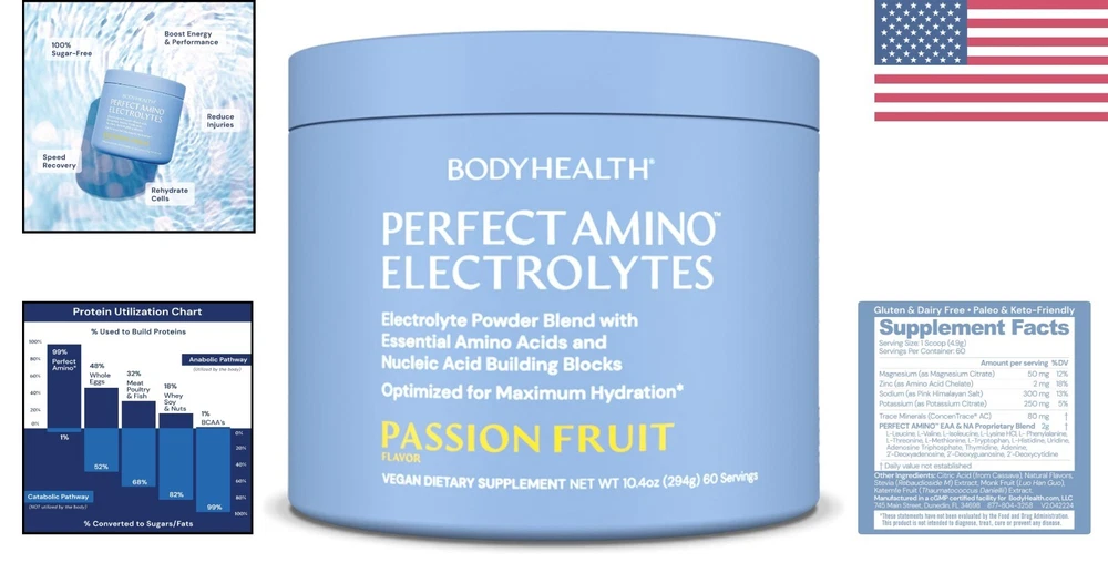 Electrolytes Powder for Energy Boost - Passion Fruit Flavor, 10.4 oz Package ‹ › ‹ › ‹ › ‹ › ‹ › ‹ › ‹ › ‹ › Electrolytes Powder for Energy Boost - Passion Fruit Flavor Explore the refreshing, energizing world of hydration with our 10.4 oz package of Passion Fruit Electrolytes Powder, designed for those who demand peak performance and unyielding hydration. Features: Long Lasting Hydration: Perfect Amino electrolyte hydration drink replenishes your body with complete electrolytes lost during strenuous activities. Energy Boost: Our sugar-free formula delivers a powerful dose of minerals and PerfectAmino to keep your energy levels high, helping to fend off dehydration. Keto Friendly: This versatile electrolyte mix is sugar-free, Paleo & Keto friendly, and Non-GMO, ensuring you stay hydrated without unnecessary additives. Easy to Mix: Simply add 1 scoop of our electrolyte powder to 16 oz of hot or cold water for an effortless hydration experience. Great Taste: Enjoy the delicious Passion Fruit flavor without any chalky aftertaste, maintaining your hydration in a pleasant and refreshing way. Benefits: Optimal hydration to revive your body after any workout. Delivers essential electrolytes for maximum performance. Enhances endurance for prolonged physical activity. Supports recovery and reduces fatigue post-workout. Makes hydration enjoyable with refreshing natural flavor. Why Choose Our Electrolytes Powder? Transform your hydration routine with our Passion Fruit Electrolytes Powder - meticulously crafted for athletes and active individuals. This sugar-free, keto-friendly formula is packed with vital electrolytes to ensure you stay hydrated and energized throughout your workout and beyond. Its easy-to-mix design allows you to hydrate in moments, and the delightful taste elevates your drinking experience. Don’t wait for thirst to strike—embrace a lifestyle of superior hydration and energy. Order your Passion Fruit Electrolytes Powder today and unlock your full potential! Shipping Free & Fast Shipping - We offer free shipping to most of the USA with a normal delivery time of 3-7 days. However, due to the current situation, additional delivery time (up to 3 weeks) may be required for some items. Alternative Carriers - We may use alternative carriers (e.g. USPS, FedEx, UPS, etc.) to ensure your package arrives safely and on time. Due to the use of multiple carriers, we are unable to provide a tracking number automatically. Handling Time - Orders are processed and shipped within 1-2 business days of receiving cleared payment. Shipping Restrictions - Shipping to Alaska, Hawaii, Puerto Rico, Guam, and other US territories may incur shipping charges or delivery restrictions. Please contact us before ordering, or your order can be refunded/cancelled. State Restrictions - There may be restrictions based on your state of purchase. For example, certain items may not be shipped to California due to state regulations. Contact for Tracking Updates - If you require tracking updates or have any concerns about the delivery of your order, please feel free to contact us, and we will be happy to assist you. Return 30-Day Hassle-Free Returns - We want you to be completely satisfied with your purchase. If you are not, you can return the item within 30 days of receiving it for a full refund or exchange. Easy Return Process - To start a return, simply contact us and we will provide you with a prepaid return shipping label and detailed instructions. Restocking Fee - There are no restocking fees for returns. However, the buyer is responsible for return shipping costs if the return is not due to a seller's error. Refund Processing Time - Refunds will be processed within 5 business days of receiving the returned item in its original condition. Payment We accept all major credit cards, PayPal, and Apple Pay for your convenience. Your payment information is secure and encrypted to ensure a safe and seamless transaction. Please complete your payment within 3 days of purchase to avoid any delays in shipping. Feedback Your feedback is extremely important to us. We strive to provide the best products and customer service possible. If you are satisfied with your purchase, please take a moment to leave us a positive review. If you have any concerns or issues with your order, please contact us before leaving negative feedback. We are committed to resolving any problems and ensuring your satisfaction. Contact Us If you have any questions or concerns, please feel free to reach out to our customer support team. You can contact us through the eBay messaging system. We are available Monday to Friday, 9:00 am to 5:00 pm EST, and we will do our best to respond to your inquiry within 24 hours. Buy it now and enjoy a pleasant shopping experience! UPC: Not Set Expiration Date: Electrolyte Powder Unit Quantity: 60 Active Ingredients: Electrolyte Powder Formulation: Powder Main Purpose: Not Set Ingredients: Not Set Flavor: Fruit Features: Not Set Type of Diet: Not Set Department: Not Set When to Take: Not Set Brand: Unbranded Type: Drink Mix Supply: Up to 1 Month MPN: Not Set Number of Pills: Not Set Item Weight: 10.4 oz Country/Region of Manufacture: Not Set Volume: Not Set Dosage: Not Set Unit Type: oz
