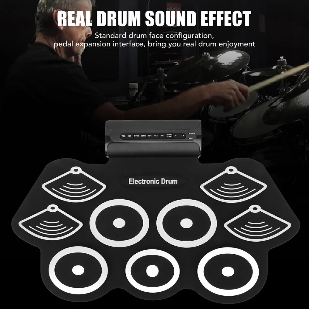 Feature: 1. MULTI FUNCTION: Built in multiple groups of excellent drum sound source, restore the real and the most shocking drum sound, standard drum set, pedal expansion interface, bring you the enjoyment of real drum kit 2. MEET A VARIETY OF SCENES: Contain 9 drums, 2 pedals(cymbals, bottom drums), 12 demonstration pieces, 7 drum sets, 9 accompaniment sets 3. USAGE SCENARIO: With own recording function, one click recording, convenient for you to record your music inspiration anytime and anywhere. Daily percussion practice, friends gathering performance, family gathering to promote family affection, more scenes for you to experience 4. PLAY WHILE LEARNING: Learning drums while playing, computer, mobile phone can be connected to DTX electric drum, the game from easy to difficult to strengthen exercise, zero base for easy entry 5. DOUBLE HORN SOUND: 2X5W medium power excellent horn; Built in speaker 360 degree stereo surround sound, let you immerse in the beautiful music, vocal is enough shock, light shape, fashion, simple, easy to carry Specification: Item Type: Electronic Drum Set Material: Natural silicone, ABS, electronic, wood Color: Black and white Power Supply Mode: Power supply Applicable Voltage: 100-240V Package List: 1 x Drum Roll 2 x Drum Sticks 1 x Audio Cable 1 x Charging Cable 2 x Foot Pedal 1 x Plug 1 x User Manual All the items will be dispatched within one business day by Airmail after the payment is clear. Most times you will receive your order within 10-30 business days after we transfer your package to the delivery company. We cannot guarantee the delivery timeframe if the post office has any unexpected delays due to holiday,weather,customs, or other conditions. Some countries like Russia, Brazil, or some European countries may take up to 50 days or longer for delivery. We appreciate your patience if you haven't received items in 30 days(Russian customers may need more patience by reason of the local delivery system and/or customs). If you are concerned in any way, please feel free to contact us via ebay message instead of leaving negative/neutral feedback or opening a dispute . We will do our best to solve any problem(resend or refund any missingitem). Customs duty is obligation and liability of citizens in yourresponsible for any tax and custom duty incurred. Generally, thedelay or failure delivery is sometimes caused by the policy of different customs. Our listing price includes the value of goods,packaging cost,and export taxes,not including international duties. duties,taxes,and charges are not included in the item price or shipping fee. The duties are buyers' responsibility. Please check with your country's customs office determine what these additional costs will be prior to your purchase. All disputes arising from the duties will be submitted to ebay for solution. Any questions, pls. contact us via ebay message or email us. We will reply your message within 48 hours. If you do not receive our reply within 48 hours, pls. post a message again because sometimes our message system may block some emails. If you are satisfied with our service, pls. kindly leave us a positive feedback and give us the Detailed Seller Rating with all " 5 " in very area. Our aim is to provide Level Customer Service, your recognition will encourage us greatly and serve you better. We strive to keep all our customers satisfy. We will do our up most to exceed your expectations in customer service, communication and dispatching of your orders.