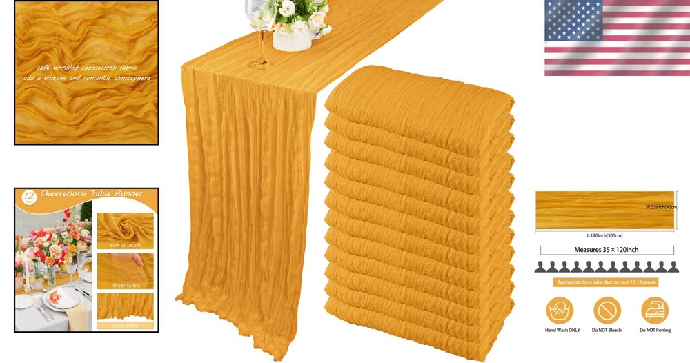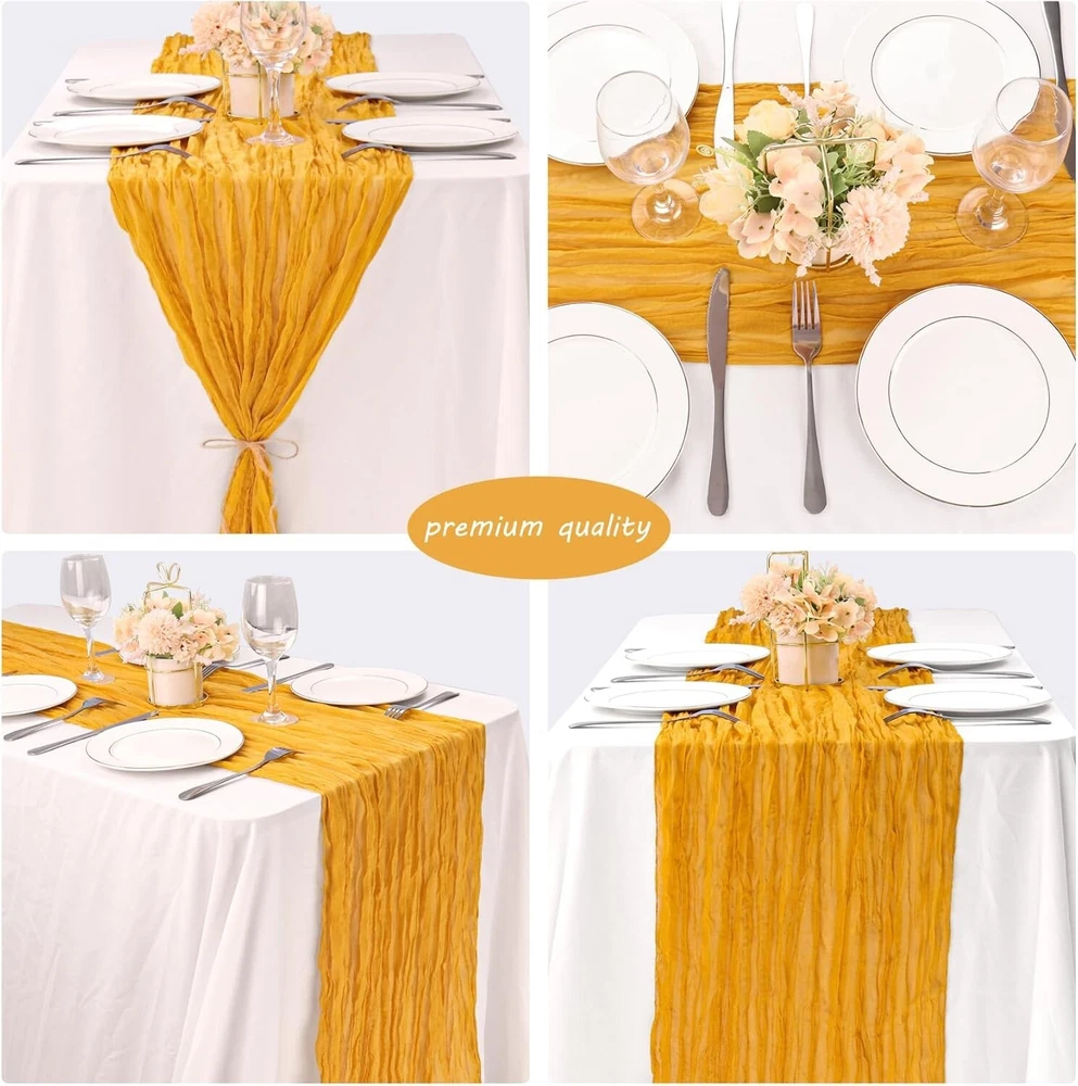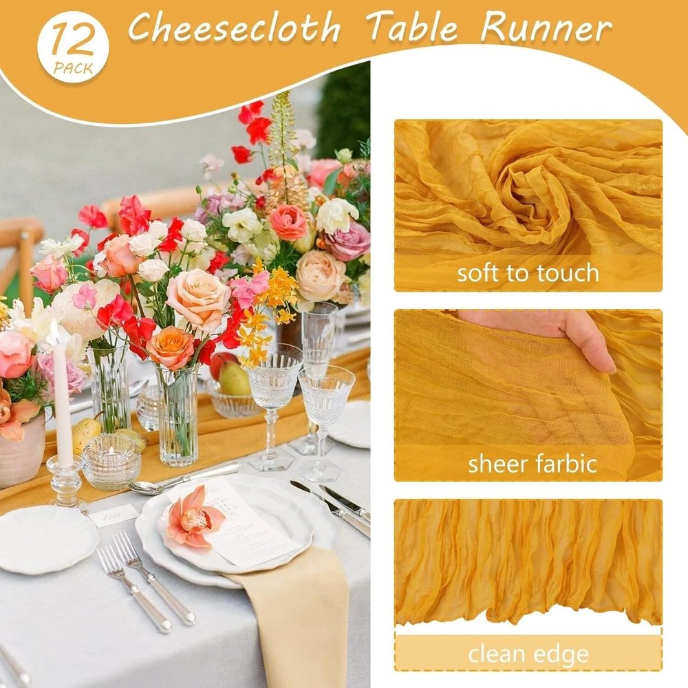 Elegant 10FT Mustard Cheesecloth Table Runners - 12 Pack for Romantic Events ‹ › ‹ › ‹ › ‹ › ‹ › ‹ › ‹ › ‹ › ‹ › Elegant 10FT Mustard Cheesecloth Table Runners - 12 Pack Transform your romantic events with our exquisitely designed mustard cheesecloth table runners, available in a generous pack of 12. Each runner measures approximately 35 x 120 inches (90 x 300 cm), making them perfect for adorning both rectangular and round tables. Their ample length also allows for creative splicing on long tables, or they can be repurposed as chair cover sashes, decorative napkins, backdrops, or even for unique gift wrapping. Features: Package includes 12 elegant 10ft mustard cheesecloth table runners. Dimensions of each runner: 35 x 120 inches (90 x 300 cm). Crafted from high-quality polyester; soft to touch and long-lasting. Delicate edges with a seamless technique for enhanced gracefulness. Sheer, lightweight fabric with a natural drape and skin-friendly texture. Benefits: Add a rustic-elegant ambiance to any table setting. Perfectly versatile for weddings, parties, and special occasions. Effortlessly create beautiful folds or let them flow loosely for a vintage touch. Can be tied into bows or used to elevate chair cover designs. Easy to care for - maintain their exquisite look with simple washing instructions. Why choose our Mustard Cheesecloth Table Runners? Infuse your celebrations with the allure of our Elegant Mustard Cheesecloth Table Runners. Ideal for weddings, bridal showers, birthday parties, or any themed event, they add a soft, romantic touch that resonates with the beauty of the occasion. Their extensive versatility allows you to style them according to your decorating vision, whether you prefer classic elegance or bohemian chic. Make every gathering memorable with these stunning table runners—perfect for adding a chic touch to your home, hotel, or grand estate. Order your 12-pack of Elegant 10FT Mustard Cheesecloth Table Runners today and elevate your decor to new heights! Shipping Free & Fast Shipping - We offer free shipping to most of the USA with a normal delivery time of 3-7 days. However, due to the current situation, additional delivery time (up to 3 weeks) may be required for some items. Alternative Carriers - We may use alternative carriers (e.g. USPS, FedEx, UPS, etc.) to ensure your package arrives safely and on time. Due to the use of multiple carriers, we are unable to provide a tracking number automatically. Handling Time - Orders are processed and shipped within 1-2 business days of receiving cleared payment. Shipping Restrictions - Shipping to Alaska, Hawaii, Puerto Rico, Guam, and other US territories may incur shipping charges or delivery restrictions. Please contact us before ordering, or your order can be refunded/cancelled. State Restrictions - There may be restrictions based on your state of purchase. For example, certain items may not be shipped to California due to state regulations. Contact for Tracking Updates - If you require tracking updates or have any concerns about the delivery of your order, please feel free to contact us, and we will be happy to assist you. Return Please see our eBay Return Policy. Thank you. Payment We accept all major credit cards, PayPal, and Apple Pay for your convenience. Your payment information is secure and encrypted to ensure a safe and seamless transaction. Please complete your payment within 3 days of purchase to avoid any delays in shipping. Feedback Your feedback is extremely important to us. We strive to provide the best products and customer service possible. If you are satisfied with your purchase, please take a moment to leave us a positive review. If you have any concerns or issues with your order, please contact us before leaving negative feedback. We are committed to resolving any problems and ensuring your satisfaction. Contact Us If you have any questions or concerns, please feel free to reach out to our customer support team. You can contact us through the eBay messaging system. We are available Monday to Friday, 9:00 am to 5:00 pm EST, and we will do our best to respond to your inquiry within 24 hours. Thank you for supporting our small family business! UPC: Not Set Unit Quantity: 12 Material: 100% Polyester,Linen,Polyester Theme: Not Set Occasion: Anniversary,Apology,Baby Shower,Bar Mitzvah,Birthday,Christmas,Congratulations,Easter,Engagement,Funeral,Get Well,Good Luck,Halloween,International Women's Day,Labor Day,Mother's Day,Multipurpose,New Home,Party,Retirement,Romance,Valentine's Day,Wedding,Bridal Shower,Thanksgiving Features: Machine Washable,Hand Wash Only,Hand Washable,Lay Flat Dry,Do Not Iron,Do Not Bleach Department: Adults,Boys,Girls,Kids,Men,Teens,Unisex,Unisex Baby & Toddler,Women Character: Not Set Brand: Unbranded Color: Mustard Type: Table Runner Pattern: Solid Shape: Rectangle Style: Bohemian MPN: Not Set Item Length: Not Set Country/Region of Manufacture: Not Set Character Family: Not Set Item Width: Not Set Model: Not Set Unit Type: Unit Care Instructions: Hand Wash Only Personalize: Not Set