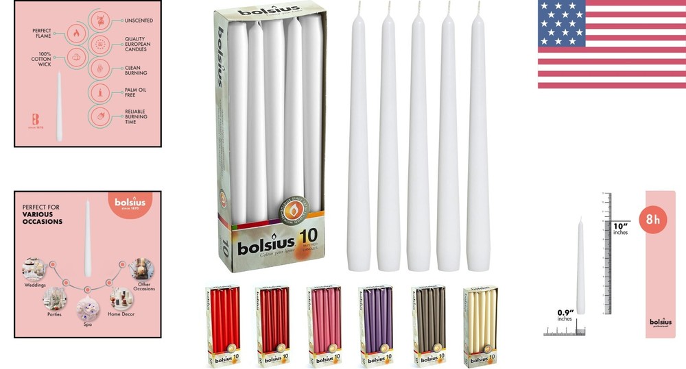 Elegant 10-Inch Unscented Taper Candles, 10-Pack - Dripless & Smokeless ‹ › ‹ › ‹ › ‹ › ‹ › ‹ › ‹ › ‹ › ‹ › ‹ › ‹ › 10-Inch Unscented Taper Candles - 10-Pack Transform your space with elegance and warmth using our unscented taper candles. Designed for all occasions, these candles bring a touch of sophistication without breaking the bank. Features: Height: 10 inches, perfect for standard candlestick holders. Dripless & smokeless design ensures a clean, hassle-free experience. Crafted from 100% Paraffin Wax for a steady flame and beautiful glow. Durable braided cotton wicks provide an elegant burn while minimizing soot. Each candle burns up to 8 hours, creating a long-lasting ambiance. Packs are versatile, perfect for both commercial and home décor needs. Benefits: Ideal for weddings, dinner parties, and religious ceremonies. Adds warmth and elegance to any setting, from dining tables to event venues. Simplifies decor with its classic white color that complements any style. Creates a cozy atmosphere during festivals or intimate gatherings. 100% satisfaction guarantee ensures you can buy with confidence. Why Choose Our Taper Candles? Elevate your indoor and outdoor environments with our 10-inch unscented taper candles. With their grace and refinement, these candles are not just a source of light, but a centerpiece that signifies warmth and elegance. Whether it's a wedding, a festive dinner, or simply to enhance your home decor, our dripless, smokeless candles provide the perfect ambiance, allowing you to create memories that shine. Enjoy the serene experience of candlelight with absolute peace of mind. Order your 10-Pack today and let the magic of candlelight transform your special occasions! Shipping Free & Fast Shipping - We offer free shipping to most of the USA with a normal delivery time of 3-7 days. However, due to the current situation, additional delivery time (up to 3 weeks) may be required for some items. Alternative Carriers - We may use alternative carriers (e.g. USPS, FedEx, UPS, etc.) to ensure your package arrives safely and on time. Due to the use of multiple carriers, we are unable to provide a tracking number automatically. Handling Time - Orders are processed and shipped within 1-2 business days of receiving cleared payment. Shipping Restrictions - Shipping to Alaska, Hawaii, Puerto Rico, Guam, and other US territories may incur shipping charges or delivery restrictions. Please contact us before ordering, or your order can be refunded/cancelled. State Restrictions - There may be restrictions based on your state of purchase. For example, certain items may not be shipped to California due to state regulations. Contact for Tracking Updates - If you require tracking updates or have any concerns about the delivery of your order, please feel free to contact us, and we will be happy to assist you. Return 30-Day Hassle-Free Returns - We want you to be completely satisfied with your purchase. If you are not, you can return the item within 30 days of receiving it for a full refund or exchange. Easy Return Process - To start a return, simply contact us and we will provide you with a prepaid return shipping label and detailed instructions. Restocking Fee - There are no restocking fees for returns. However, the buyer is responsible for return shipping costs if the return is not due to a seller's error. Refund Processing Time - Refunds will be processed within 5 business days of receiving the returned item in its condition. Payment We accept all major credit cards, PayPal, and Apple Pay for your convenience. Your payment information is secure and encrypted to ensure a safe and seamless transaction. Please complete your payment within 3 days of purchase to avoid any delays in shipping. Feedback Your feedback is extremely important to us. We strive to provide the best products and customer service possible. If you are satisfied with your purchase, please take a moment to leave us a positive review. If you have any concerns or issues with your order, please contact us before leaving negative feedback. We are committed to resolving any problems and ensuring your satisfaction. Contact Us If you have any questions or concerns, please feel free to out to our customer support team. You can contact us through the eBay messaging system. We are available Monday to Friday, 9:00 am to 5:00 pm EST, and we will do our best to respond to your inquiry within 24 hours. Buy it now and enjoy a pleasant shopping experience! Unit Quantity: 10 Features: Smokeless,Dripless,Long,Unscented Theme: Dinner Candles Material: Paraffin Wax Room: Indoor Type: Taper Candle Scent: Unscented Color: White Shape: Taper Size: 10 Inch Number in Pack: 10 Style: Classic Item Weight: 1.21 pounds Burning Time: More Than 5 hrs Unit Type: lb