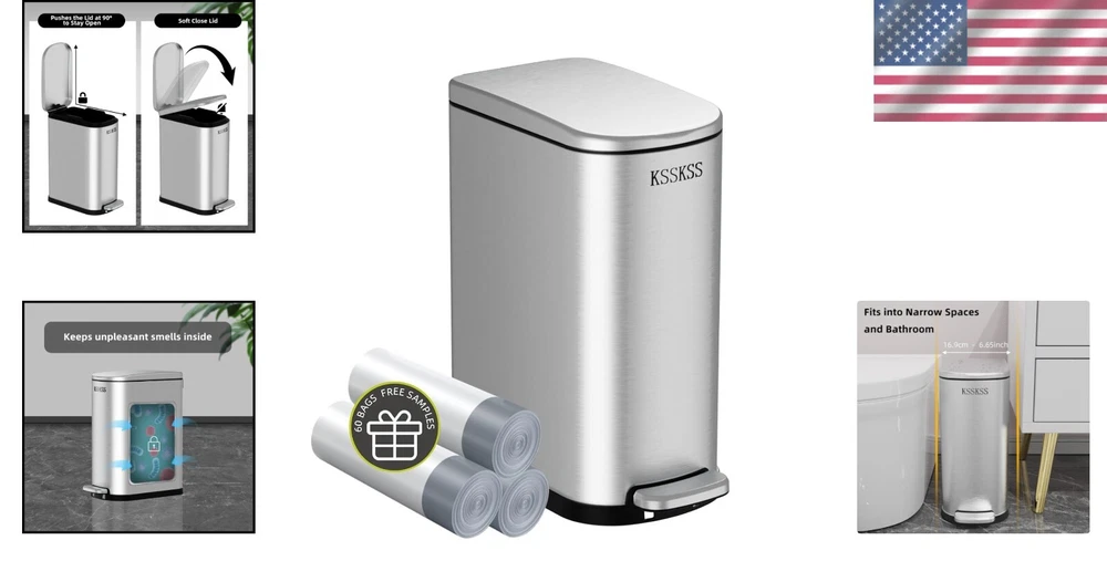 Elegant 10L Stainless Steel Bathroom Trash Can - Slim Design for Compact Spaces ‹ › ‹ › ‹ › ‹ › ‹ › ‹ › ‹ › ‹ › ‹ › Elegant 10L Stainless Steel Bathroom Trash Can Slim Design for Compact Spaces Key Features: Compact Design: This 2.6 gallon step trash can features a slim profile, measuring just 6.5 inches wide. Its elegant rectangular shape makes it the perfect fit for inside cabinets, under counters, and small spaces. Soft Close & Stay-Open Lid: Experience peace and tranquility with our discreet lid that closes softly to avoid noise disturbances. It can also be manually secured at a 90° angle for easy and effortless waste disposal. Optimal Size and Capacity: With dimensions of 13.58" x 6.69" x 15.43" (LxWxH), our trash can holds an impressive 10 Liter/2.6 Gallon capacity, perfect for everyday use. Easy Care: Crafted from durable SUS304 stainless steel with a fingerprint-proof finish, ensuring your trash can looks pristine. The removable inner liner is made from sturdy plastic and is simple to clean with mild soap and water. Includes 60 Drawstring Bags: Enjoy immediate use with your purchase, as it comes complete with 60 drawstring garbage bags tailored for your 2.6-gallon trash can. Benefits: Perfect for stylishly enhancing any bathroom or compact space. Noise-reducing features make it ideal for family use, providing a serene environment. Durability and ease of maintenance make it a long-lasting addition to your home. Convenience of drawstring bags included, ensuring you're ready to use your new trash can right away. Why Choose Our Elegant Stainless Steel Trash Can? If you're searching for sophistication paired with functionality, look no further. Our Elegant 10L Stainless Steel Bathroom Trash Can is designed to blend seamlessly into any small space while elevating your home's aesthetic. With its exceptional features and sleek design, it promises not just style but also thoughtful practicality. Upgrade your waste disposal solution today and transform your space with this essential accessory! Shipping Free & Fast Shipping - We offer free shipping to most of the USA with a normal delivery time of 3-7 days. However, due to the current situation, additional delivery time (up to 3 weeks) may be required for some items. Alternative Carriers - We may use alternative carriers (e.g. USPS, FedEx, UPS, etc.) to ensure your package arrives safely and on time. Due to the use of multiple carriers, we are unable to provide a tracking number automatically. Handling Time - Orders are processed and shipped within 1-2 business days of receiving cleared payment. Shipping Restrictions - Shipping to Alaska, Hawaii, Puerto Rico, Guam, and other US territories may incur shipping charges or delivery restrictions. Please contact us before ordering, or your order can be refunded/cancelled. State Restrictions - There may be restrictions based on your state of purchase. For example, certain items may not be shipped to California due to state regulations. Contact for Tracking Updates - If you require tracking updates or have any concerns about the delivery of your order, please feel free to contact us, and we will be happy to assist you. Return 30-Day Hassle-Free Returns - We want you to be completely satisfied with your purchase. If you are not, you can return the item within 30 days of receiving it for a full refund or exchange. Easy Return Process - To start a return, simply contact us and we will provide you with a prepaid return shipping label and detailed instructions. Restocking Fee - There are no restocking fees for returns. However, the buyer is responsible for return shipping costs if the return is not due to a seller's error. Refund Processing Time - Refunds will be processed within 5 business days of receiving the returned item in its original condition. Payment We accept all major credit cards, PayPal, and Apple Pay for your convenience. Your payment information is secure and encrypted to ensure a safe and seamless transaction. Please complete your payment within 3 days of purchase to avoid any delays in shipping. Feedback Your feedback is extremely important to us. We strive to provide the best products and customer service possible. If you are satisfied with your purchase, please take a moment to leave us a positive review. If you have any concerns or issues with your order, please contact us before leaving negative feedback. We are committed to resolving any problems and ensuring your satisfaction. Contact Us If you have any questions or concerns, please feel free to reach out to our customer support team. You can contact us through the eBay messaging system. We are available Monday to Friday, 9:00 am to 5:00 pm EST, and we will do our best to respond to your inquiry within 24 hours. Thank you for supporting our small family business! UPC: Not Set Unit Quantity: 2.6 Room: Bathroom,Bedroom,Entryway,Garage,Home Office/Study,Kitchen,Living Room,Sunroom,Utility/Laundry Room Material: Plastic,Stainless Steel Features: Quiet Close,Soft Close,Stay-Open Lid,Finger Print Proof,Removable Liner Bucket Suitable For: General Waste,Indoor Brand: Unbranded Item Height: Slim Bathroom Trash Can Item Length: Slim Bathroom Trash Can Item Width: Slim Bathroom Trash Can Type: Trash Can Color: Silver Capacity: 2.6 gal Size: Medium Number of Compartments: 1 Model: Not Set Item Weight: Less Than 2 lb MPN: Not Set Shape: Rectangle Style: Modern Pattern: Not Set Country/Region of Manufacture: Not Set Finish: Brushed Unit Type: gal Personalize: Not Set