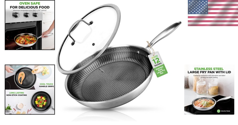 Elegant 12" Stainless Steel Frying Pan - DAKIN Non-Stick, Induction Ready ‹ › ‹ › ‹ › ‹ › ‹ › ‹ › ‹ › ‹ › ‹ › Elegant 12" Stainless Steel Frying Pan - DAKIN Non-Stick, Induction Ready Key Features: Non-Stick Coating: PFOA/PFOS-free non-stick coating, expertly crafted for effortless food release and healthy cooking. Scratch-Resistant Surface: Featuring a stunning raised-up honeycomb fire textured pattern that allows safe use of metal utensils. Cool Touch Handle Grips: Firm riveted brushed stainless steel handle that provides a comfortable grip, ensuring safety while cooking. Even Cooking All-Around: Triply composite structure ensures quick and even heat transfer for perfectly cooked meals every time. Induction Ready: Designed to perform flawlessly across gas, electric, ceramic, and induction cooktops. Oven Safe: Durable design allows for oven use up to 500°F. See-Through Lid: Comes with a tempered glass lid that seals in heat and moisture, perfect for simmering and steaming. Specifications: Max Temperature: 500° Fahrenheit (232° Celsius) Construction Material: Triply Composite Structure-Aluminum Core fused between two layers of Stainless Steel Coating Thickness: 18-25 µm with 2.5mm triply composite stainless steel Dimensions (with Lid & Handle): 21.25" x 12.4" x 4.72" inches Why Choose Our Elegant Frying Pan? Transform your culinary experience with this stunning and functional 12" Stainless Steel Frying Pan. Meticulously designed with a DAKIN non-stick coating for ease of use, this pan not only simplifies cooking but also ensures healthy meal preparation without compromising on flavor. Its elegant appearance, combined with technical prowess, is ideal for the sophisticated chef. Perfect for both novice cooks and experienced chefs, the elevated design and cool grip make this frying pan an indispensable addition to your kitchen. Induction ready and oven-safe, it seamlessly blends contemporary convenience with traditional culinary artistry. Experience the joy of cooking with a frying pan that promises exceptional results—order yours today and let your kitchen adventures begin! Shipping Free & Fast Shipping - We offer free shipping to most of the USA with a normal delivery time of 3-10 businessdays. However, due to various situations, additional delivery time (up to 3 weeks) may be required for some items. Alternative Carriers - We may use alternative carriers (e.g. USPS, FedEx, UPS, etc.) to ensure your package arrives safely and on time. Due to the use of multiple carriers, we are unable to provide a tracking number automatically. Handling Time - Orders are processed and shipped within 1-5 business days of receiving cleared payment. Shipping Restrictions - Shipping to Alaska, Hawaii, Puerto Rico, Guam, and other US territories may incur shipping charges or delivery restrictions. Please contact us before ordering, or your order can be refunded/cancelled. State Restrictions - There may be restrictions based on your state of purchase. For example, certain items may not be shipped to California due to state regulations. Contact for Tracking Updates - If you require tracking updates or have any concerns about the delivery of your order, please feel free to contact us, and we will be happy to assist you. Return Please see our ebay return policy. We do not accept return on most products. This is to avoid customers mis-using ebay returns. All sales are final. Please be sure to check the return policy listed at the top of the listing. In rare cases, we may accept returns, if the buyer pays both ways shipping and 20% restocking fee. If you are un-sure of return policy of a particular item, please ask before buying. Payment We accept all major credit cards, PayPal, and Apple Pay for your convenience. Your payment information is secure and encrypted to ensure a safe and seamless transaction. Please complete your payment within 3 days of purchase to avoid any delays in shipping. Feedback Your feedback is extremely important to us. We strive to provide the best products and customer service possible. If you are satisfied with your purchase, please take a moment to leave us a positive review. If you have any concerns or issues with your order, please contact us before leaving negative feedback. We are committed to resolving any problems and ensuring your satisfaction. Contact Us If you have any questions or concerns, please feel free to reach out to our customer support team. You can contact us through the eBay messaging system. We are available Monday to Friday, 9:00 am to 5:00 pm EST, and we will do our best to respond to your inquiry within 24 hours. Buy it now and enjoy a pleasant shopping experience! UPC: Not Set Unit Quantity: 6.6 lb Stove Type Compatibility: Electric,Gas,Induction,Ceramic Set Includes: Frying Pan,Lid Material: Stainless Steel,Tempered Glass Features: Dishwasher Safe,Non-Stick,Oven-Safe,Scratch-Resistant Type of Oven: Electric,Gas,Induction Brand: Unbranded Type: Frying Pan Surface Coating: Non-Stick Item Diameter: 12 in Color: Assorted Item Width: Not Set Item Length: Not Set MPN: Not Set Shape: Round Item Height: Not Set Item Depth: 4 in Manufacturer Warranty: Not Set Model: Not Set Number of Items in Set: One-Piece Heat Resistance: 500°F Item Weight: 6.6 lb