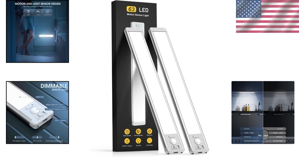 Elegant 14.7" Motion Activated Dimmable Under Counter Lighting - Rechargeable ‹ › ‹ › ‹ › ‹ › ‹ › ‹ › ‹ › ‹ › Elegant 14.7" Motion Activated Dimmable Under Counter Lighting - Rechargeable Features: Upgraded motion sensor mode activates when motion is detected within 120° and up to 10 feet in low-light conditions. Auto-off function after 20 seconds of no motion detected, eliminating the need for fumbling in the dark for switches. Always-on mode for extended tasks like reading or camping, doubling as a handy flashlight. Dimmable with 5 brightness levels to suit every ambiance, from illuminating meal prep to serving as a gentle nightlight. Rechargeable with a built-in 2200mAh battery; USB-C charging ensures hassle-free power with no need for battery replacement. Long-lasting use; up to 7-45 days on motion sensor mode and 8 hours on always-on at full brightness (depending on usage). Easy installation with built-in magnets or adhesive metal plates for versatile placement. Benefits: No more stumbling around in the dark searching for light switches. Elegantly designed to enhance any space from kitchens to closets, pantries, and more. Convenience of portable, rechargeable illumination wherever you need it. No messy wiring or outlets required, ensuring a clean, uncluttered look. Adjustable brightness for personalized lighting needs, enhancing aesthetics and functionality. Why choose our Motion Activated Dimmable Under Counter Lighting? Illuminate your life with this elegant and practical motion-activated under counter lighting solution. Designed to enhance your surroundings, our stylish lights automatically turn on as you approach, providing instant illumination without the awkwardness of seeking switches in dim environments. Whether you're brightening a kitchen for food prep or creating a soothing ambiance in your closet, these dimmable lights reflect sophistication and convenience. With long-lasting battery life and easy installation, enjoy a seamless blend of functionality and elegance in every use. Make the smart choice for effortless lighting; order your Elegant Motion Activated Dimmable Under Counter Lighting today! Shipping Free & Fast Shipping - We offer free shipping to most of the USA with a normal delivery time of 3-7 days. However, due to the current situation, additional delivery time (up to 3 weeks) may be required for some items. Alternative Carriers - We may use alternative carriers (e.g. USPS, FedEx, UPS, etc.) to ensure your package arrives safely and on time. Due to the use of multiple carriers, we are unable to provide a tracking number automatically. Handling Time - Orders are processed and shipped within 1-2 business days of receiving cleared payment. Shipping Restrictions - Shipping to Alaska, Hawaii, Puerto Rico, Guam, and other US territories may incur shipping charges or delivery restrictions. Please contact us before ordering, or your order can be refunded/cancelled. State Restrictions - There may be restrictions based on your state of purchase. For example, certain items may not be shipped to California due to state regulations. Contact for Tracking Updates - If you require tracking updates or have any concerns about the delivery of your order, please feel free to contact us, and we will be happy to assist you. Return 30-Day Hassle-Free Returns - We want you to be completely satisfied with your purchase. If you are not, you can return the item within 30 days of receiving it for a full refund or exchange. Easy Return Process - To start a return, simply contact us and we will provide you with a prepaid return shipping label and detailed instructions. Restocking Fee - There are no restocking fees for returns. However, the buyer is responsible for return shipping costs if the return is not due to a seller's error. Refund Processing Time - Refunds will be processed within 5 business days of receiving the returned item in its condition. Payment We accept all major credit cards, PayPal, and Apple Pay for your convenience. Your payment information is secure and encrypted to ensure a safe and seamless transaction. Please complete your payment within 3 days of purchase to avoid any delays in shipping. Feedback Your feedback is extremely important to us. We strive to provide the best products and customer service possible. If you are satisfied with your purchase, please take a moment to leave us a positive review. If you have any concerns or issues with your order, please contact us before leaving negative feedback. We are committed to resolving any problems and ensuring your satisfaction. Contact Us If you have any questions or concerns, please feel free to out to our customer support team. You can contact us through the eBay messaging system. We are available Monday to Friday, 9:00 am to 5:00 pm EST, and we will do our best to respond to your inquiry within 24 hours. Buy it now and enjoy a pleasant shopping experience! Lumens: 180 Power Consumption: 5 V Item Height: Under Cabinet Lighting Item Length: Under Cabinet Lighting Item Weight: 0.94 pounds Unit Quantity: 2 Room: Bathroom,Bedroom,Kitchen Material: Aluminum,Plastic Features: Dimmable,Motion Sensor,Rechargeable Mounting: Under Cabinet,Under Cabinet Mount Light Color: Cool White Light Direction: Downwards Type: Under Cabinet Lights Style: Modern Sensor Type: Motion Color: White Light Power Source: Rechargeable Lighting Technology: LED Finish: Polished Shade Shape: Rectangular Bulb Shape Code: E26 Voltage: 5 V ..