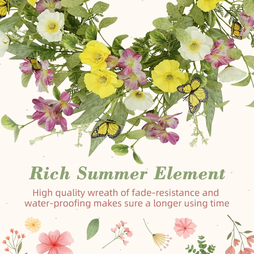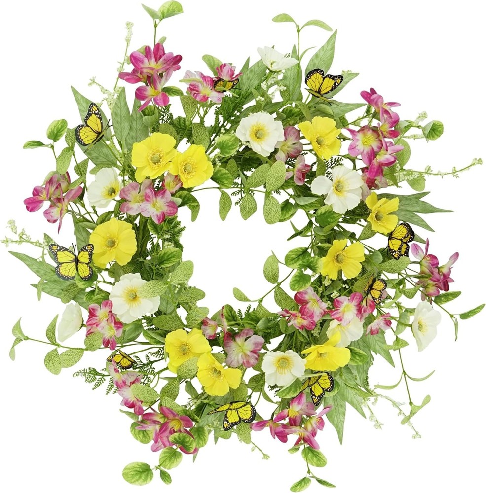 Elegant 18-Inch Spring Summer Wreath with Daisies & Butterflies for Every Door ‹ › ‹ › ‹ › ‹ › ‹ › ‹ › ‹ › ‹ › ‹ › Elegant 18-Inch Spring Summer Wreath with Daisies & Butterflies Transform your home into a vibrant oasis with this stunning Spring Summer Wreath adorned with beautiful daisies and whimsical butterflies. Measuring an ideal 18 inches in diameter, this wreath is perfectly sized for adorning your front door, creating an inviting entrance while celebrating the beauty of each season. Features: Realistic Design: Surrounded by lush eucalyptus leaves, colorful daisies, and delightful butterflies, this wreath exudes a lifelike charm that enchants throughout the . Versatile Applications: Use it to embellish your front door, windows, or as a vibrant wall decoration in your living room, fireplace, or kitchen. Easy Maintenance: Handcrafted from high-quality silk and durable iron coils, this artificial wreath is designed to endure. It requires no watering, trimming, or special maintenance, ensuring long-lasting beauty. Wreath Instructions: Arriving in a secure box to prevent damage during transport, simply unfold and shape it for a breathtaking full appearance. Why Choose Our Elegant Wreath? Step into a world of seasonal charm with this exquisite wreath that brings a fresh breath of spring and summer into your home. With its exquisite craftsmanship and vibrant colors, it’s not just a decorative piece; it’s a statement of elegance and personality. Perfect for creating a warm welcome for your guests or as a delightful gift for loved ones, this wreath enhances your living space with natural beauty and joy. Indulge in the luxury of effortless decoration—order your Elegant Spring Summer Wreath today and let your home blossom with style! Shipping Free & Fast Shipping - We offer free shipping to most of the USA with a normal delivery time of 3-7 days. However, due to the current situation, additional delivery time (up to 3 weeks) may be required for some items. Alternative Carriers - We may use alternative carriers (e.g. USPS, FedEx, UPS, etc.) to ensure your package arrives safely and on time. Due to the use of multiple carriers, we are unable to provide a tracking number automatically. Handling Time - Orders are processed and shipped within 1-2 business days of receiving cleared payment. Shipping Restrictions - Shipping to Alaska, Hawaii, Puerto Rico, Guam, and other US territories may incur shipping charges or delivery restrictions. Please contact us before ordering, or your order can be refunded/cancelled. State Restrictions - There may be restrictions based on your state of purchase. For example, certain items may not be shipped to California due to state regulations. Contact for Tracking Updates - If you require tracking updates or have any concerns about the delivery of your order, please feel free to contact us, and we will be happy to assist you. Return 30-Day Hassle-Free Returns - We want you to be completely satisfied with your purchase. If you are not, you can return the item within 30 days of receiving it for a full refund or exchange. Easy Return Process - To start a return, simply contact us and we will provide you with a prepaid return shipping label and detailed instructions. Restocking Fee - There are no restocking fees for returns. However, the buyer is responsible for return shipping costs if the return is not due to a seller's error. Refund Processing Time - Refunds will be processed within 5 business days of receiving the returned item in its condition. Payment We accept all major credit cards, PayPal, and Apple Pay for your convenience. Your payment information is secure and encrypted to ensure a safe and seamless transaction. Please complete your payment within 3 days of purchase to avoid any delays in shipping. Feedback Your feedback is extremely important to us. We strive to provide the best products and customer service possible. If you are satisfied with your purchase, please take a moment to leave us a positive review. If you have any concerns or issues with your order, please contact us before leaving negative feedback. We are committed to resolving any problems and ensuring your satisfaction. Contact Us If you have any questions or concerns, please feel free to out to our customer support team. You can contact us through the eBay messaging system. We are available Monday to Friday, 9:00 am to 5:00 pm EST, and we will do our best to respond to your inquiry within 24 hours. Buy it now and enjoy a pleasant shopping experience! Item Width: Spring Summer Wreaths Unit Quantity: 18 in Material: Silk,Iron Common Name: Daisy,Butterfly Product: Spring Summer Wreaths Form: Wreath Occasion: Casual Color: Yellow & Green Type: Wreath Artificial/Fresh: Artificial Size: 18 in Item Height: 20 Inches Number in Pack: 1 Unit Type: Unit