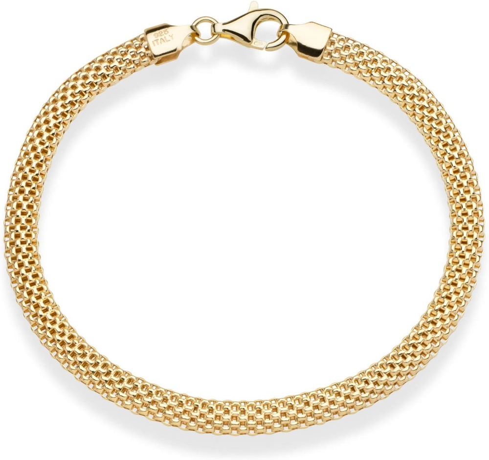 Store New Arrivals Add to Favorite View Feedback Contact Fast deliveries to the customer's home Quality customer service John Make the customers happy! 18K Gold over Sterling Silver Italian 5Mm Mesh Link Chain Bracelet for Women, 925 Made in Italy Description Product Description Miabella brings you the finest in modern and classic design. Crafted by our finest Italian artisans, this classic 5mm Mesh bracelet in luminous sterling silver pairs perfectly to any look. Wear alone or layer with others for a more modern look. Made in Italy MADE IN ITALY - Italian jewelry is much more than a fashionable and elegant choice. Its rich history formed a people who strongly value creativity and passion. With a high demand for luxury Italian jewelry, early artisans paved the way for the superior design and quality craftsmanship still used today. High quality standards for fine jewelry in Italy are unmatched by any other country in the world. Style Length 7 Inches (women's small) Metal stamp 925 Chain Mesh Chain Gem Type no gemstone Material Sterling Silver Metal Sterling Silver Model number US_JWEY_B07F42X2HP Length 7 inches Department womens Clasp Lobster Claw ABOUT US We offer the best prices around on high quality products. Our E-store includes media such as books, movies, music and games while offering electronics, toys, sporting apparel, clothing, tools, general home, garden items and more. SHIPPING We are always working hard to ensure your package arrives as soon as possible. Please understand that some factors like weather, high postal traffic, and the performance of shipping companies are outside of our control. We offer free shipping to the lower 48 states and ship within 2 business days of payment, usually sooner. We do not accept P.O. Boxes. Please provide a physical address. For shipping outside of the continental USA, we only use eBay's Global Shipping Program. The item is shipped to KY and then sent to the rest of the world. International customers are responsible for all duties and taxes. Continue to 'check out' to calculate costs for shipping the item to your country. Messages regarding eBay's Global Shipping Program MUST be directed at eBay EXCLUSIVELY. RETURNS We offer a 30-Day Return Policy on items in which you are not completely satisfied with. You have the option of a full-refund or an exchange of the item. No returns are available on items shipped outside of the USA PAYMENT We accept PayPal. CONTACT US This page content is yet to come Please ad us to your favorite seller and visit again later Thank You CUSTOMER SATISFACTION We try our very best to make sure every customer is completely satisfied. If there's a problem, message us! We're happy to help. WE ACCEPT