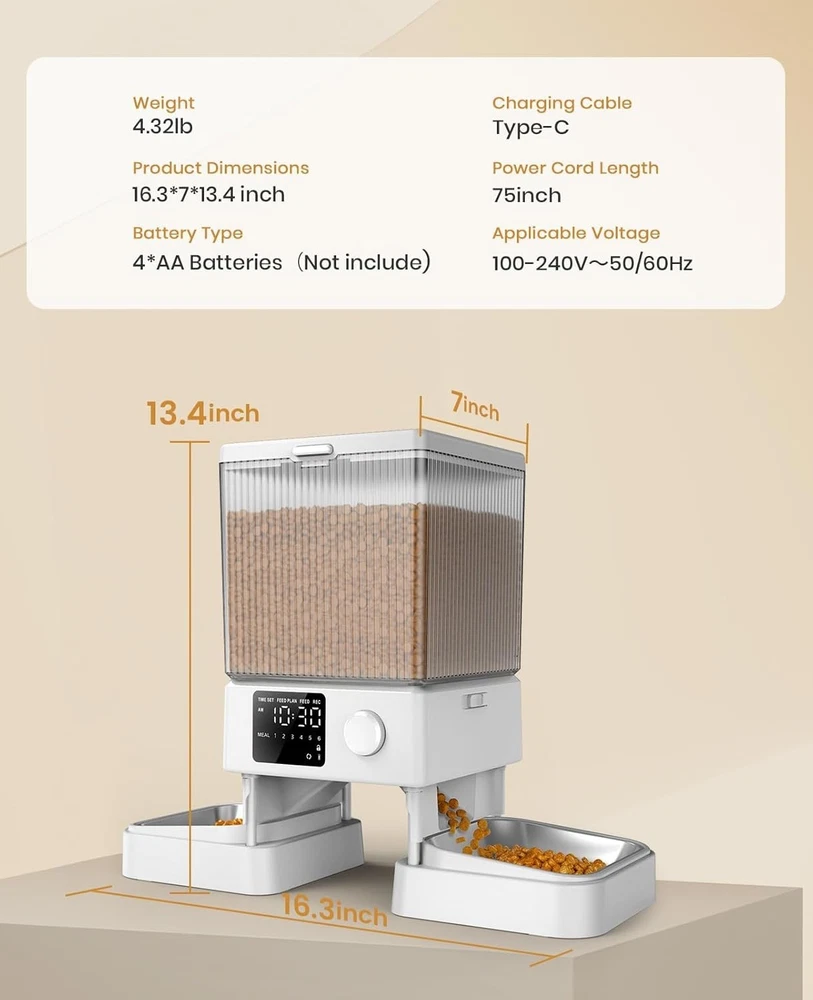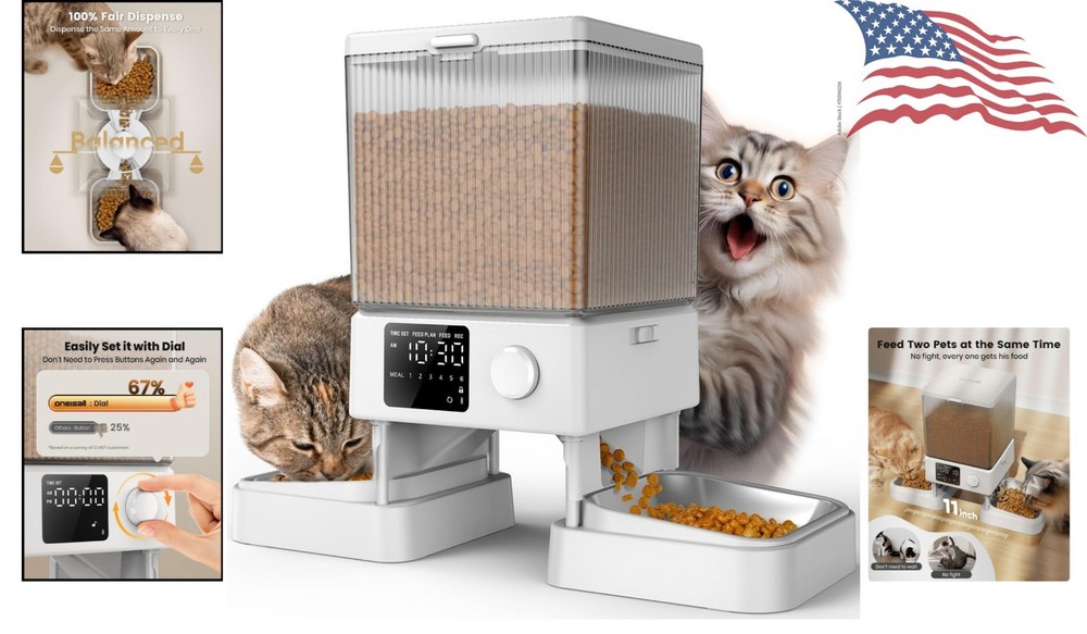 Elegant 20 Cups Automatic Cat Food Dispenser – Simplify Feeding for Two Cats ‹ › ‹ › ‹ › ‹ › ‹ › ‹ › ‹ › ‹ › ‹ › ‹ › ‹ › Elegant 20 Cups Automatic Cat Food Dispenser Introducing the ultimate solution for feline feeding that brings convenience and harmony to your home. Designed with simplicity in mind, this state-of-the-art automated cat food dispenser ensures both of your beloved cats receive their meals effortlessly and peacefully. Key Features: Easy to Set Up: The intuitive dial makes programming a breeze, allowing anyone to control feeding schedules with ease. Peaceful Mealtimes for Two: Thoughtfully designed with bowls spaced 11 inches apart, providing each cat with their own comfortable dining area, eliminating the stress of queuing or conflicts. Generous Capacity: With a massive 5L (20 cups) capacity, this feeder can sustain two adult cats for up to ten days, making it perfect for long weekends or vacations. Voice Recorder: Personalize your mealtime experience with a 10-second recorded message that plays before each meal, welcoming your pets to dinner. Precise Portion Control: Each portion dispensed equals approximately 10 grams (1/12 cup), tailored to meet your cats’ dietary needs. Serve up to 6 meals a day for optimal feeding management. Stay-Fresh Technology: Multi-layer sealing combined with desiccants prolongs the freshness and crunchiness of your cat's food, while the food-grade stainless steel bowl ensures a hygienic dining experience that is easy to clean and dishwasher-safe. Why Choose Our Automatic Cat Food Dispenser? Transform feeding time into a stress-free and enjoyable experience for both you and your cats. Crafted with elegance and functionality, this automatic feeder not only caters to your cats’ needs but also adds a touch of sophistication to your home. Ideal for busy pet parents, its advanced features ensure your pets are cared for even when you’re away. Elevate your pet care routine with our Elegant Automatic Cat Food Dispenser—order yours today and provide your cats with the considerate feeding they deserve! Shipping Free & Fast Shipping - We offer free shipping to most of the USA with a normal delivery time of 3-7 days. However, due to the current situation, additional delivery time (up to 3 weeks) may be required for some items. Alternative Carriers - We may use alternative carriers (e.g. USPS, FedEx, UPS, etc.) to ensure your package arrives safely and on time. Due to the use of multiple carriers, we are unable to provide a tracking number automatically. Handling Time - Orders are processed and shipped within 1-2 business days of receiving cleared payment. Shipping Restrictions - Shipping to Alaska, Hawaii, Puerto Rico, Guam, and other US territories may incur shipping charges or delivery restrictions. Please contact us before ordering, or your order can be refunded/cancelled. State Restrictions - There may be restrictions based on your state of purchase. For example, certain items may not be shipped to California due to state regulations. Contact for Tracking Updates - If you require tracking updates or have any concerns about the delivery of your order, please feel free to contact us, and we will be happy to assist you. Return 30-Day Hassle-Free Returns - We want you to be completely satisfied with your purchase. If you are not, you can return the item within 30 days of receiving it for a full refund or exchange. Easy Return Process - To start a return, simply contact us and we will provide you with a prepaid return shipping label and detailed instructions. Restocking Fee - There are no restocking fees for returns. However, the buyer is responsible for return shipping costs if the return is not due to a seller's error. Refund Processing Time - Refunds will be processed within 5 business days of receiving the returned item in its condition. Payment We accept all major credit cards, PayPal, and Apple Pay for your convenience. Your payment information is secure and encrypted to ensure a safe and seamless transaction. Please complete your payment within 3 days of purchase to avoid any delays in shipping. Feedback Your feedback is extremely important to us. We strive to provide the best products and customer service possible. If you are satisfied with your purchase, please take a moment to leave us a positive review. If you have any concerns or issues with your order, please contact us before leaving negative feedback. We are committed to resolving any problems and ensuring your satisfaction. Contact Us If you have any questions or concerns, please feel free to out to our customer support team. You can contact us through the eBay messaging system. We are available Monday to Friday, 9:00 am to 5:00 pm EST, and we will do our best to respond to your inquiry within 24 hours. Buy it now and enjoy a pleasant shopping experience! Model: Automatic Cat Feeder MPN: Automatic_Cat_Feeder Unit Quantity: 1 Features: Dishwasher Safe,Electronic,Portable,Programmable,Easy to Set Up,Peaceful Mealtime for 2 Cats,10 s Voice Recorder,Precise Portion Control,Stay-Fresh Tech Type: Automatic Feeder Material: Stainless Steel Color: White Number of Bowls: 2 Life Stage: Adult