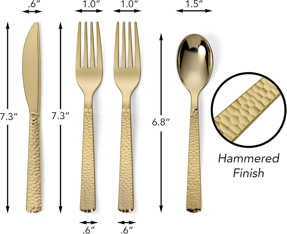 Sophisticated 300-Piece Gold Plastic Flatware - Perfect for Special Occasions ‹ › ‹ › ‹ › ‹ › ‹ › ‹ › ‹ › ‹ › ‹ › ‹ › ‹ › Sophisticated 300-Piece Gold Plastic Flatware Perfect for Special Occasions Chic Plastic Gold Flatware Add a real sense of charm with a 300-piece gold plastic cutlery set. Heavy-duty plastic utensils that elevate any celebration. Brings an extra special touch to your table settings. Sleek & Stylish Design The look of real gold flatware without the hefty price tag. Hammered finish that enhances elegance and style. A timeless design that won't go out of fashion. For Special Occasions Elegant cutlery suitable for weddings, anniversaries, parties, and family gatherings. Perfect for all holidays or even just a cozy dinner at home. Hassle-Free Cleanup Eliminate the worry of tarnished metal flatware. Enjoy fine metallic aesthetics without the cleanup hassles. Toss them away after your event, saving valuable time. Durable & Safe Constructed from high-quality BPA-free plastic, ensuring safety and durability. Recyclable, merging convenience with eco-friendliness. Sturdy design resistant to breakage, bending, or snapping; knives effortlessly cut through steak. Why Choose Our Gold Plastic Flatware? Elevate your dining experience with our sophisticated 300-Piece Gold Plastic Flatware. Whether it’s a lavish wedding or an intimate gathering at home, this chic and elegant cutlery set will transform your table into a stunning display. Enjoy peace of mind knowing that you can have the luxurious look of gold flatware without the worry of cleanup. With superior strength and stylish design, it’s the perfect choice for those who cherish beauty and convenience. Indulge in elegance and make every meal a special occasion—order your 300-Piece Gold Plastic Flatware set today! Shipping Free & Fast Shipping - We offer free shipping to most of the USA with a normal delivery time of 3-7 days. However, due to the current situation, additional delivery time (up to 3 weeks) may be required for some items. Alternative Carriers - We may use alternative carriers (e.g. USPS, FedEx, UPS, etc.) to ensure your package arrives safely and on time. Due to the use of multiple carriers, we are unable to provide a tracking number automatically. Handling Time - Orders are processed and shipped within 1-2 business days of receiving cleared payment. Shipping Restrictions - Shipping to Alaska, Hawaii, Puerto Rico, Guam, and other US territories may incur shipping charges or delivery restrictions. Please contact us before ordering, or your order can be refunded/cancelled. State Restrictions - There may be restrictions based on your state of purchase. For example, certain items may not be shipped to California due to state regulations. Contact for Tracking Updates - If you require tracking updates or have any concerns about the delivery of your order, please feel free to contact us, and we will be happy to assist you. Return 30-Day Hassle-Free Returns - We want you to be completely satisfied with your purchase. If you are not, you can return the item within 30 days of receiving it for a full refund or exchange. Easy Return Process - To start a return, simply contact us and we will provide you with a prepaid return shipping label and detailed instructions. Restocking Fee - There are no restocking fees for returns. However, the buyer is responsible for return shipping costs if the return is not due to a seller's error. Refund Processing Time - Refunds will be processed within 5 business days of receiving the returned item in its original condition. Payment We accept all major credit cards, PayPal, and Apple Pay for your convenience. Your payment information is secure and encrypted to ensure a safe and seamless transaction. Please complete your payment within 3 days of purchase to avoid any delays in shipping. Feedback Your feedback is extremely important to us. We strive to provide the best products and customer service possible. If you are satisfied with your purchase, please take a moment to leave us a positive review. If you have any concerns or issues with your order, please contact us before leaving negative feedback. We are committed to resolving any problems and ensuring your satisfaction. Contact Us If you have any questions or concerns, please feel free to reach out to our customer support team. You can contact us through the eBay messaging system. We are available Monday to Friday, 9:00 am to 5:00 pm EST, and we will do our best to respond to your inquiry within 24 hours. Buy it now and enjoy a pleasant shopping experience! UPC: Not Set Unit Quantity: 300 Material: Plastic Character: Not Set Features: Decorative,Disposable,Heavy Duty,Non-Slip Grip Brand: Unbranded Type: Cutlery Occasion: All Occasions Number of Items: 300 Theme: Not Set Color: Gold Character Family: Not Set Production Technique: Not Set MPN: Not Set Pattern: Not Set Department: Adults Country/Region of Manufacture: Not Set Product Line: Not Set Style: Modern Origin: Not Set Production Style: Not Set Unit Type: lb Vintage: Not Set Antique: Not Set Personalize: Not Set