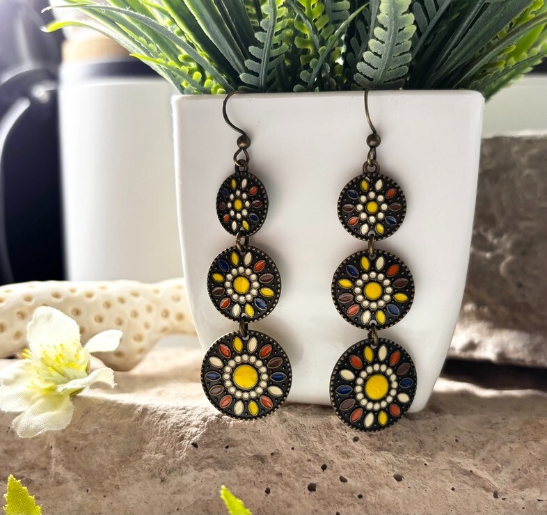 These Bohemian-themed earrings are designed to add a stylish touch to any outfit.