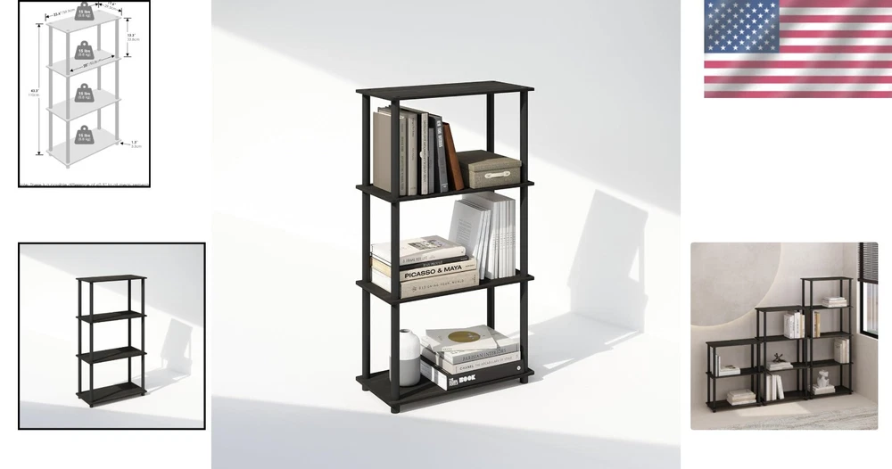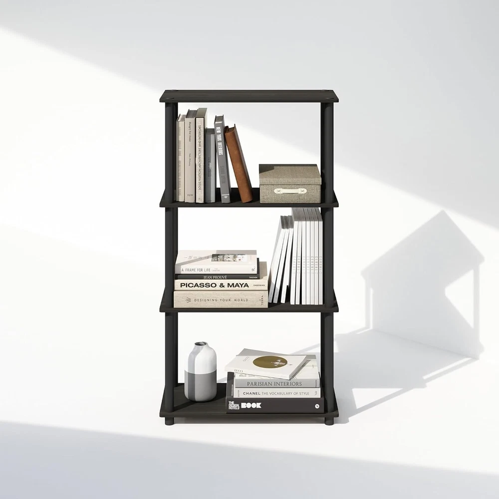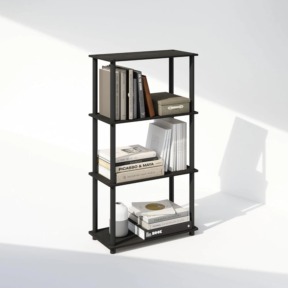 Elegant 4-Tier Espresso/Black Multipurpose Bookshelf – Space-Saving & Stylish