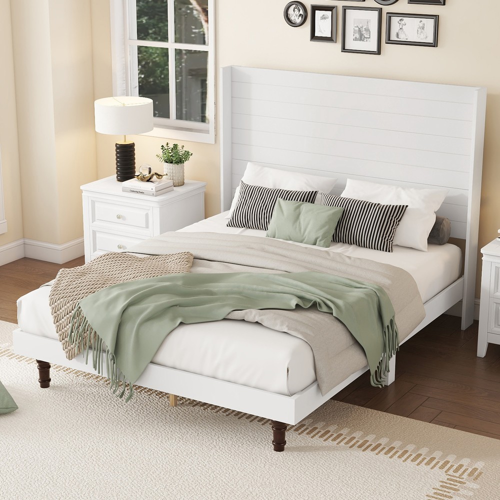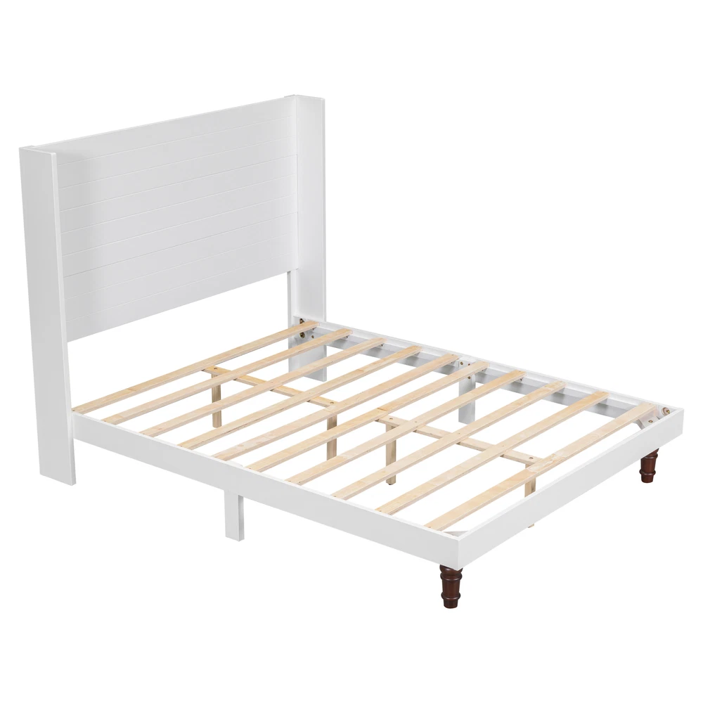 Stylish Bed Frame,54 "High Headboard Bed Queen Size White Bed Frame for Bedroom Features Stylish High Headboard Design: The 54-inch high headboard not only adds elegance and sophistication to your bedroom decor, but also provides extra back support, making it ideal for reading or relaxing in bed. High quality materials: Constructed of high quality MDF, plywood, rubber wood and pine, this bed frame ensures durability and long-lasting support for a restful night's sleep. Moreover, the load-bearing capacity of this bed is reasonable and practical, and the load bearing capacity of the bed is 800 lbs. Variety of options: With two colors and two sizes to choose from, the high headboard bed can accommodate a variety of room sizes and personal preferences, making it perfect for any space. Minimalist Aesthetic:With its simple, clean design, the High Headboard bed blends effortlessly with modern and traditional decor to enhance the overall ambiance of your bedroom. Description Notice 1.Real Product's Color may be a little different from the image due to the lighting or monitor's display. 2.Manual measurement has been used, there may be some reasonable error. Description Color White Material MDF, plywood, rubber wood and pine Size Queen Product Dimension 82.5"L x 64.5"W x 54"H Weight Capacity 800 lbs Numbers of Package 1 Assembly Required Yes