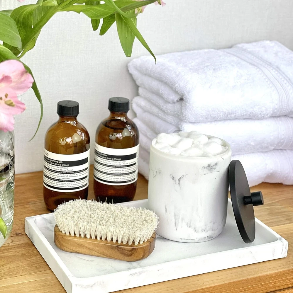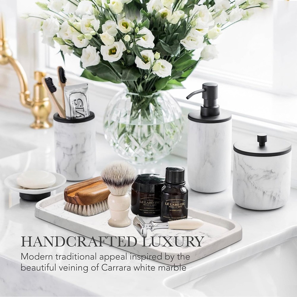 This bathroom set instantly upgraded my space—the matte black and marble resin combo looks so chic and high-end! The pieces feel sturdy, well-made, and add a touch of luxury. Perfect as a gift or to treat yourself. Love how everything matches seamlessly!