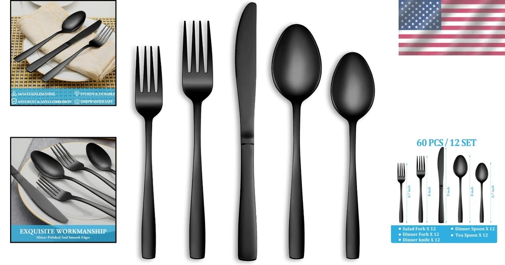 Elegant 60-Pc Utensil Set with Mirror Polish and Stain Resistance - Ideal for 12 ‹ › ‹ › ‹ › ‹ › ‹ › ‹ › ‹ › ‹ › ‹ › Elegant 60-Pc Utensil Set with Mirror Polish and Stain Resistance - Ideal for 12 Product Details: 60 PIECES BLACK SILVERWARE SET FOR 12: 12 Dinner Forks 12 Dinner Spoons 12 Dinner Knives 12 Salad/Dessert Forks 12 Dessert/Tea Spoons Ideal for families or restaurants, perfect for daily use or special occasions. Features: Premium high-quality food grade stainless steel for durability. Rust-proof, corrosion resistant, non-toxic, and BPA free. No metal aftertaste for a pleasurable dining experience. Unique black design enhances presentation, reminiscent of luxury dining. Crafted with vacuum plating technology to prevent fading or cracking. Ergonomically designed handles for comfort and balance during use. Smooth edges ensure safety and protect against scratches. Care Instructions: Hand wash is recommended; dry before storing. Avoid harsh cleaning tools to maintain quality. Why Choose Our Elegant Utensil Set? Transform everyday dining into an elegant affair with our 60-Pc Utensil Set. The unique black finish sets it apart from the ordinary, creating a luxurious atmosphere that is sure to impress your guests. Constructed from premium stainless steel, this flatware set is not only stylish, but also durable and resistant to rust and corrosion, ensuring it will be a staple in your dining collection for years to come. With perfect balance and ergonomic handles, this set provides unmatched comfort, even during prolonged use. Elevate your dining experience—be it casual family meals or sophisticated gatherings—by investing in a flatware set that embodies elegance and grace. Order now and make every meal a celebration! Shipping Free & Fast Shipping - We offer free shipping to most of the USA with a normal delivery time of 3-7 days. However, due to the current situation, additional delivery time (up to 3 weeks) may be required for some items. Alternative Carriers - We may use alternative carriers (e.g. USPS, FedEx, UPS, etc.) to ensure your package arrives safely and on time. Due to the use of multiple carriers, we are unable to provide a tracking number automatically. Handling Time - Orders are processed and shipped within 1-2 business days of receiving cleared payment. Shipping Restrictions - Shipping to Alaska, Hawaii, Puerto Rico, Guam, and other US territories may incur shipping charges or delivery restrictions. Please contact us before ordering, or your order can be refunded/cancelled. State Restrictions - There may be restrictions based on your state of purchase. For example, certain items may not be shipped to California due to state regulations. Contact for Tracking Updates - If you require tracking updates or have any concerns about the delivery of your order, please feel free to contact us, and we will be happy to assist you. Return Please see our eBay Return Policy. Thank you. Payment We accept all major credit cards, PayPal, and Apple Pay for your convenience. Your payment information is secure and encrypted to ensure a safe and seamless transaction. Please complete your payment within 3 days of purchase to avoid any delays in shipping. Feedback Your feedback is extremely important to us. We strive to provide the best products and customer service possible. If you are satisfied with your purchase, please take a moment to leave us a positive review. If you have any concerns or issues with your order, please contact us before leaving negative feedback. We are committed to resolving any problems and ensuring your satisfaction. Contact Us If you have any questions or concerns, please feel free to reach out to our customer support team. You can contact us through the eBay messaging system. We are available Monday to Friday, 9:00 am to 5:00 pm EST, and we will do our best to respond to your inquiry within 24 hours. Thank you for supporting our small family business! UPC: Not Set Unit Quantity: 60 Material: Stainless Steel Set Includes: Serving Set,Dinner Fork,Dinner Knife,Dinner Spoon,Salad Fork,Dessert Spoon,Teaspoon Department: Kids,Teens,Adults,Unisex Character: Not Set Features: BPA Free,Dishwasher Safe,Heavy Duty,Rust Resistant Type: Set Brand: Unbranded Handle Material: Stainless Steel Country/Region of Manufacture: Not Set Color: Black Finish: Polished Style: Tableware Handle Pattern: Not Set MPN: Not Set Occasion: Not Set Wood Tone: Not Set Character Family: Not Set Item Length: Not Set Item Weight: 5.57 pounds Model: Not Set Manufacturer Warranty: Not Set Unit Type: lb Care Instructions: Hand Wash Only