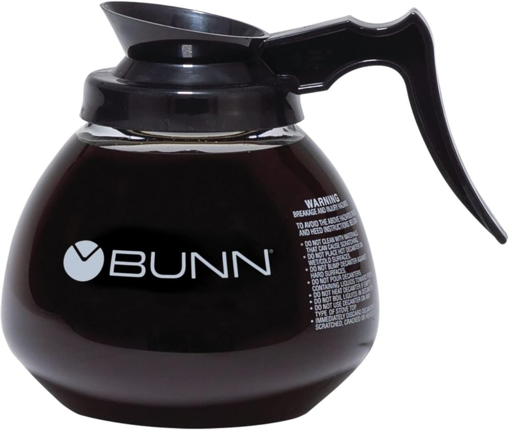 Brand: Unbranded Global Trade Identification Number: 00735343226199 Color: Black Finish: Shiny UPC: Does Not Apply Number in Pack: 1 Compatible Brand: Bunn Coffee Decanter Power Source: Wall Plug-In Product Dimensions: 7"w X 8"h With Lid: Yes Suitable For: Bunn Coffee Decanter Features: Easy to Clean, Shatter-resistant, Laboratory-grade, Stress-free glass, Precise design mold, Ergonomic handle, Balanced design, Temperature adjustments Shape: Square Capacity: 1.9 liters Item Weight: 15 oz Included Components: Decanter Compatible Model: BUNN Coffee Makers Type: Decanter Material: Glass Item Depth: 7 in gtin13: Does Not Apply