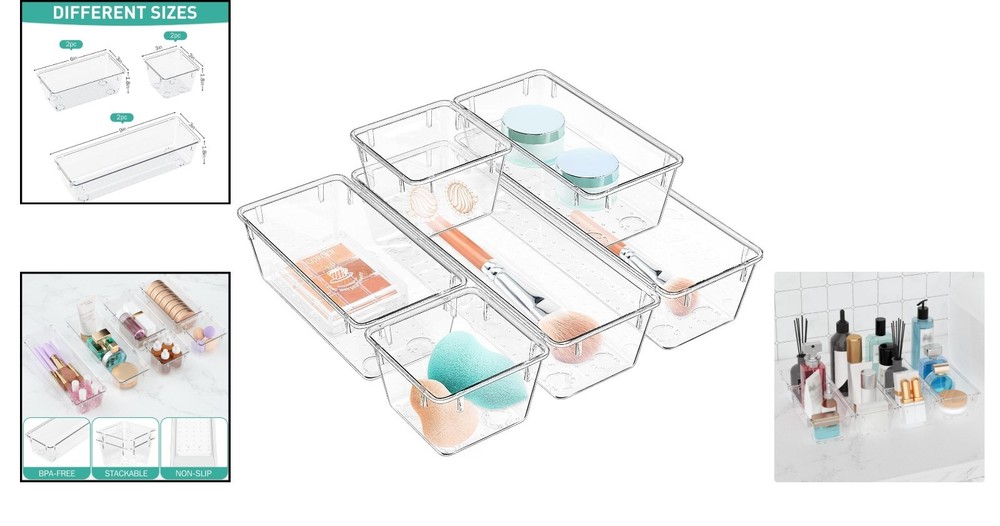 Elegant 6-Piece Clear Storage Tray Set - Ideal for Makeup & Office Supplies ‹ › ‹ › ‹ › ‹ › ‹ › ‹ › ‹ › ‹ › Elegant 6-Piece Clear Storage Tray Set Discover the perfect fusion of style and functionality with our Elegant 6-Piece Clear Storage Tray Set, thoughtfully designed to elevate your organizational experience. This exquisite set is ideal for makeup aficionados as well as professionals looking to maintain an orderly workspace. Product Features: Material: Crafted from transparent glossy material that not only adds elegance but ensures safety in use. Three Combinations of Different Sizes: This set includes 6 storage bins in three versatile sizes: 2 bins measuring 9 x 3 x 1.8 inches 2 bins measuring 6 x 3 x 1.8 inches 2 bins measuring 3 x 3 x 1.8 inches Stackable Storage: Maximize your space with our stackable storage bins, making it easy to arrange them according to your needs. Non-Slip Design: Equipped with a non-slip tread at the bottom, these organizers stay securely in place, ensuring a seamless experience when opening and closing drawers. Multiple Storage Options: Perfectly designed to organize a variety of items including makeup, toothpaste, jewelry, stationery, craft supplies, nail polish, bathroom essentials, kitchen items, office supplies, and much more. Why Choose Our Elegant Storage Tray Set? Transform any cluttered space into a harmonious sanctuary with our Elegant 6-Piece Clear Storage Tray Set. The clarity of the bins allows you to view and access your belongings effortlessly, enhancing both your beauty routine and your workspace. Enjoy a blend of sophisticated design and practical utility that will inspire you every day! Don't wait to create the organized space of your dreams — order our Elegant 6-Piece Clear Storage Tray Set today and indulge in effortless elegance! Shipping Free & Fast Shipping - We offer free shipping to most of the USA with a normal delivery time of 3-7 days. However, due to the current situation, additional delivery time (up to 3 weeks) may be required for some items. Alternative Carriers - We may use alternative carriers (e.g. USPS, FedEx, UPS, etc.) to ensure your package arrives safely and on time. Due to the use of multiple carriers, we are unable to provide a tracking number automatically. Handling Time - Orders are processed and shipped within 1-2 business days of receiving cleared payment. Shipping Restrictions - Shipping to Alaska, Hawaii, Puerto Rico, Guam, and other US territories may incur shipping charges or delivery restrictions. Please contact us before ordering, or your order can be refunded/cancelled. State Restrictions - There may be restrictions based on your state of purchase. For example, certain items may not be shipped to California due to state regulations. Contact for Tracking Updates - If you require tracking updates or have any concerns about the delivery of your order, please feel free to contact us, and we will be happy to assist you. Return 30-Day Hassle-Free Returns - We want you to be completely satisfied with your purchase. If you are not, you can return the item within 30 days of receiving it for a full refund or exchange. Easy Return Process - To start a return, simply contact us and we will provide you with a prepaid return shipping label and detailed instructions. Restocking Fee - There are no restocking fees for returns. However, the buyer is responsible for return shipping costs if the return is not due to a seller's error. Refund Processing Time - Refunds will be processed within 5 business days of receiving the returned item in its condition. Payment We accept all major credit cards, PayPal, and Apple Pay for your convenience. Your payment information is secure and encrypted to ensure a safe and seamless transaction. Please complete your payment within 3 days of purchase to avoid any delays in shipping. Feedback Your feedback is extremely important to us. We strive to provide the best products and customer service possible. If you are satisfied with your purchase, please take a moment to leave us a positive review. If you have any concerns or issues with your order, please contact us before leaving negative feedback. We are committed to resolving any problems and ensuring your satisfaction. Contact Us If you have any questions or concerns, please feel free to out to our customer support team. You can contact us through the eBay messaging system. We are available Monday to Friday, 9:00 am to 5:00 pm EST, and we will do our best to respond to your inquiry within 24 hours. Buy it now and enjoy a pleasant shopping experience! Unit Quantity: 6 Material: Acrylic,Plastic Features: Stackable,Non-Slip Design Mounting: Free Standing Item Height: Drawer Organizer Set Item Length: Drawer Organizer Set Item Width: Drawer Organizer Set Type: Drawer Box Color: Clear Size: Large Item Weight: Less Than 2 lb Capacity: 40 Quarts & Below Number of Items in Set: Six-Piece Item Depth: 3 in Number in Pack: 6 Number of Compartments: 3 Shape: Rectangle Style: Modern Finish: Glossy