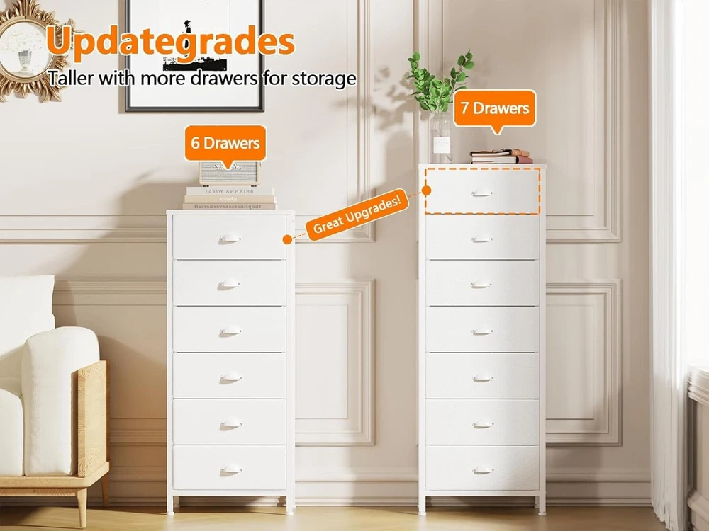 Elegant Tall White Dresser with 7 Drawers - Versatile Storage Solution ‹ › ‹ › ‹ › ‹ › ‹ › ‹ › ‹ › ‹ › ‹ › ‹ › ‹ › Elegant Tall White Dresser with 7 Drawers Versatile Storage Solution Features: 7 spacious white drawers providing ample storage for all essentials and belongings. Thick wooden top that is hard-wearing and waterproof, perfect for holding lamps, alarm clocks, vases, and other decorative items. Exquisite craftsmanship with a combination of steel and high-grade MDF wood, ensuring a solid structure. Foldable white fabric drawers are lightweight and easy to navigate. Sturdy X-shaped crossbar on the back enhances durability and long service life. Adjustable feet adapt to uneven surfaces for enhanced stability. Includes an anti-tip kit for added safety. Easy assembly with all necessary accessories and a clear step-by-step manual included. Benefits: Sufficient storage to organize clothes, toys, socks, and more, keeping your space tidy and clutter-free. Versatile design that fits seamlessly in various settings such as bedrooms, living rooms, offices, and nurseries. Stylish white finish complements any décor, adding a touch of elegance to your home. Lightweight drawers allow for effortless reorganization and accessibility. Durable materials ensure this dresser remains a staple in your home for to come. Why choose our Elegant Tall White Dresser? Experience sophistication and functionality with our Elegant Tall White Dresser, featuring 7 generous drawers that provide the perfect organization solution for any room. Crafted with exquisite workmanship and durable materials, this dresser elevates your space with its stylish design and practicality. Whether used in a bedroom, nursery, or office, its versatility allows you to maximize your storage while enhancing your decor. Transform your living environment with a statement piece that is both elegant and functional. Order your Elegant Tall White Dresser today and discover the perfect blend of style and storage! Shipping Free & Fast Shipping - We offer free shipping to most of the USA with a normal delivery time of 3-7 days. However, due to the current situation, additional delivery time (up to 3 weeks) may be required for some items. Alternative Carriers - We may use alternative carriers (e.g. USPS, FedEx, UPS, etc.) to ensure your package arrives safely and on time. Due to the use of multiple carriers, we are unable to provide a tracking number automatically. Handling Time - Orders are processed and shipped within 1-2 business days of receiving cleared payment. Shipping Restrictions - Shipping to Alaska, Hawaii, Puerto Rico, Guam, and other US territories may incur shipping charges or delivery restrictions. Please contact us before ordering, or your order can be refunded/cancelled. State Restrictions - There may be restrictions based on your state of purchase. For example, certain items may not be shipped to California due to state regulations. Contact for Tracking Updates - If you require tracking updates or have any concerns about the delivery of your order, please feel free to contact us, and we will be happy to assist you. Return 30-Day Hassle-Free Returns - We want you to be completely satisfied with your purchase. If you are not, you can return the item within 30 days of receiving it for a full refund or exchange. Easy Return Process - To start a return, simply contact us and we will provide you with a prepaid return shipping label and detailed instructions. Restocking Fee - There are no restocking fees for returns. However, the buyer is responsible for return shipping costs if the return is not due to a seller's error. Refund Processing Time - Refunds will be processed within 5 business days of receiving the returned item in its condition. Payment We accept all major credit cards, PayPal, and Apple Pay for your convenience. Your payment information is secure and encrypted to ensure a safe and seamless transaction. Please complete your payment within 3 days of purchase to avoid any delays in shipping. Feedback Your feedback is extremely important to us. We strive to provide the best products and customer service possible. If you are satisfied with your purchase, please take a moment to leave us a positive review. If you have any concerns or issues with your order, please contact us before leaving negative feedback. We are committed to resolving any problems and ensuring your satisfaction. Contact Us If you have any questions or concerns, please feel free to out to our customer support team. You can contact us through the eBay messaging system. We are available Monday to Friday, 9:00 am to 5:00 pm EST, and we will do our best to respond to your inquiry within 24 hours. Buy it now and enjoy a pleasant shopping experience! Unit Quantity: 18.1 Room: Bedroom,Entryway,Home Office/Study,Living Room,Hallyway,Dressing Room,Playroom Material: MDF/Chipboard,Metal,Wood Department: Unisex Baby & Toddler,Kids,Teens,Adults Mounting: Free Standing Features: Adjustable Feet Required Tools: No Tools Required Care Instructions: Easy Care Item Height: Tall Dresser Item Length: Tall Dresser Item Width: Tall Dresser Number of Drawers: 7 Type: Dresser Color: White Handle Material: Plastic Handle Finish: White Style: Contemporary/Modern Item Depth: 11.42 in Item Weight: 18.1 lb Finish: Lacquered Wood Tone: White Shape: Rectangular Distance from Floor to Bottom: Less Than 3 in Door Mechanism: Hinge Era: 21st Century (2000-now) Maximum Weight Capacity: 50 lb Handle Type: Door Handle Unit Type: lb