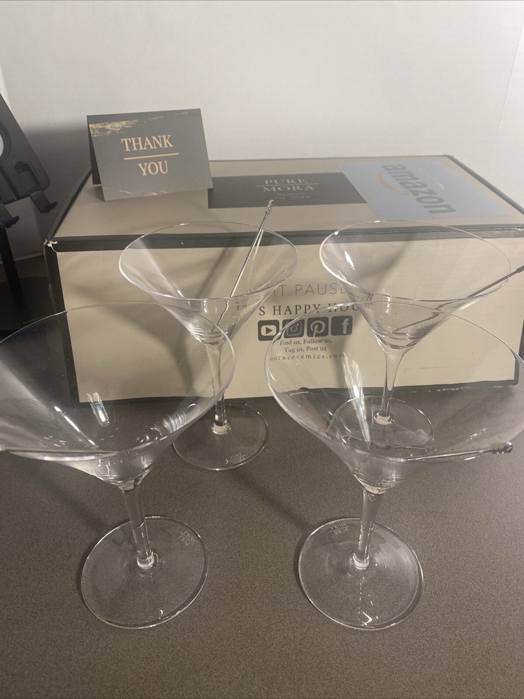 Brand: PURE MORA Martini Glasses Set of 4- 7oz Handblown Premium Crystal Glass for Cockails, Martinis, Home Bar, Cosmos, Gimlet, Parties, Etc - Modern Classic Cocktail Glassware, Gift for Him/Her New item never used Box opened to ensure all pieces were included and in new condition.