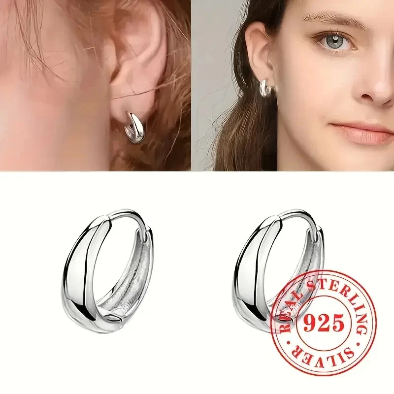 Elegant 925 Sterling Silvery Hoop Earrings - Hypoallergenic, Fashionable Jewelry for Women, Perfect for Casual Attire & Special Occasions.