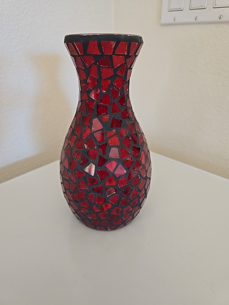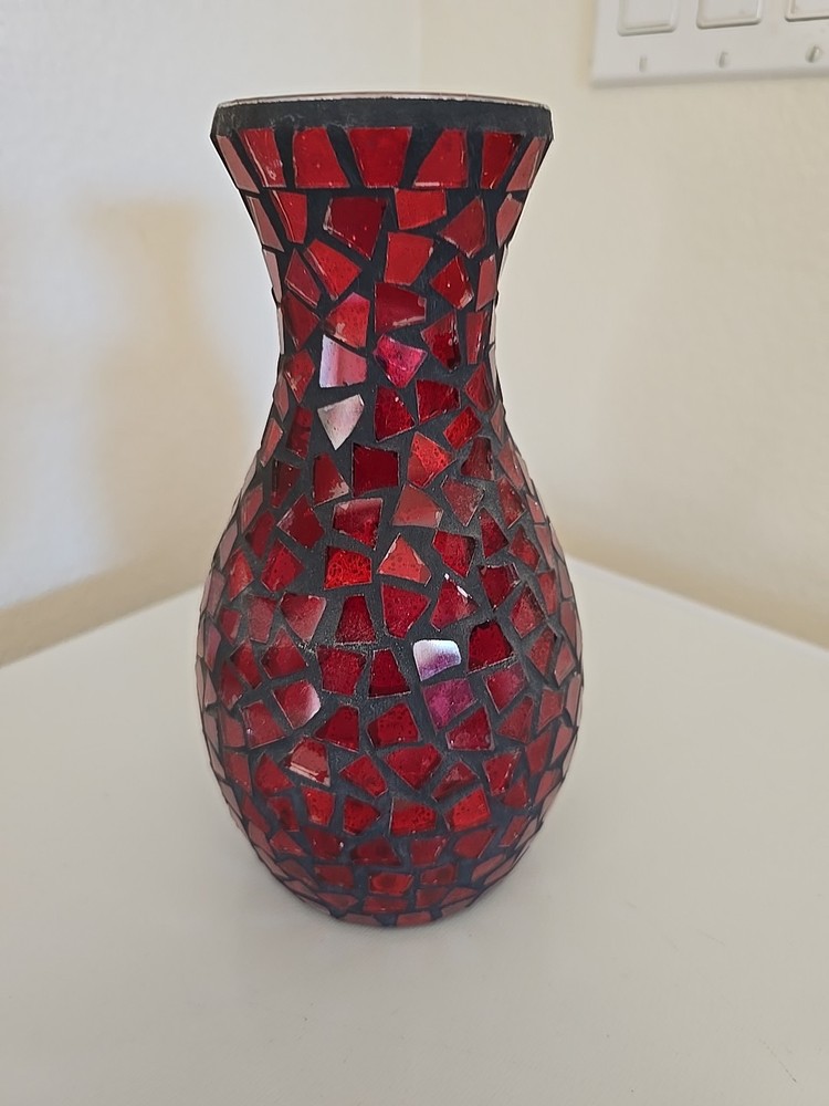 BEAUTIFUL RED STAINED GLASS VASE-9" TALL X 5" WIDE