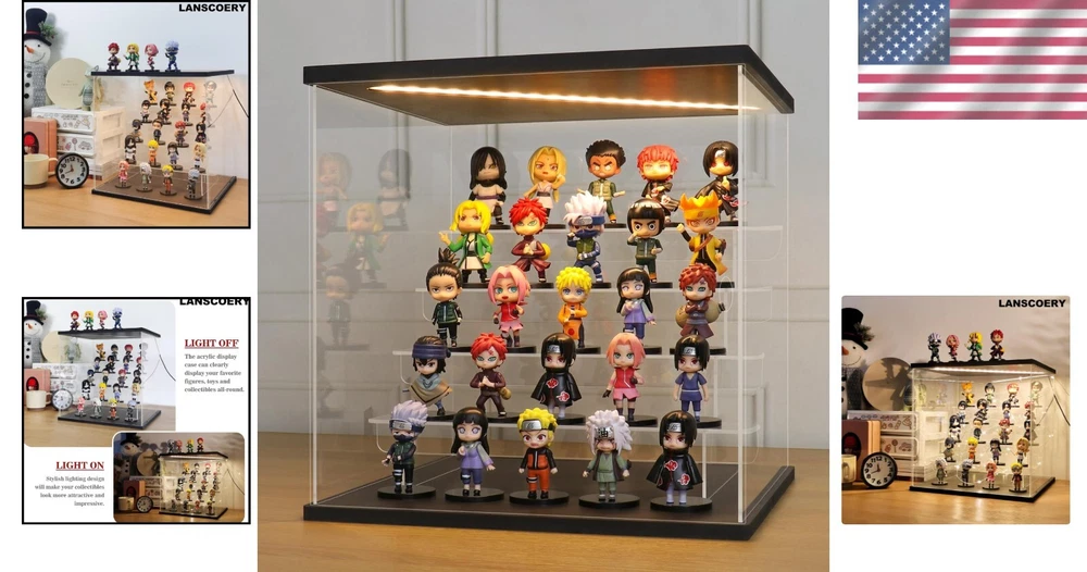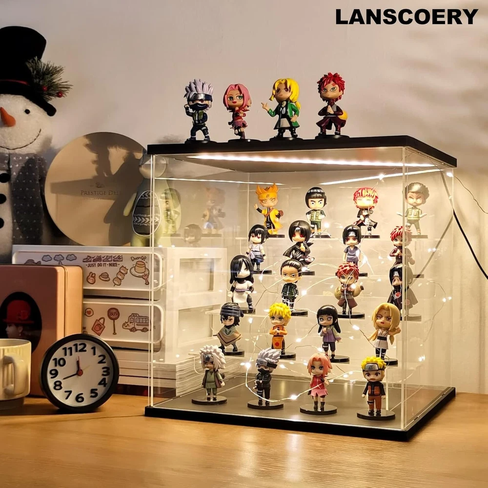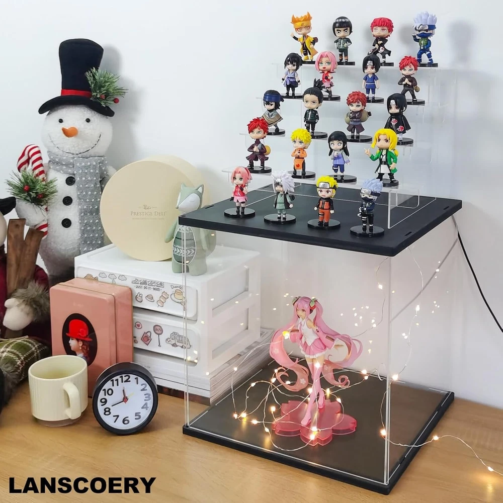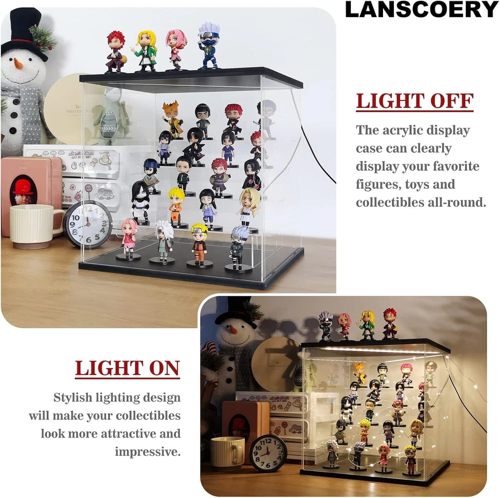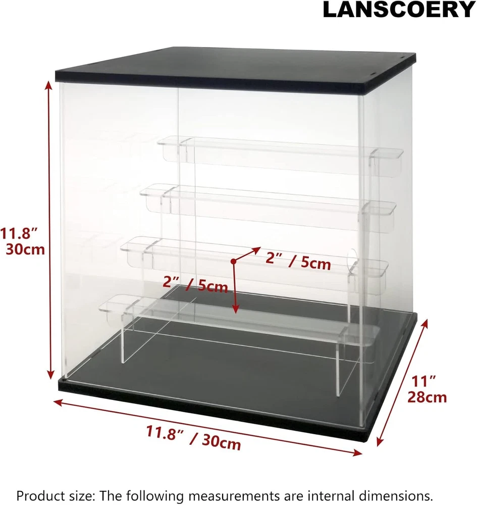 Product Dimensions: 11.8 X 11 X 11.8 Inches gtin13: Does Not Apply Batteries Required: No Type: Display Case Recommended Age Range: 12 Years & Up UPC: Does Not Apply Mounting Type: Tabletop Mount Item Weight: 5.94 Pounds Shape: Rectangular Brand: Unbranded Assembly Required: Yes Age Level: 17 Years & Up, 12-16 Years Color: Black Frame Size: 11.8x11x11.8 Inches Frame Material: Acrylic Features: With Case, Dustproof, LED Light, Removable Shelves, Multi-Level Storage, Simple Assembly Kit, Non-Slip Pads, Fairy Lights, LED Lighting Feature, Dust-reducing door, Spacious Multi-Level Storage, Clear visibility, Robust construction, Flexible storage, Easy access, Modern design, Ideal for collectibles, Enhances home artistry, Perfect for gifts, DIY lovers Autographed: No Material: Acrylic
