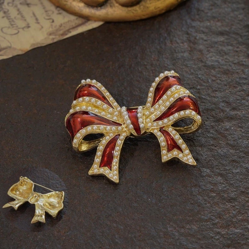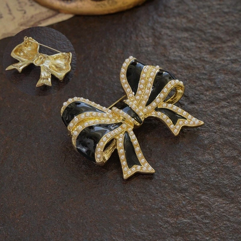 Elegant Baroque Pearl Bow Flower Brooch for Women – Vintage Floral Accessory