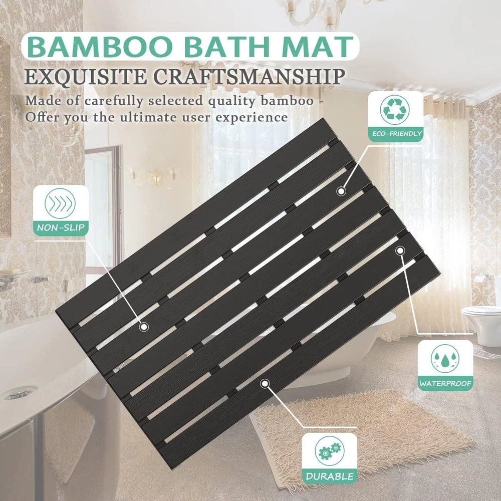 Elegant Black Bamboo Bath Floor Mat - Non-Slip and Waterproof, 31.3"L x 18.1"W ‹ › ‹ › ‹ › ‹ › ‹ › ‹ › ‹ › ‹ › ‹ › ‹ › Elegant Black Bamboo Bath Floor Mat Your Home's Elegant Touch Product Details: Dimensions: 31.3"L x 18.1"W Non-Slip and Waterproof Features: Excellent Slip Resistance: Soft non-slip rubber feet ensure safety while protecting your floor from scratches. Top-Quality Material: Crafted from renewable bamboo, this mat is not only environmentally friendly but also sturdy and durable. Waterproof Performance: With a three-layer waterproof coating and slatted surface for efficient drainage, this bamboo mat far exceeds traditional cloth mats that absorb water and cultivate mold. Easy to Clean: The smooth surface prevents dirt accumulation, simply wipe with a dry cloth after use to maintain its pristine appearance. Versatility: Suitable for various settings including the bathroom, kitchen, entryways, and spas, its stylish design seamlessly integrates as modern home decor. Why Choose Our Elegant Black Bamboo Bath Floor Mat? This luxurious bath mat redefines your space while offering exceptional functionality. Experience the benefits of its slip-resistant design, waterproof efficiency, and easy maintenance. Elevate your home decor with a touch of elegance that reflects your commitment to sustainability. Perfect for indoor use, it transitions effortlessly to outdoor settings such as swimming pools and outdoor showers, or perfect to accompany you to the beach. Indulge in the perfect blend of style and practicality—Order your Elegant Black Bamboo Bath Floor Mat today! Shipping Free & Fast Shipping - We offer free shipping to most of the USA with a normal delivery time of 3-7 days. However, due to the current situation, additional delivery time (up to 3 weeks) may be required for some items. Alternative Carriers - We may use alternative carriers (e.g. USPS, FedEx, UPS, etc.) to ensure your package arrives safely and on time. Due to the use of multiple carriers, we are unable to provide a tracking number automatically. Handling Time - Orders are processed and shipped within 1-2 business days of receiving cleared payment. Shipping Restrictions - Shipping to Alaska, Hawaii, Puerto Rico, Guam, and other US territories may incur shipping charges or delivery restrictions. Please contact us before ordering, or your order can be refunded/cancelled. State Restrictions - There may be restrictions based on your state of purchase. For example, certain items may not be shipped to California due to state regulations. Contact for Tracking Updates - If you require tracking updates or have any concerns about the delivery of your order, please feel free to contact us, and we will be happy to assist you. Return 30-Day Hassle-Free Returns - We want you to be completely satisfied with your purchase. If you are not, you can return the item within 30 days of receiving it for a full refund or exchange. Easy Return Process - To start a return, simply contact us and we will provide you with a prepaid return shipping label and detailed instructions. Restocking Fee - There are no restocking fees for returns. However, the buyer is responsible for return shipping costs if the return is not due to a seller's error. Refund Processing Time - Refunds will be processed within 5 business days of receiving the returned item in its original condition. Payment We accept all major credit cards, PayPal, and Apple Pay for your convenience. Your payment information is secure and encrypted to ensure a safe and seamless transaction. Please complete your payment within 3 days of purchase to avoid any delays in shipping. Feedback Your feedback is extremely important to us. We strive to provide the best products and customer service possible. If you are satisfied with your purchase, please take a moment to leave us a positive review. If you have any concerns or issues with your order, please contact us before leaving negative feedback. We are committed to resolving any problems and ensuring your satisfaction. Contact Us If you have any questions or concerns, please feel free to reach out to our customer support team. You can contact us through the eBay messaging system. We are available Monday to Friday, 9:00 am to 5:00 pm EST, and we will do our best to respond to your inquiry within 24 hours. Thank you for supporting our small family business! UPC: Not Set Item Height: Not Set Unit Quantity: 9.04 Material: Bamboo,Rubber Room: Bathroom,Hallway,Kitchen,Entryway,Office,Spa,Sauna,Outdoor Set Includes: Not Set Theme: Not Set Features: Anti-Slip,Waterproof,Stain Resistant Department: Adults,Unisex Care Instructions: Not Set Character: Not Set Labels & Certifications: Not Set Type: Bath Mat Color: Black Brand: Unbranded Number of Items in Set: 1 Shape: Rectangle Pattern: Not Set Character Family: Not Set Item Width: Not Set Item Length: Not Set Country/Region of Manufacture: Not Set Product Line: Not Set MPN: Not Set Unit Type: lb