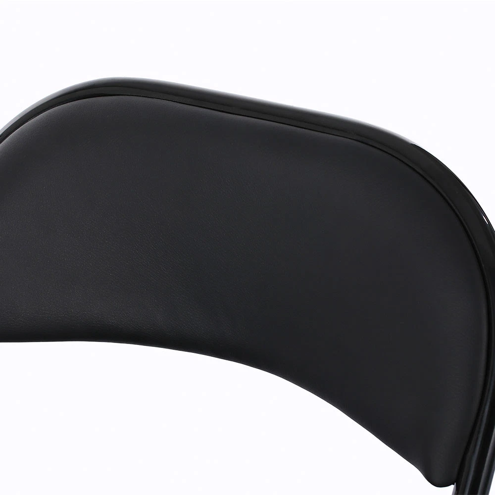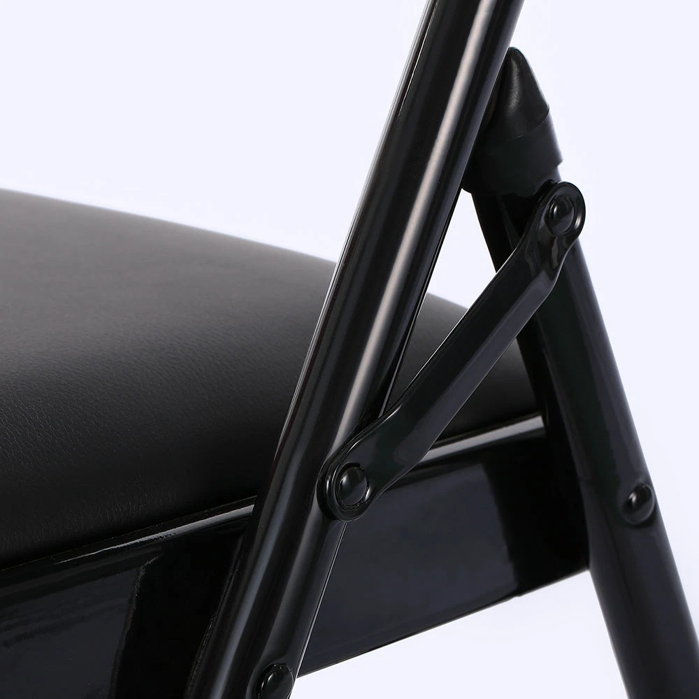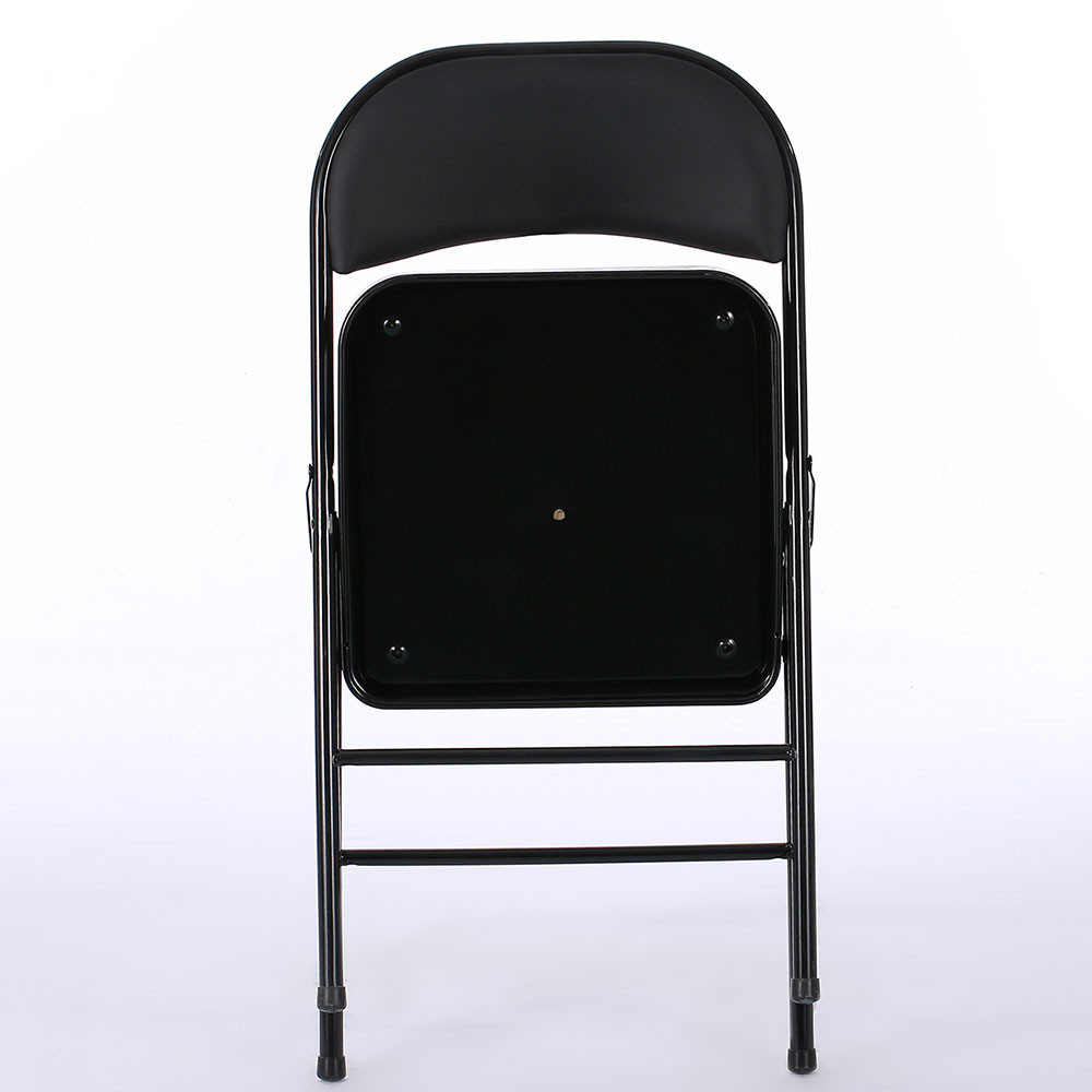 Introductions: This simple style chair combined steel and PVC is suitable for dining room, living room, reception room, exhibition and other places. Sponge filled cushions and backrest give you a more comfortable experience. Sturdy steel frame, two cross - supporting structure can improve the stability of the chair, which makes the chair durable. Steel folding chairs are essential for entertaining guests at large games, parties or events. And they are the best choice when you need additional seats. After use, folding chairs are folded and compact for easy folding and storage. The chairs have smooth surfaces, which is easy to clean. The plastic tube sleeves on chair legs can effectively your floor and prevent scratching. Features: 1. Sturdy and durable steel frame with weight capacity of 150KG 2. Comfortable and soft PVC cushion and backrest, filled with sponge 3. Chairs are easy to carry, foldable and compact, convenient for transportation and storage 4. Plastic tube sleeves can your floor and prevent it from scratching 5. If you have any questions or worries about your order, please keep in with us and we will provide you with timely and satisfactory solutions Specifications: 1. Color: Black 2. Dimensions:(15.75 x 17.72 x 30.71)”/ (40 x 45 x 78)cm(L x W x H) 3. Seat Dimensions: (15.75 x 15.75)" / (40 x 40)cm (L x W) 4. Backrest Dimensions: (17.32 x 7.09)" / (44 x 18)cm (L x W) 5. Material: Iron Tube & PVC 6. Weight Capacity: 330lbs / 150kg 7. Each Chair Weight: 8.38lbs / 3.8kg Package Includes: 6 x Foldable Chairs