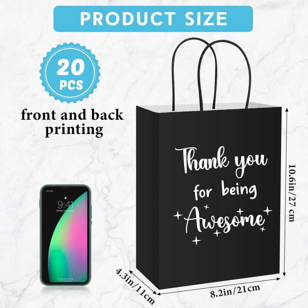 eBay Product Listing Welcome to Your Favorite My Store Your satisfaction is our top priority – Shop confidently 20 Pcs Thank You Gift Paper Bags for Employee Coworker Colleague Thank You for Being Awesome Bags with Handles for Colleague Employee(8.3 x 4.3 x 10.6 Inch,Black) Item Gallery Item Description You Will Receive: there are 20 pieces of employee appreciation gift bags, ample quantity can meet your gift packaging needs, also can be shared with others; It has been upgraded to boxed, please rest assured to buy, double sided printing, if you receive one sided, it may be that the machine missed printing, you can us to return the product, there is no problem with the product quality, you can watch the video we uploaded Delicate Design: the Thank You for Being Awesome bags adopt white background, printed with black words of 'Thank You for Being Awesome' on both sides, distinctive and eye catching, adding nice additions to your presents Proper Size: the Thank You for Being Awesome paper bags are approx. 8.3 x 4.3 x 10.6 inch/ 21 x 11 x 27 cm, appropriate size for you to employee appreciation cups, employee appreciation cosmetic bags, bouquets, candles, and more Reliable Material: the Thank You for Being Awesome paper bags are made of quality 100 GSM white kraft paper, thick and reliable, sturdy and reusable, serving you for a long time Wide Range of Applications: these employee appreciation gift bags are suitable for employee appreciation, company annual meeting, appreciation and commendation meeting, holiday, birthday, themed party, Christmas, family gathering, and more Special Features Features: The paper gift bags are equipped with sturdy handles, which are convenient for you to carry. The employee appreciation bags can be easily folded to when not in use, saving your storage space. Specifications: Material: kraft paper Main color: as the picture shown Size: 8.3 x 4.3 x 10.6 inch/ 21 x 11 x 27 cm Package includes: 20 x Employee appreciation gift bags Notes: Manual measurement, please allow slight errors on size. The color may exist a slight difference due to different screen displays. Our Guarantee To You We offer fast shipping, free delivery, and 100% customer satisfaction guarantee. Not satisfied? Return your item for free within 30 days. 30-Day Free Returns Shipping Details Items will be sent to your eBay address. Please verify before purchasing. Typical delivery within 3-7 business days. Professional shipping services used for all orders. We ship to the continental US (48 states only). Unable to deliver to Alaska, Hawaii, or territories. No APO/FPO or PO Box deliveries available. We use eco-friendly packaging Payment Options We accept these secure payment methods: All transactions securely processed through eBay's payment system. Simple Returns 30-Day Satisfaction Promise Contact us through eBay messages within 30 days of delivery. We'll provide return instructions and our address. Return the item in its original condition. We'll process your refund within 48 hours of receiving the item. Get In Touch Have questions about your order? Contact us through eBay messaging for prompt assistance. We typically respond within 24 hours.
