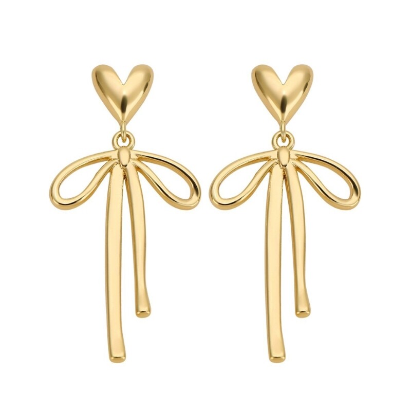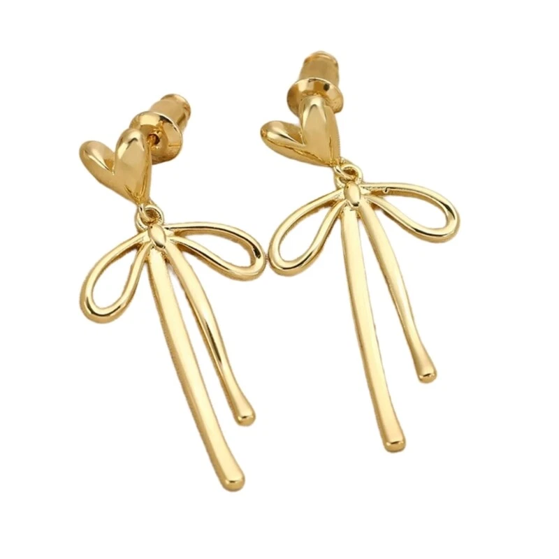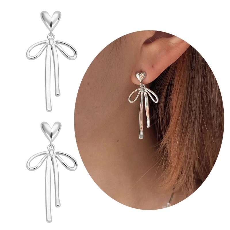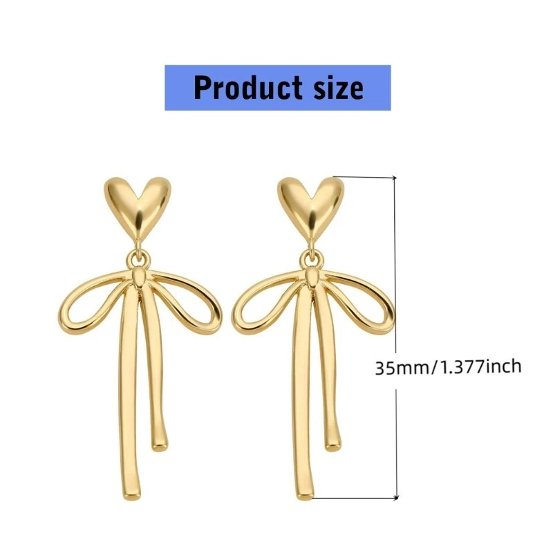 Features: Embracing the essences of love and with these heart bowknot studs earrings, blend of elegances and trendsetting appeal. Crafted from these studs boast durability and a lustrous that captures attention without fading over time. Fashion women, youthful ladies who like personalized accessories, will find these earrings to be addition to their jewelry collection. for various occasions, these studs are enough for daily wear, casual outings, and special event like dates, parties, and weddings, enhancing feminine graces and confidence. With their shape, these earrings offer comfort for all day wear while adding a sophisticated touch to any outfit, making them important accessory fashion jewelry list. Specifications: Texture: Color: Golden/Silver Length: Approx. 1.377inch(3.5cm) Package Includes: 1 Pair Earrings note: Please allow 1-2cm errors due to manual measurement. Due to the differences between different monitors, the picture may not reflect the actual color from the item.