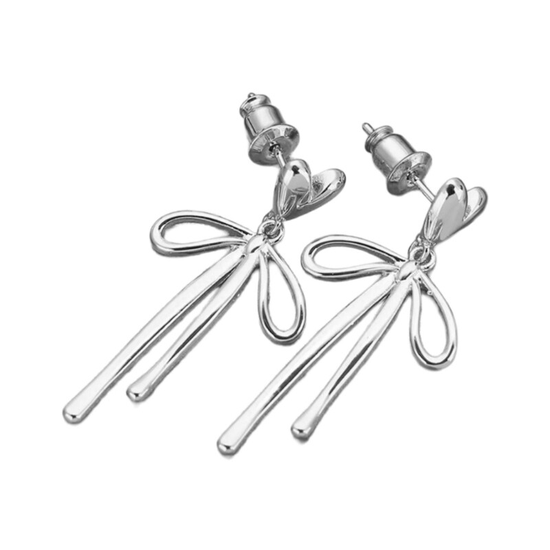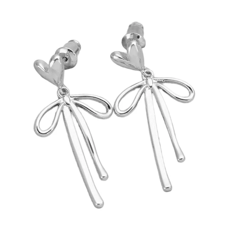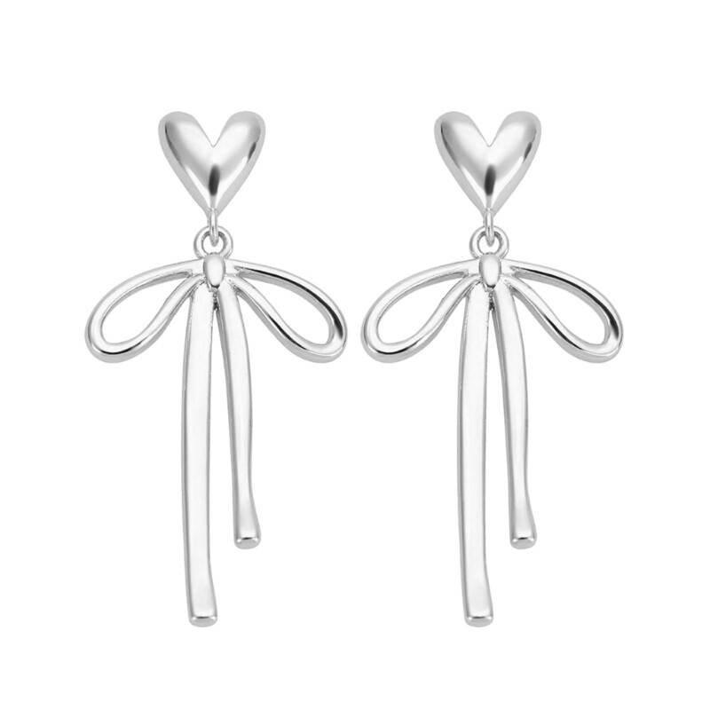 Elegant Bowknot Heart Stud Earrings with Pendant Design