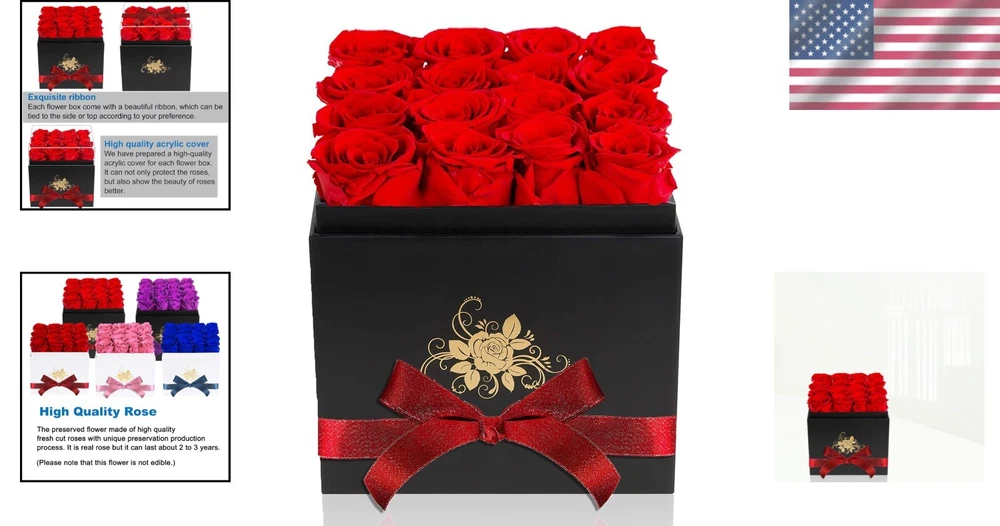 Elegant Box of 16 Long-Lasting Red Roses - Perfect Anniversary & Birthday Gift ‹ › ‹ › ‹ › ‹ › ‹ › ‹ › ‹ › ‹ › ‹ › Elegant Box of 16 Long-Lasting Red Roses Perfect Anniversary & Birthday Gift Features: Long-lasting Beauty: Preserved fresh-cut roses that maintain their elegance for 2 to 3 years, and sometimes even longer (Note: these flowers are not edible). Well-Designed Rose Box: Each square box contains 16 meticulously selected roses with a diameter of 1.8” to 2”. Luxurious Presentation: An elegant rose box that makes for an impressive gift on occasions such as Valentine’s Day, Anniversaries, Birthdays, Mother’s Day, Thanksgiving, Christmas, Weddings, and Graduations. Delicate Hand-made Craftsmanship: Every exquisite flower box is carefully crafted by skilled florists. Unique Gifts for Women: A stunning and memorable gift that is perfect for girlfriends, lovers, mothers, and friends. About : Our design team consists of experienced florists, dedicated to creating products filled with warmth and love. Specification: Item Size: 6.7" x 6.7" x 7.5" (LxWxH) Included: 16 selected roses with a diameter of 1.8” to 2” Why Choose our Elegant Rose Box? Impress your loved ones with the timeless beauty of our Elegant Box of 16 Long-Lasting Red Roses. Each rose is not just a flower but a heartfelt expression of love and admiration. These exquisitely preserved roses symbolize beauty, passion, and affection, making them the perfect gift for any occasion. Whether you wish to celebrate an anniversary, a birthday, or merely express your love, this elegant rose box is bound to create lasting memories. Experience the difference that comes with handcrafted luxury. Order your box today and give a gift that speaks from the heart. Shipping Free & Fast Shipping - We offer free shipping to most of the USA with a normal delivery time of 3-7 days. However, due to the current situation, additional delivery time (up to 3 weeks) may be required for some items. Alternative Carriers - We may use alternative carriers (e.g. USPS, FedEx, UPS, etc.) to ensure your package arrives safely and on time. Due to the use of multiple carriers, we are unable to provide a tracking number automatically. Handling Time - Orders are processed and shipped within 1-2 business days of receiving cleared payment. Shipping Restrictions - Shipping to Alaska, Hawaii, Puerto Rico, Guam, and other US territories may incur shipping charges or delivery restrictions. Please contact us before ordering, or your order can be refunded/cancelled. State Restrictions - There may be restrictions based on your state of purchase. For example, certain items may not be shipped to California due to state regulations. Contact for Tracking Updates - If you require tracking updates or have any concerns about the delivery of your order, please feel free to contact us, and we will be happy to assist you. Return 30-Day Hassle-Free Returns - We want you to be completely satisfied with your purchase. If you are not, you can return the item within 30 days of receiving it for a full refund or exchange. Easy Return Process - To start a return, simply contact us and we will provide you with a prepaid return shipping label and detailed instructions. Restocking Fee - There are no restocking fees for returns. However, the buyer is responsible for return shipping costs if the return is not due to a seller's error. Refund Processing Time - Refunds will be processed within 5 business days of receiving the returned item in its original condition. Payment We accept all major credit cards, PayPal, and Apple Pay for your convenience. Your payment information is secure and encrypted to ensure a safe and seamless transaction. Please complete your payment within 3 days of purchase to avoid any delays in shipping. Feedback Your feedback is extremely important to us. We strive to provide the best products and customer service possible. If you are satisfied with your purchase, please take a moment to leave us a positive review. If you have any concerns or issues with your order, please contact us before leaving negative feedback. We are committed to resolving any problems and ensuring your satisfaction. Contact Us If you have any questions or concerns, please feel free to reach out to our customer support team. You can contact us through the eBay messaging system. We are available Monday to Friday, 9:00 am to 5:00 pm EST, and we will do our best to respond to your inquiry within 24 hours. Buy it now and enjoy a pleasant shopping experience! UPC: Not Set Item Width: Not Set Unit Quantity: 16 Material: Mixed Materials,Real Roses,Preserved Flowers,Box Common Name: Rose Brand: Unbranded Product: Preserved Roses Gift Type: Flower Box Artificial/Fresh: Fresh Form: Arrangement & Centerpiece Color: Red Occasion: Anniversary MPN: Not Set Theme: Not Set Size: 6.7*6.7*7.5 inches Country/Region of Manufacture: Not Set Item Height: Not Set Number in Pack: 1 Unit Type: Unit Personalize: Not Set Personalized: Not Set