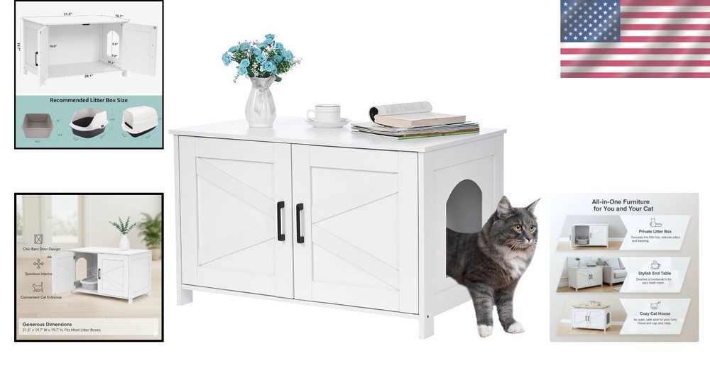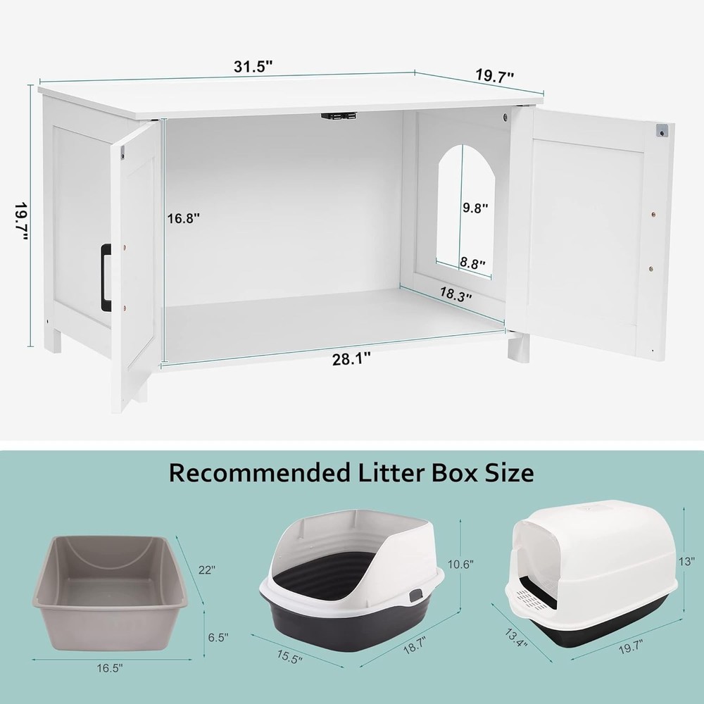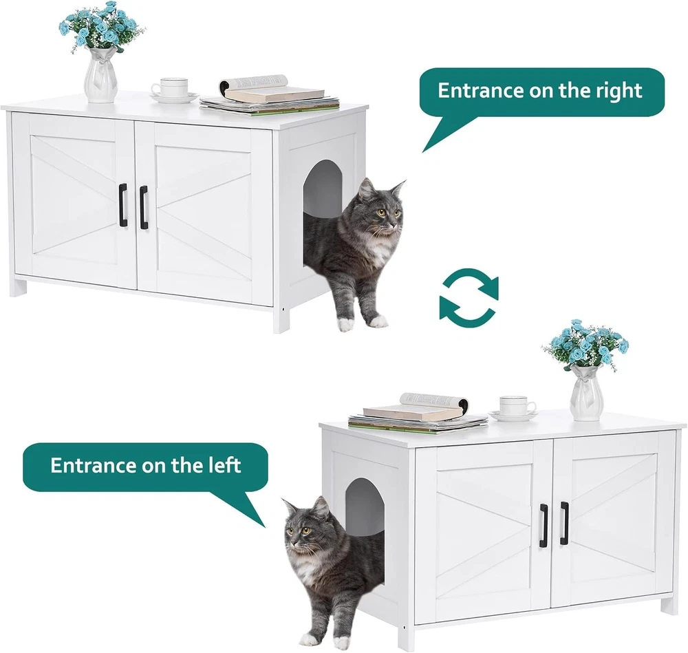 Elegant Cat Litter Box Enclosure - Multi-Functional Wooden Pet Furniture ‹ › ‹ › ‹ › ‹ › ‹ › ‹ › ‹ › ‹ › ‹ › ‹ › ‹ › Elegant Cat Litter Box Enclosure - Multi-Functional Wooden Pet Furniture Features: Pet Friendly: Create a private washroom for your kitty while reducing odors in your home. Generous Size: Sized at 31.5” L x 19.7” W x 19.7” H, easily accommodates most litter boxes to prevent litter scattering. All-in-One Pet Furniture: Use it not only as a litter box enclosure but also as a cozy cat house, stylish end table, or coffee table. Convenient Design: Install the cat entrance on either the left or right for your and your cat’s convenience. Double Cabinet Doors: Allow for easy litter scooping and convenient storage for cat food. Water-Resistant Surface: The veneered surface makes cleaning effortless and fuss-free. Benefits: Transforms an unsightly litter area into a stylish part of your home décor. Provides a safe and cozy spot for your cat to retreat and nap. Makes daily maintenance simple and easy with thoughtful design features. Enhances the aesthetic of your living space while meeting your pet’s needs. Offers a practical solution by combining functionality and elegance. Why Choose Our Elegant Cat Litter Box Enclosure? Are you tired of the clutter and odors that come with having a litter box in your home? Our Elegant Cat Litter Box Enclosure is the perfect solution, providing your feline friend with a private washroom and keeping your home stylishly organized. With a spacious interior that fits most litter boxes, this multi-functional piece of furniture is not only practical but also enhances your living environment. Besides, its easy-to-clean water-resistant surface ensures maintaining cleanliness is a breeze. Elevate your home décor while ensuring your pet’s comfort. Order your Elegant Cat Litter Box Enclosure today and transform your space! Shipping Free & Fast Shipping - We offer free shipping to most of the USA with a normal delivery time of 3-7 days. However, due to the current situation, additional delivery time (up to 3 weeks) may be required for some items. Alternative Carriers - We may use alternative carriers (e.g. USPS, FedEx, UPS, etc.) to ensure your package arrives safely and on time. Due to the use of multiple carriers, we are unable to provide a tracking number automatically. Handling Time - Orders are processed and shipped within 1-2 business days of receiving cleared payment. Shipping Restrictions - Shipping to Alaska, Hawaii, Puerto Rico, Guam, and other US territories may incur shipping charges or delivery restrictions. Please contact us before ordering, or your order can be refunded/cancelled. State Restrictions - There may be restrictions based on your state of purchase. For example, certain items may not be shipped to California due to state regulations. Contact for Tracking Updates - If you require tracking updates or have any concerns about the delivery of your order, please feel free to contact us, and we will be happy to assist you. Return 30-Day Hassle-Free Returns - We want you to be completely satisfied with your purchase. If you are not, you can return the item within 30 days of receiving it for a full refund or exchange. Easy Return Process - To start a return, simply contact us and we will provide you with a prepaid return shipping label and detailed instructions. Restocking Fee - There are no restocking fees for returns. However, the buyer is responsible for return shipping costs if the return is not due to a seller's error. Refund Processing Time - Refunds will be processed within 5 business days of receiving the returned item in its condition. Payment We accept all major credit cards, PayPal, and Apple Pay for your convenience. Your payment information is secure and encrypted to ensure a safe and seamless transaction. Please complete your payment within 3 days of purchase to avoid any delays in shipping. Feedback Your feedback is extremely important to us. We strive to provide the best products and customer service possible. If you are satisfied with your purchase, please take a moment to leave us a positive review. If you have any concerns or issues with your order, please contact us before leaving negative feedback. We are committed to resolving any problems and ensuring your satisfaction. Contact Us If you have any questions or concerns, please feel free to out to our customer support team. You can contact us through the eBay messaging system. We are available Monday to Friday, 9:00 am to 5:00 pm EST, and we will do our best to respond to your inquiry within 24 hours. Buy it now and enjoy a pleasant shopping experience! Model: Cat Litter Box Enclosure MPN: Cat_Litter_Box_Enclosure Unit Quantity: 1.00 count Type: Litter Box Enclosure