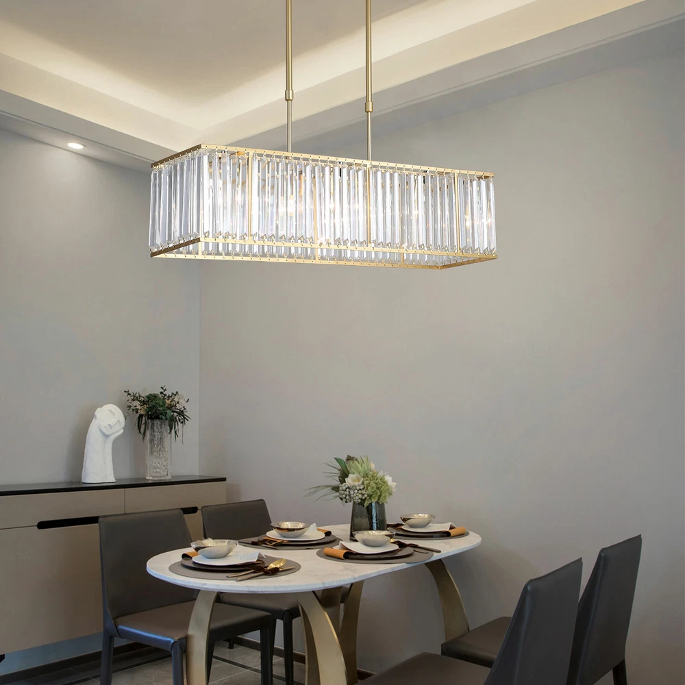 Elegant Crystal Chandelier Modern Ceiling Fan Light Pendant Lamp Fixture Indoor SKU : HG-HCXLST-4708-US ( Multi-head LED Ceiling Light ) About this item 【 MODERN LOOK 】 This LED pendant light is designed in modern style, just like a cloud lying on your ceiling, looking luxurious and elegant; DIMENSION: L42.5”x H5.9” DIMMABLE AND COLOR CHANGEABLE:72W Dimmable Remote control take dimmable brightness adjustable and 3 colors temperature to meet your different needs (3000k warm white, 4000k neutral white,6000k cold white).Functional dimmable range 10%-100% ENERGY SAVING:Our Flush mount lighting with LED chips save energy up to 80% than halogen lamp,incandescent ceiling light fixture Over 50,000 hour lifespan.Buying low-power,high-brightness LED ceiling lights, Eyes Protection:The LED ceiling light brings you the most natural lighting. And the PVC made lampshade would lower the transmittance of lighting, which can protect your and your child’s eyes from glare lighting. 【 LONG LIFESPAN 】 High-quality PC finished by powder coating applied, resulting in anti-corrosion, anti-faded, not easy to scratch, much better than others on the market; No need to change bulb yourself anymore! 【 WIDE APPLICATION 】 Easy to Install and recommended for indoor decoration, such as living room, dining room, foyer, bedroom, Kitchen, entry, hallway, office, etc ---Please check the color and size before order--- Item Description Dimension:L42.5” x H5.9” Power: 72W LED chip type: SMD2835 Color Rendering Index(CRI): 90 Input Voltage: AC110-240V Style: Modern Mount Type: Flush Mounted Material: Top quality PC Notes: We recommend installing by professionals -When installing and cleaning light, you must cut off the power supply. SKU:HG-HJWJL-6697 (100cm Ceiling Light) Features: 3 Colour To Choose From: Warm White (2700 K), Natural White (4500 K), Cool White (6000 K). This Ceiling Light Can Be Freely Adjusted Via The Remote Control, Convenient And Fast, Satisfying Different Lighting Requirements In Your Life. Adjustable Brightness,Comfortable Light, Reduce Eye Fatigue, Protect Eyesight Peacock Shape, Beautiful And Elegant, High-Temperature Paint, Hydraulic Mold Shaping, Stamping Process Led Light Source, Long Life, Energy Saving, Low Heat, Healthy Environment, High Color Rendering Light Shell After Pressing, Grinding, Polishing Process, Through Special Processing To Prevent Cut Around Applicable To Different Environments Such As Living Room, Bedroom, Study, Restaurant Etc Highly Transparent Acrylic Material Is Used To Ensure The Light Transmittance And Good Density And Uniformity Are Achieved Specification: Category: Lighting Style:Modern Voltage: 110V Diameter: 100cm/39.37in Height: 10.5cm/4.13in Net Weight: 4.85kg Recommended Room Size: 20-25 ㎡ Switching Type: Remote Control & Wall Switch Materials: Acrylic+Iron 3 Color Temperature: 2700K-4500K-6000 Lamp Type:Led Lighting Direction: Ambient Light Power: 100W Luminous Flux: 15000lm Bulb Base: Led Application: Living Room,Bedroom,Dining Room,Study Room Packing List: 1x Ceiling Light 1x Screw Pack 1x Hanging Board 1x Remote Control (Includes two AA batteries ) 1x Manual SKU:HG-HCX-2456-US ( Spiral Island Linear Pendant Light ) Details Material: aluminum Chips:COB LED Colour Temperature: 4000 K Size:Small L33.46" Color: matte black with gold leaf accents Size choices: L33.46" (small) or L51.57 (large) Crafting processes: pressing, bending, polishing, surface finishing etc. 20W for the small size, 30W for the large size. Power by built-in driver and work with LED COB that are installed inside the fixture scrollls which enhance the effect of multi lighting reflections, boosting perfect esthetic integration of light and shadow. This island pendant is featured by fabulously spiral silhouette, treated in matte black accented with gold leaf inside, perfect for dining room, living room, bedroom, bar and restaurant etc. Included 4 X 5W COB that outputs 1600 lumens of intense light with 4000K colour temperature. Completed kits delivery and you needn’t do any assembly jobs at all. About this item ✔ The creatively spiral-shaped Island chandelier expertly handcrafted . The stylish spirals with high power LED chips installed inside not only reduce direct diffusion, but also enhance the effect of multi lighting reflections, boosting perfect esthetic integration of light and shadow. It is exquisitely highlighted by gold leaf and accented with matte black finish, lends timeless glamour and a stunning touch of elegance to your decorating place. ✔ Equipped with the newest COB LED technology that outputs 1600 lumens of intense light with 4000K colour temperature. 4 X 5W COB (included) carry neutral warm light and display you a comfortably cozy atmosphere. ✔ Dimensions (Overall): 59 inches (Max H) x 33.46 inches (W) x 5.31 inches (D). Pendant wire: adjustable 51.18 " - Perfect for dining room, kitchen island, foyer, living room, cafe bar, gallery showroom and restaurants etc. ✔ The whole pendant fixture is kindly designed for completed kits delivery, there are no KD and no assembling troubles at all. You only need to install the canopy to your ceiling. SKU:HG-HCX-2205 ( 3-Light Rectangular Chandelier ) Elegant Crystal Ceiling Light Kitchen Dining Room Chandelier Pendant Lamp E12 About this item Modern design. Not only lighting but also decoration for your space. S ophisticated modern exterior design adds a touch of luxury in life, a high-ended gorgeous decoration for your bedrooms, living rooms, corridors, entryways and living areas.Creates warmth graceful atmosphere perfectly suitable for your decoration requirements. Adopts high-quality K9 clear crystal, superior metal stuff , made by fine craftsmanship, how beautiful and gorgeous! The chandelier not only could adjust the height according to your needs but decorate your space, create warmth atmosphere to keep a good mood. Well-packaged and easy installation. Technical Details Light Source:3 x E12 Max 50W (do no