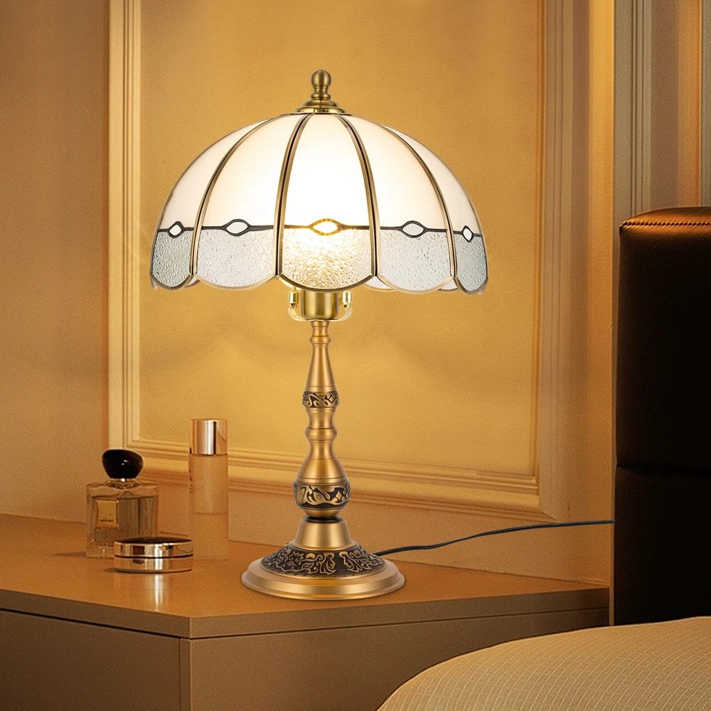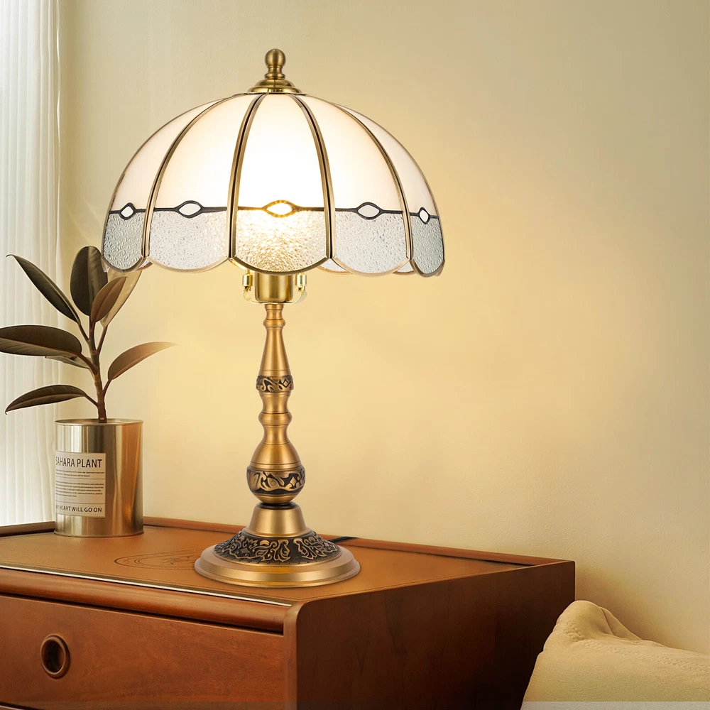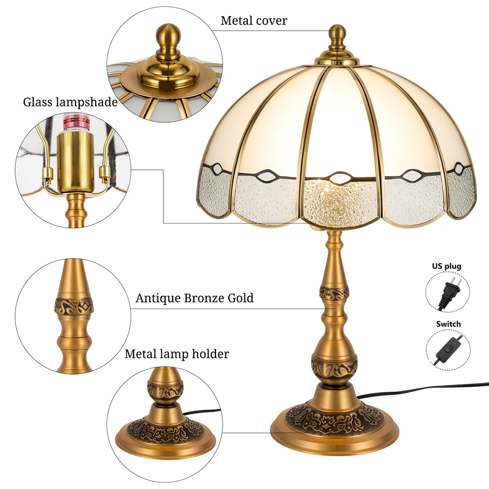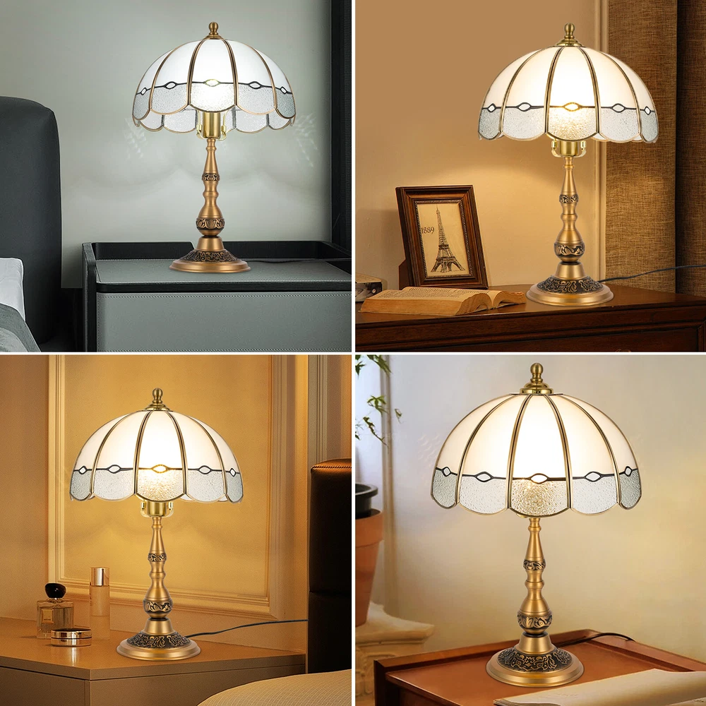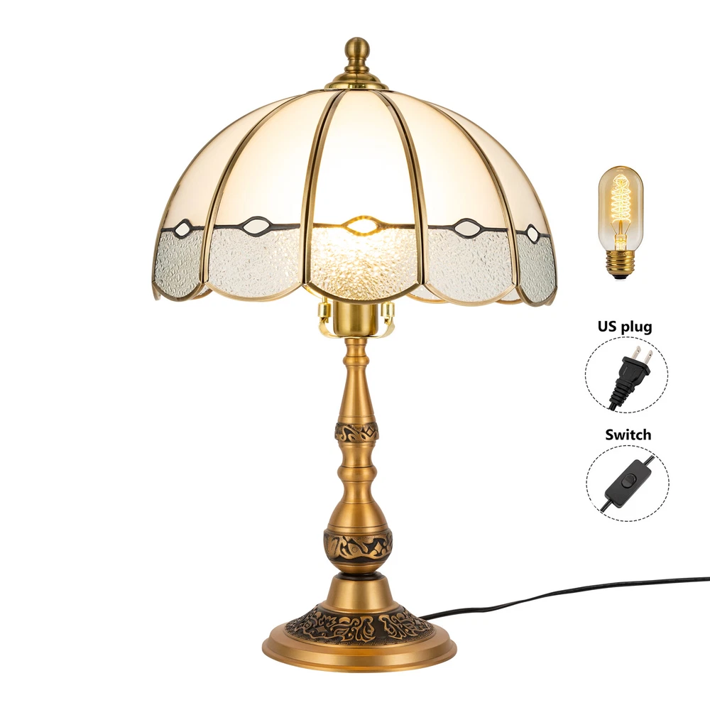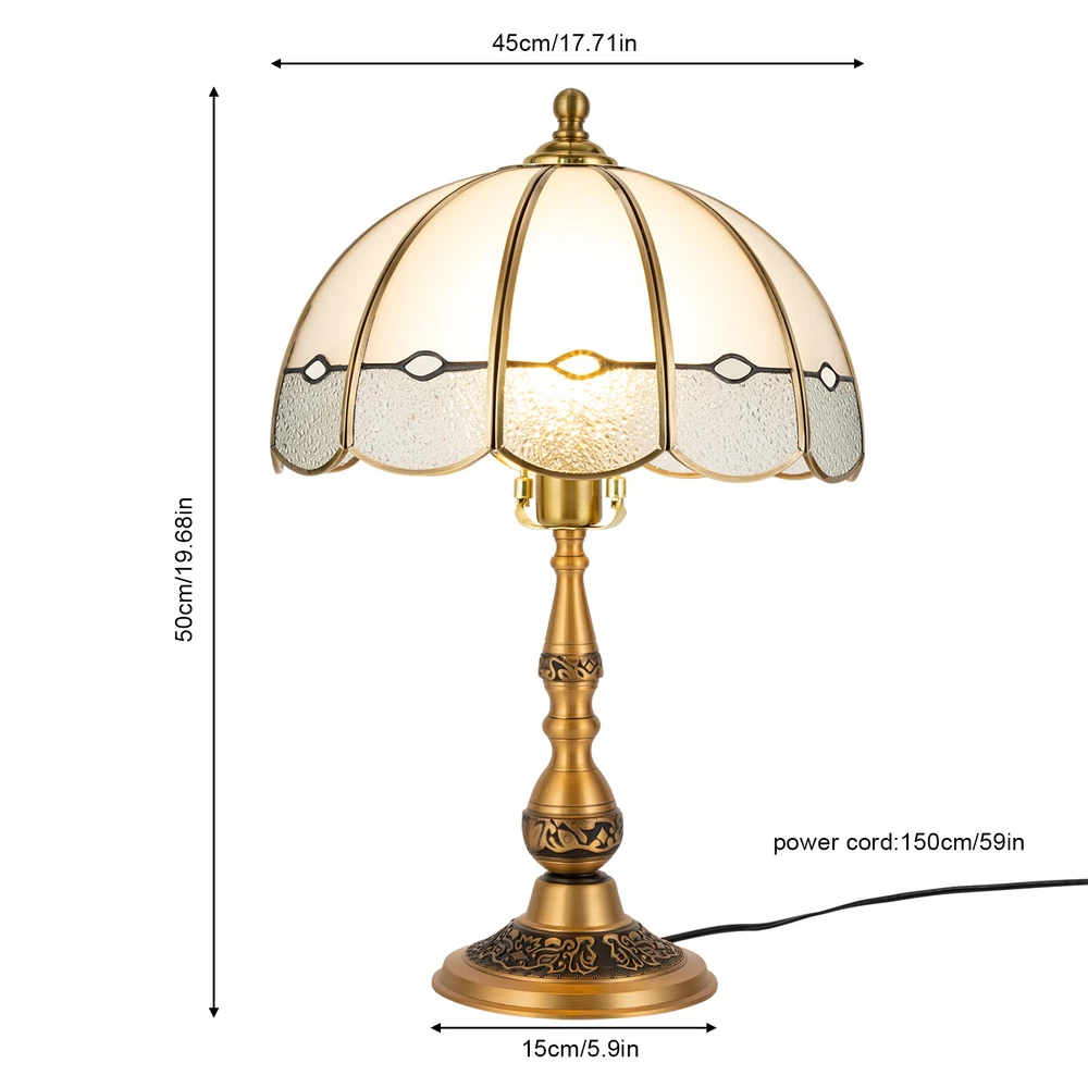 Description Add antique charm to your room with this vintage-style table lamp. It is made of copper and iron, which gives it a sturdy architecture and high durability. The handmade glass shade and the E26 lamp base which is suitable for various bulbs, not only allow it to create a great lighting effect but also make it a unique piece of art in your room. Whether it is placed in the reading corner or at the bedside, it will be a great companion to accompany you on every peaceful night. Key Features Made to Last: Made of high-quality copper and iron, the product is sturdy and has a strong construction during daily use. It also adopts an electroplating process that brings the product corrosion resistance, and rust resistance, giving it a long service life. Vintage Style: The hand-crafted sh Elegant Desk Lamp, Bedroom Tabletop Lamp, Bedside Reading Light Copper Gold E26 Description Add antique charm to your room with this vintage-style table lamp. It is made of copper and iron, which gives it a sturdy architecture and high durability. The handmade glass shade and the E26 lamp base which is suitable for various bulbs, not only allow it to create a great lighting effect but also make it a unique piece of art in your room. Whether it is placed in the reading corner or at the bedside, it will be a great companion to accompany you on every peaceful night. Key Features Made to Last: Made of high-quality copper and iron, the product is sturdy and has a strong construction during daily use. It also adopts an electroplating process that brings the product corrosion resistance, and rust resistance, giving it a long service life. Vintage Style: The hand-crafted shade, antique-style copper gold color, and rounded body give the product an elegance that makes it a unique piece of artwork for your home. Wide Compatibility: The E26 standard lamp holder allows you to install different types of E26 bulbs(not included) such as LED, energy-saving bulbs, and incandescent light bulbs to meet your preference while allowing for convenient replacement and purchase. Easy to Use: The 4.92-foot power cord and the one-touch button allow you to easily control the lights on and off. Effortless Clean: With a simple structure and smooth surface, you can easily wipe the dust off with a soft cloth. Protective Package: To prevent the product from being damaged during transportation, we packed it with foam to protect your products to the maximum extent possible. Ideal Gift: Its classic appearance makes it an ideal housewarming gift for your friends, families, and colleagues. Customer Service: We aim to provide quality products and services. If you have any problems, please feel free to contact us. We will reply and solve the problem for you as soon as possible. Details Sturdy Base: The 5.9-inch base with an EVA non-slip bottom gives the lamp sturdy support and can effectively prevent it from sliding on smooth surfaces during daily use. Glass Lampshade: The translucent glass lampshade can ensure the brightness of the light while avoiding strong light damage to the eyes. Application With a lighting area of approximately 53.82ft², it is suitable for bedrooms, dining rooms, study rooms, living rooms, balconies, clothing stores, cafes, hotels, bedsides, end tables, working tables, and other places. Specifications Color: Copper Gold Color Style: Elegant Efficiency: E Plug Type: US Standard Light Source: 1*E26 Bulb(Not Included) Mount Type: Tabletop Assembly Required: Yes Material: Copper, Iron, EVA, Glass Process: Electroplated Voltage: 110V Maximum Bulb Power: 40W Illumination Area: About 5m²/53.82ft² Power Cord Length: 1.5m/4.92ft Product Height: 50cm/19.68in Base Diameter: 15cm/5.9in Lampshade Diameter: 45cm/17.71in Package Included 1*Table Lamp Notes Please check the size carefully before ordering. Please cut off the power before cleaning it. Please allow the slight color difference caused by the shooting light and 1-3cm error due to manual measurement, and make sure you do not mind before you order. Payment Delivery details Terms of sales About us Contact us Payment We accept ebay payment 。 Fees such as import duties, taxes are not included in the item price or shipping costs. These charges are the buyer's responsibility. Delivery details Shipping: 2-9 working days to: USA Terms of sales We maintain high standards of excellence and strive for hundred percent customer satisfaction. Feedback is very important to us. We hope that you contact us immediately before you give neutral or negative feedback, so that we can address your concerns. It is impossible to address issues if we do not know about them! About us Your satis faction is our ultimate goal. We work hard to earn your trust and future business. Our certified technicians have tested each item before shipping. The unit comes with 1 year limited warranty on all manufacturing defects. a) If you receive a defective item, you may return it or ask for a discount. Please contact us within 14 days after you receive the package. b) What you returned must be intact and in its original packaging as re? u. Customer is responsible for shipping costs of the returned item. c) We will cover the cost of shipping back t with the shipping rate indicated in the registration page. We will send you a new unit or refund the full payment you paid. Thank you. Contact us Business Hour Business Hour: Monday To Friday: 8:30 AM to 5:00 PM (Beijing China time) Due to time zones, our reply to your questions may not be immediately. But within above working time, we will reply your email within 24 hours. If it's non-workdays, please kindly be patient and wait till Monday. Please contact us with ebay message. Please feel free to contact us if you have any questions. Monday To Friday: 8:30 AM to 5:00 PM (Beijing China time) Due to time zones, our reply to your questions may not be immediately. But within above working time, we will reply your email within 24 hours. If it's non-workdays, please kindly be