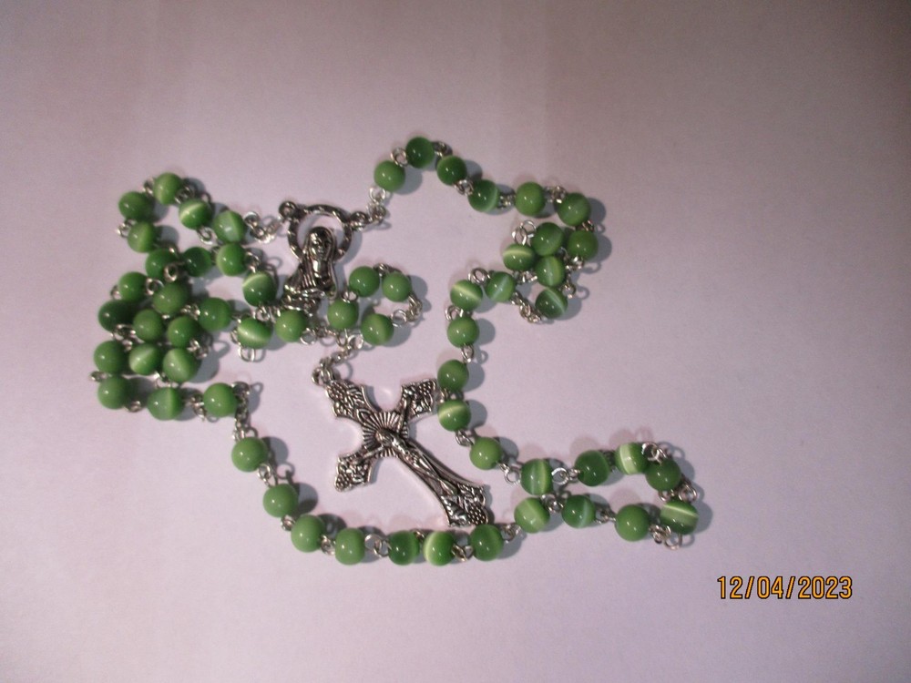 Beautiful Muted Green Bead Rosary Silver Crucifix 4 mm Glass Faceted Beads Beads have a beautiful pearlescent lustrous quality 15 in length Condition: NEW About: About all my Rosaries sold here: This group of rosaries that I will be listing came from a Highland Park estate. They are the most beautiful and unusual rosaries I have seen in a long long time. GORGEOUS. SEE PHOTOS!!! P.M. Beautiful Muted Green Bead Rosary Silver Crucifix 4 mm Glass Faceted Beads Beads have a beautiful pearlescent lustrious quality 15 in length Condition: NEW About: About all my Rosaries sold here: This group of rosaries that I will be listing came from a Highland Park estate. They are the most beautiful and unusual rosaries I have seen in a long long time. GORGEOUS. SEE PHOTOS!!! P.M. Images sell! Get Supersized Images & Free Image Hosting Attention Sellers - Get Templates Image Hosting, Scheduling at Auctiva.com. Track Page Views With Auctiva's Counter