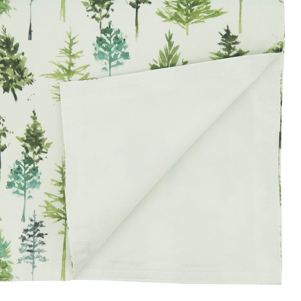 Featuring multiple trees in various shades of green and different shapes, this stylish Forest Trees Design Table Runner brings texture and dimension to the tabletop. It's highly versatile and can be easily dressed up for entertaining guests or pared down for daily meals. Pair it with solid color within the same palette for a coordinated look. Size: 16"x90" Design is not reversible Runner has a 100% polyester lining Multiple shapes and color shades, add texture to the design. Material: 100% polyester + Care: warm machine wash, do not bleach, hang dry, do not iron