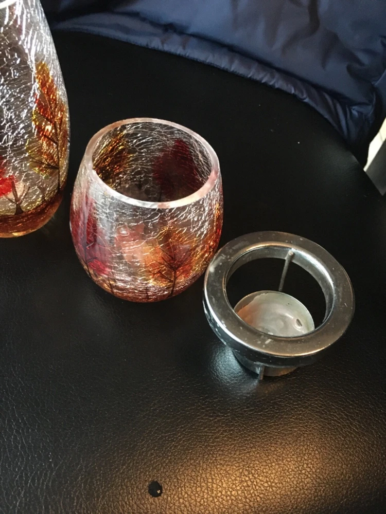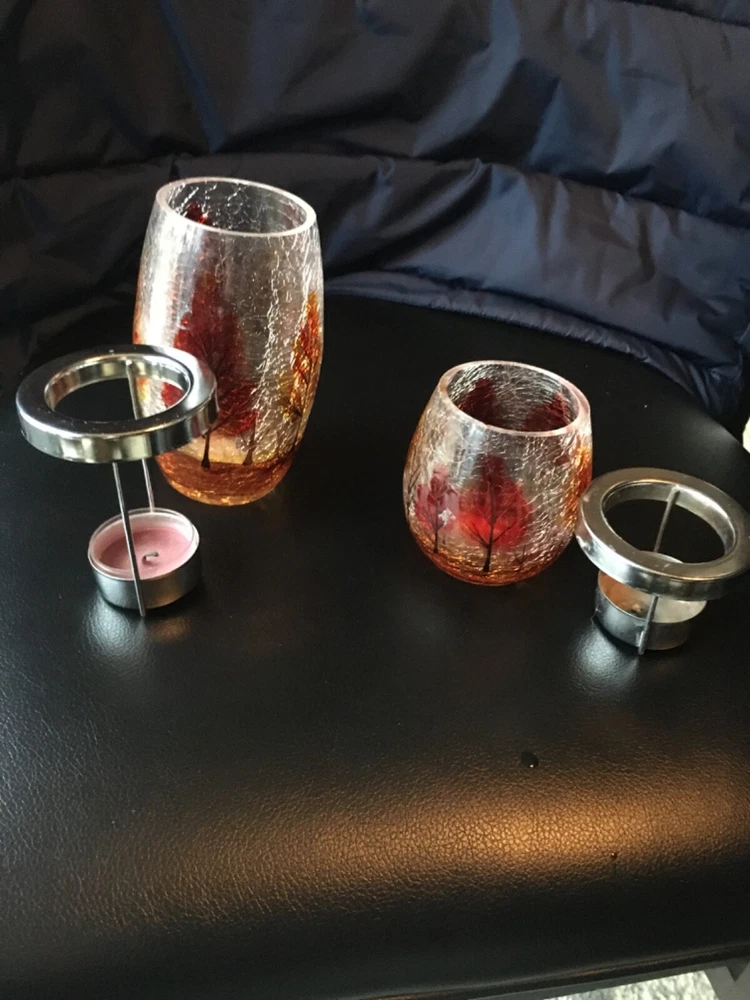 Yea light holders 5 inch and 3 inch candle holders table decorations shattered glass look fall tress