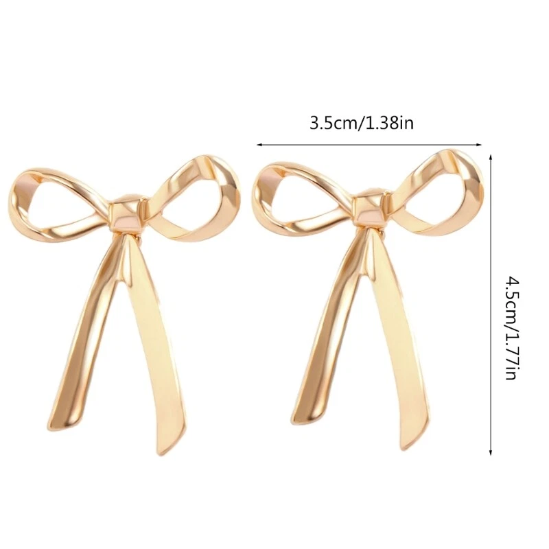 Features: These bowknot earrings feature a delicate and stylish project, adding a touch of charm to your look. Crafted from high alloy material, these earrings are lightweight and comfortable for all day wear. The polished finish ensures a smooth fit without causing allergies. Designed for women who appreciate fashion and cuteness, these earrings are for showcasing your Whether it's for daily wear or special occasions, these earrings can complement various outfits. They are suitable for casual outings, parties, dates, and formal gatherings. Let your unique personality with these versatile butterfly earrings. They are not only accessories but also a reflection of your individuality. Specifications: Alloy Color:Gold/Silver Size:Approx.4.5x3.5cm/1.77x1.37inches Package Includes: 1Pair Bowknot Ear studs note: Please allow 1-2cm error due to manual measurement. Please make sure you do not mind before you bid. Due to the difference between different monitors, the picture may not reflect the actual color of the item. Thank you!