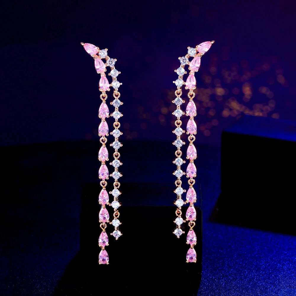 Elegant Gold Plated Long Pink Tassel Zircon Drop Earrings Women Banquet Jewelry There’s an old saying that: Jewelry is woman’s best friend. And one appropriate luxury jewelry helps to spice up your charm and beauty. And here’s the reason why you choose us: ★ We adopts high-grade Cubic Zirconia, which displays pure and fascinating color; ★ All our items are Elaborate, Gold Plated (white gold plated/yellow gold plated/black gold plated), by which the texture is smooth and with fancy look, and will be appropriate for so many occasions; ★ Our items are with Exquisite Design, which shows your excellent taste, and could catch people’s attention easily. ★ Ideal gift for mother, wife, girlfriend, daughters, brides, bridesmaids, ect. Specification Type: Dangle/Drop Earrings Stone Material: Cubic Zirconia Base Metal Material: Brass Metal Material: Gold Plated Shape: Long Water Drop Tassel Color: Pink Suitable Occasion: Daily, Holidays, Party, Engagement, Wedding, Anniversary, Valentine’s Day, Carnival, Performance, ect. Package Includes 1 Pair of CZ Drop Earrings Please note: *Please bear in mind that there might be 1~2cm difference due to manual measurement. *Our digital images are as accurate as possible. However, different monitors may cause colors to vary slightly. *We offer after-sale service, if there is any item problem, please feel free to contact us via eBay message first, your kind understanding is much appreciated. About Us Payment Shipping Returns Contact us About Us Topjewel33 is a newly-established online store which dedicates to provide excellent luxury jewelry products, such as earrings, rings, necklaces, bracelets, brooches, hair accessories, and high grade jewelry sets. We target worldwide market, and we strive for offering you unbeatable low price and satisfied customer service. Payment We accept PayPal payment only. Payment must be received within 7 days from the date of purchase. Shipping We do hope all our customers could receive the order asap, so normally, the order will be sent out within 2 working days. And as the delivery is handled by the third party, sorry that we could not guarantee which date you could receive the package. And sometimes the delivery might be a little bit delay, especially in high volume or holiday seasons. However, please don’t worry and feel free to contact us via eBay message, and we will do our best to help. And we sincerely apologize for any inconvenience may cause. Sometimes custom tax might be required, and we are afraid that it will be covered by the buyers, thank you for kind understanding. Returns We provide 30 days money back return policy. And if you have any problem with the item, please make sure the item is in the original package and feel free to contact us via eBay message first, thank you for kind understanding and cooperation. Contact us We offer customer service, if you have any problem with the item before/during/after the purchase, please feel free to contact us via eBay message, and we will get back to you asap. Thank you for your kind patience.