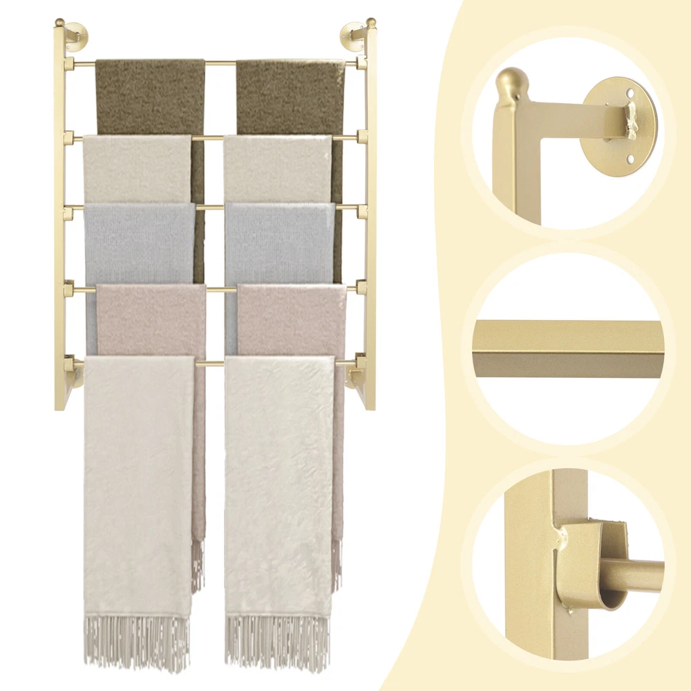 This scarf organizer is a game-changer for keeping accessories neat and stylish! The sturdy iron frame holds plenty of scarves without bending, and the chic gold finish adds a touch of elegance to any room. Love how it saves space while making my collection look like a boutique display—so easy to mount and use. Perfect for staying organized in style!
