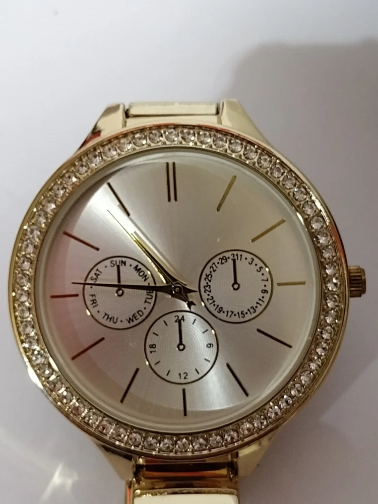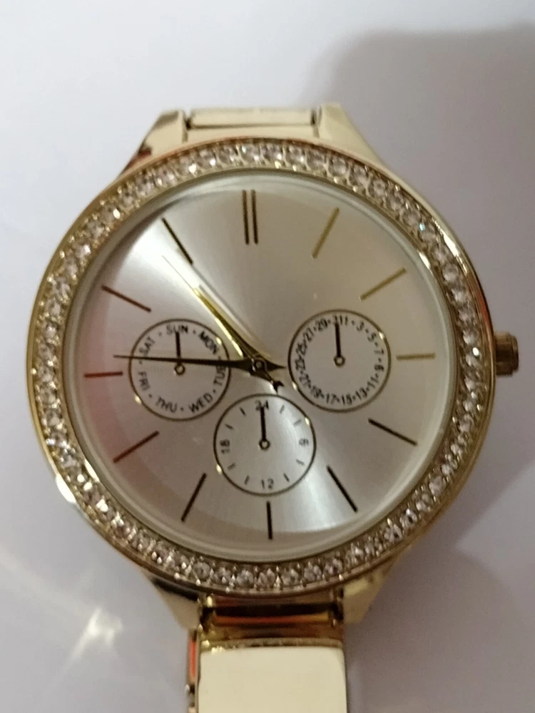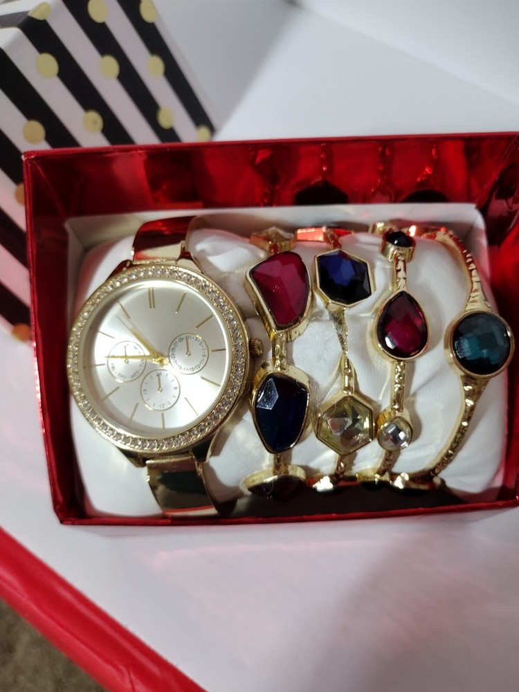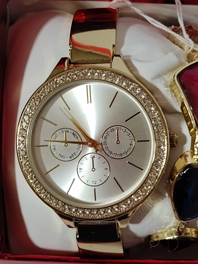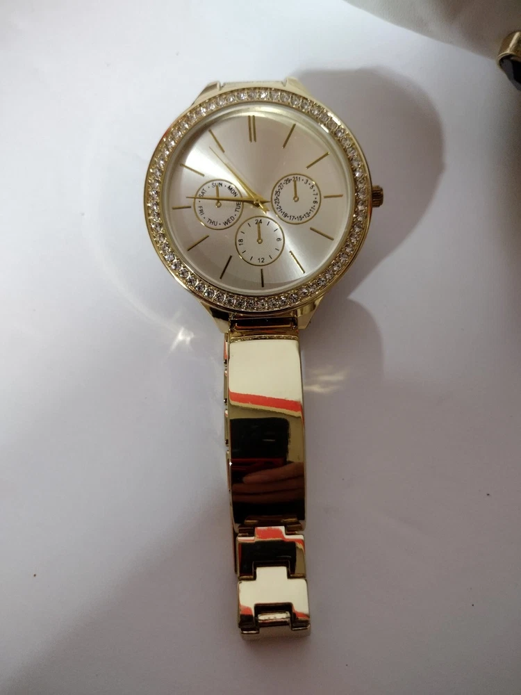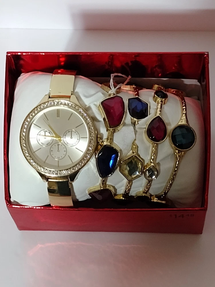 This stunning gold watch is absolutely gorgeous! It comes with four elegant bracelets, making it a perfect accessory for any outfit. The Japanese movement ensures reliable timekeeping, and the sleek design gives it a luxurious feel. Brand new in the box, it’s a fantastic gift for young ladies or anyone who loves chic jewelry. The packaging is elegant, and the watch itself looks even more beautiful in person—definitely worth it!